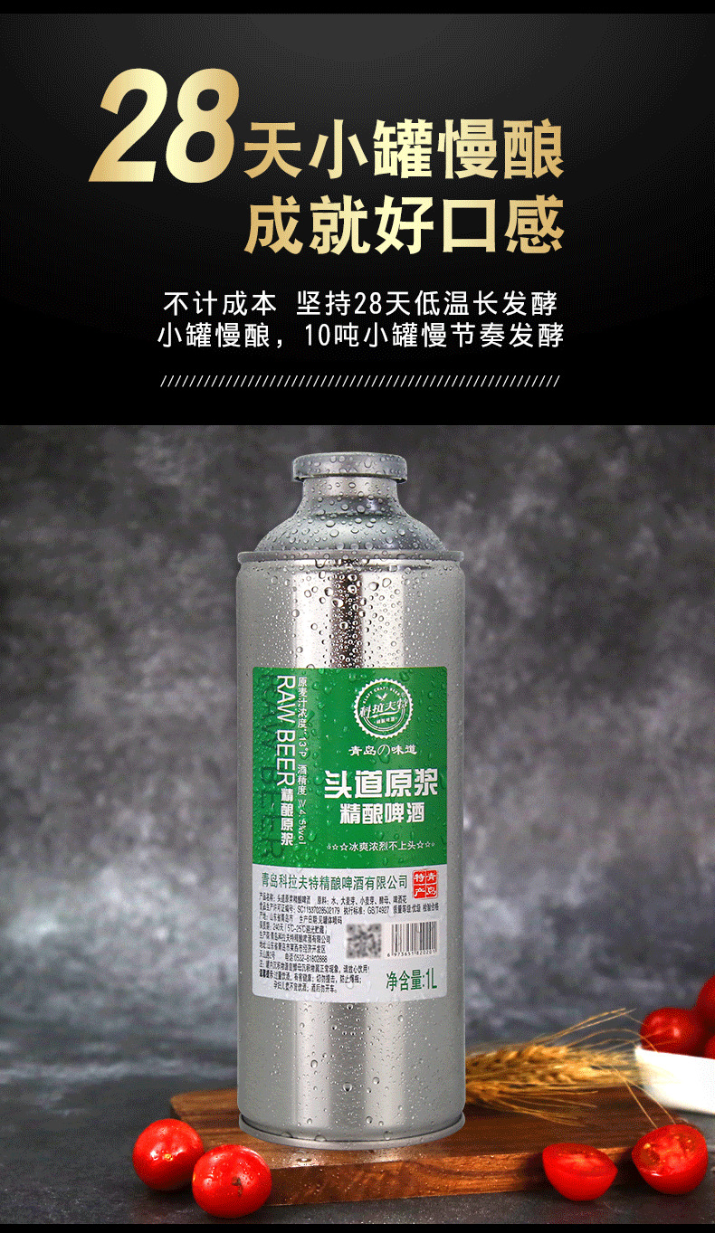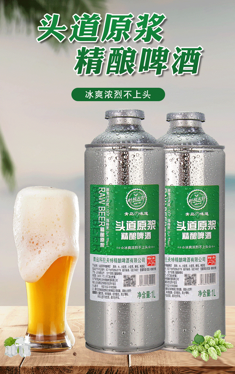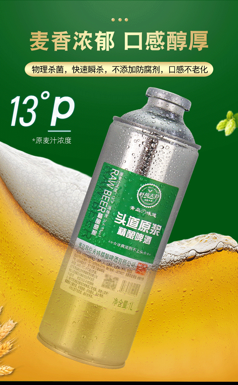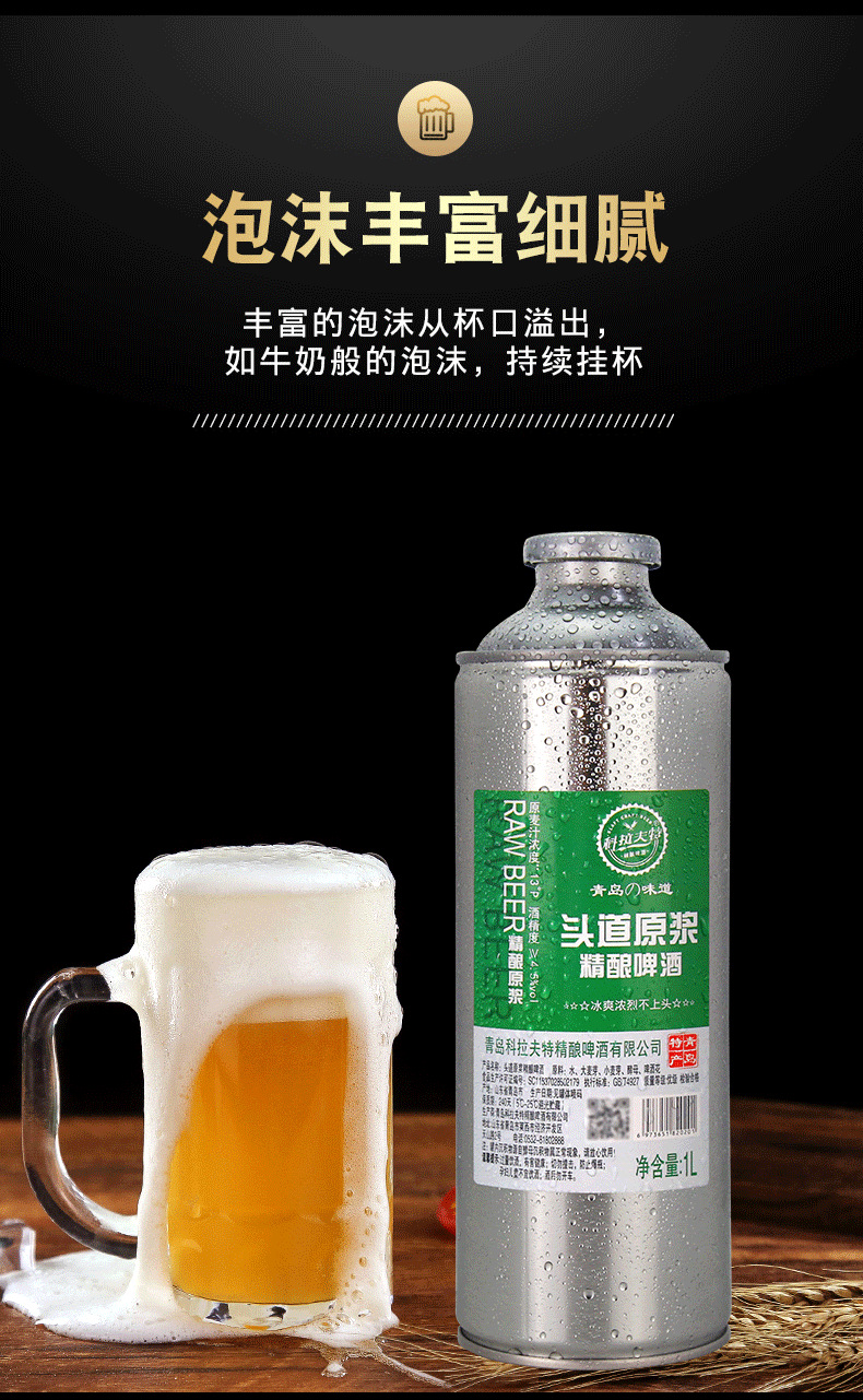 青岛原产地 头道原浆精酿啤酒 原浆啤酒全麦芽发酵 新鲜直发1L桶装