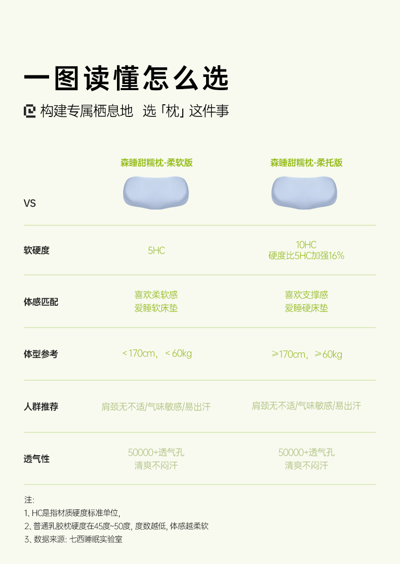 【一对】七西森睡甜糯枕 舒适硅胶枕头 不塌陷不变形