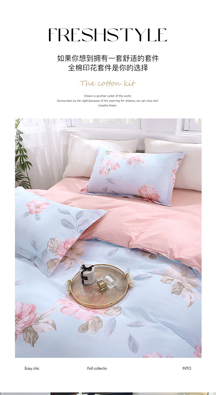 全棉印花四件套【悠梦嘉居YJ-15512全棉印花四件套 100%棉柔软透气,舒适耐用1.5/1.8床通用,倾心花絮 /草长莺飞/街角咖啡】 商品图3