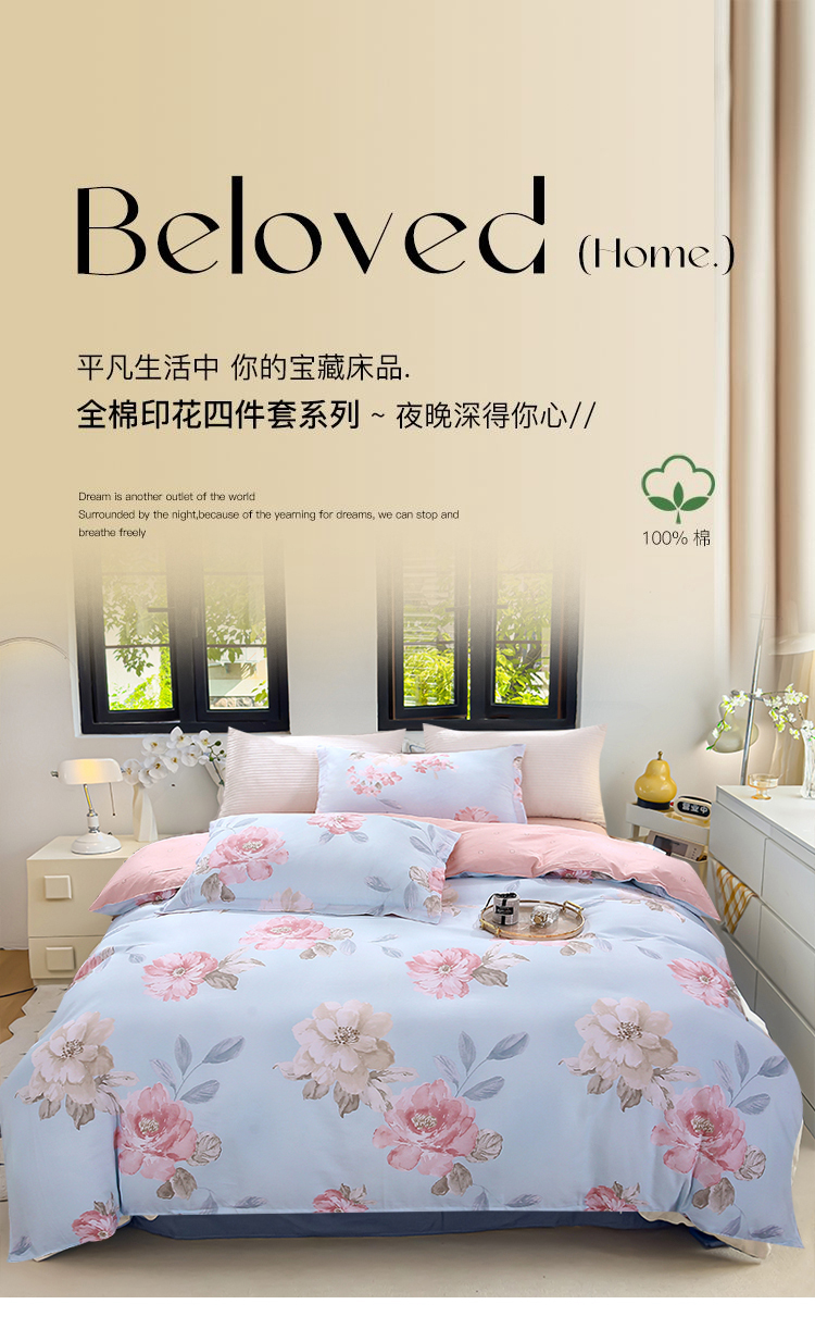 全棉印花四件套【悠梦嘉居YJ-15512全棉印花四件套 100%棉柔软透气,舒适耐用1.5/1.8床通用,倾心花絮 /草长莺飞/街角咖啡】 商品图1