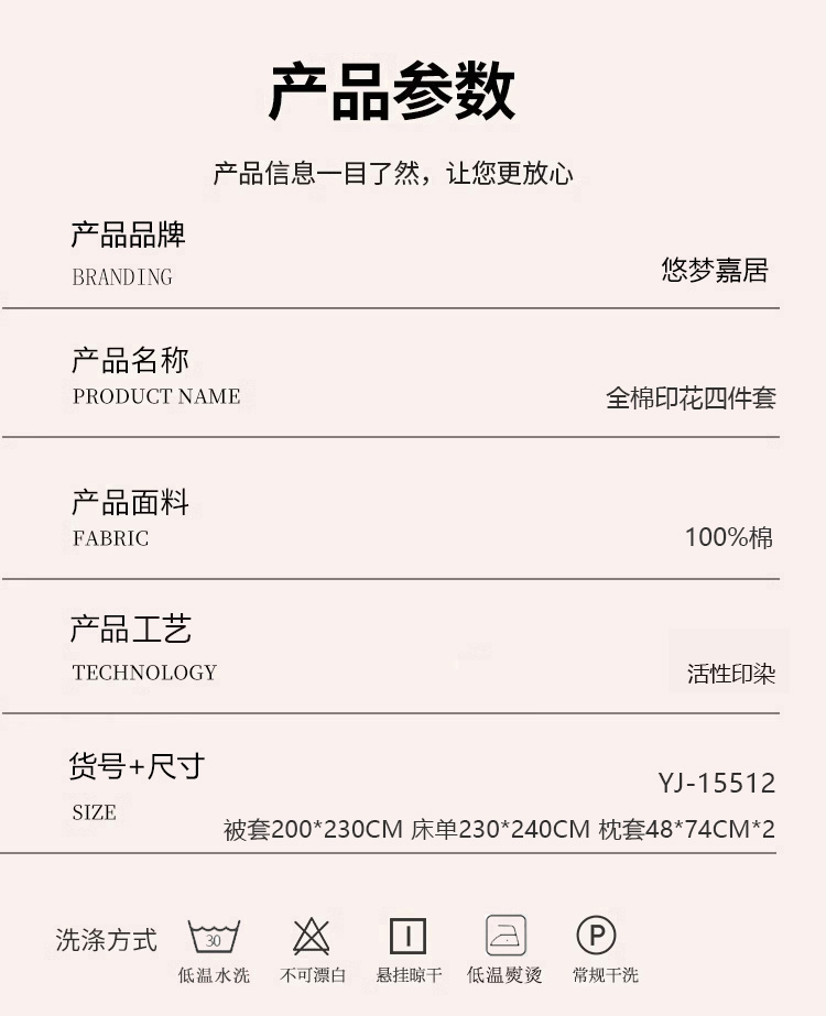 全棉印花四件套【悠梦嘉居YJ-15512全棉印花四件套 100%棉柔软透气,舒适耐用1.5/1.8床通用,倾心花絮 /草长莺飞/街角咖啡】 商品图2