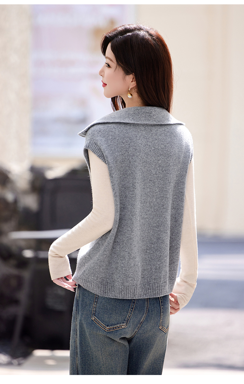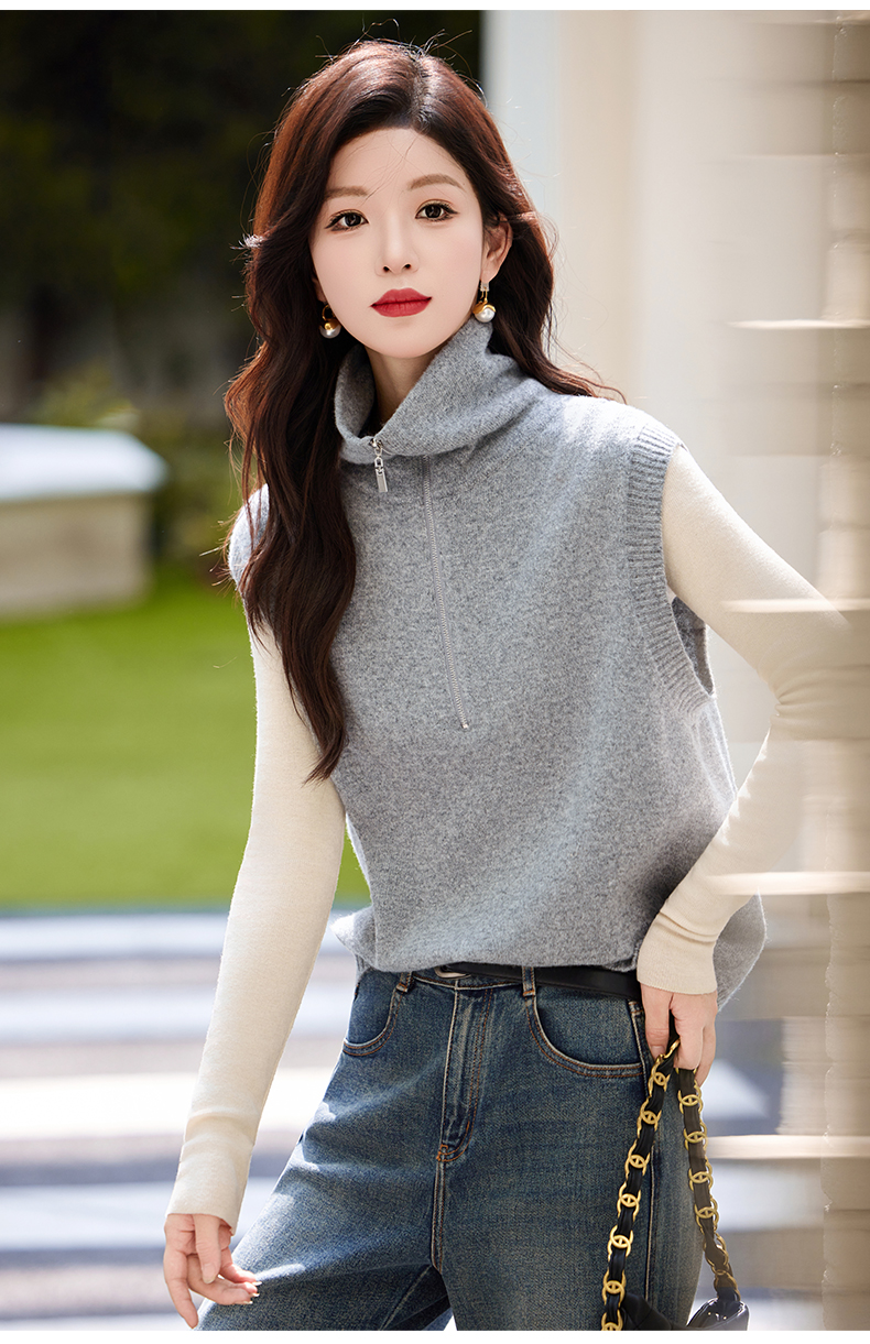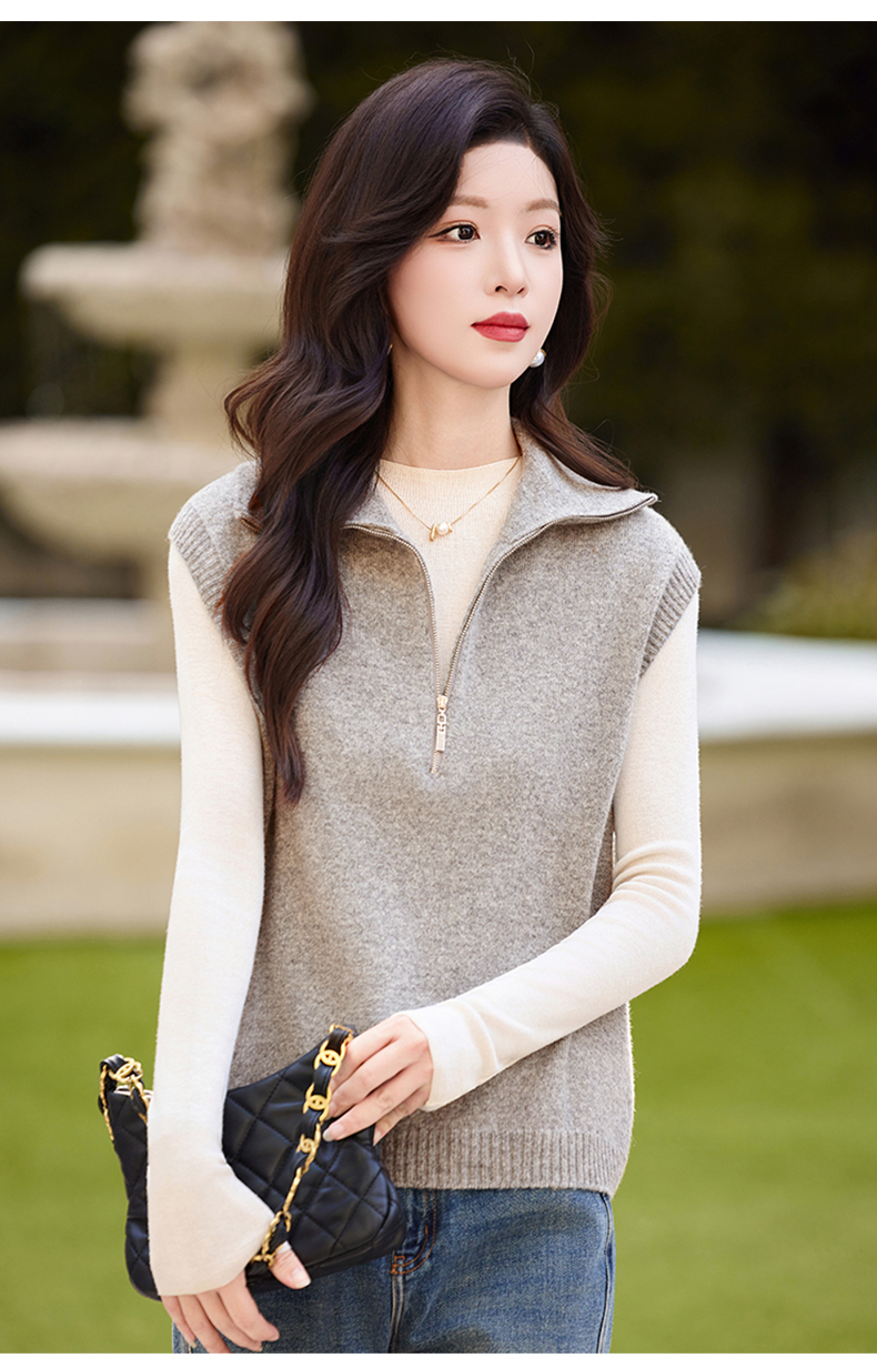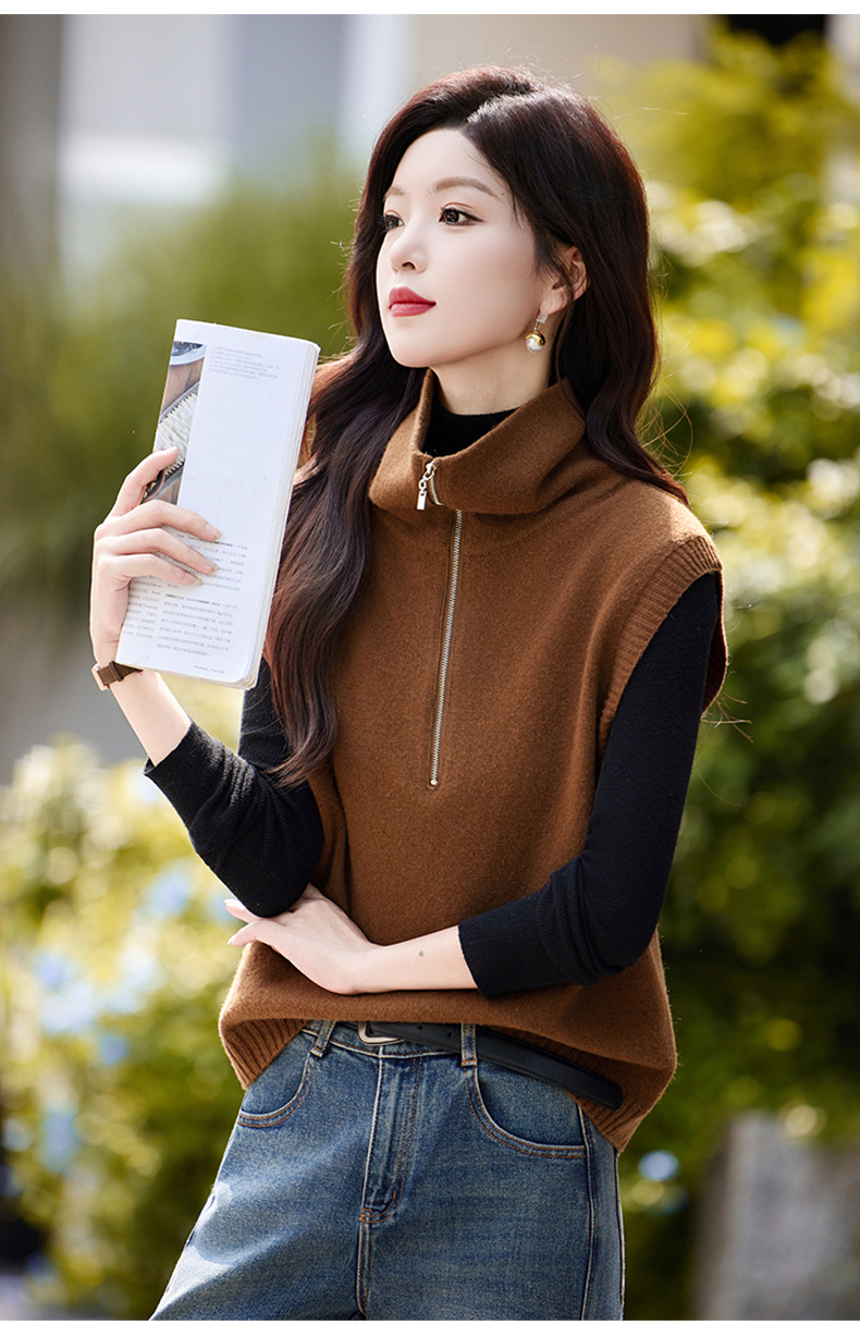 羊毛无袖针织衫马甲,时尚外搭叠穿毛衣背心上衣HR-ZLF6602