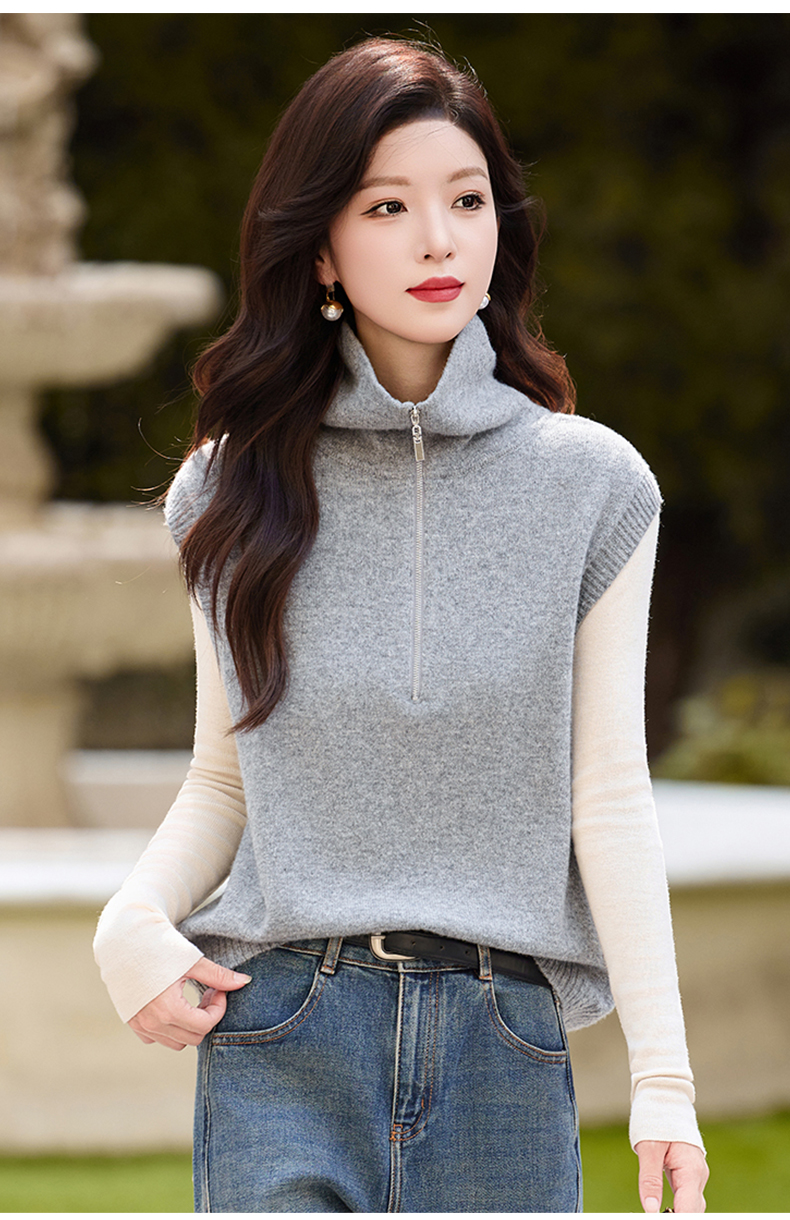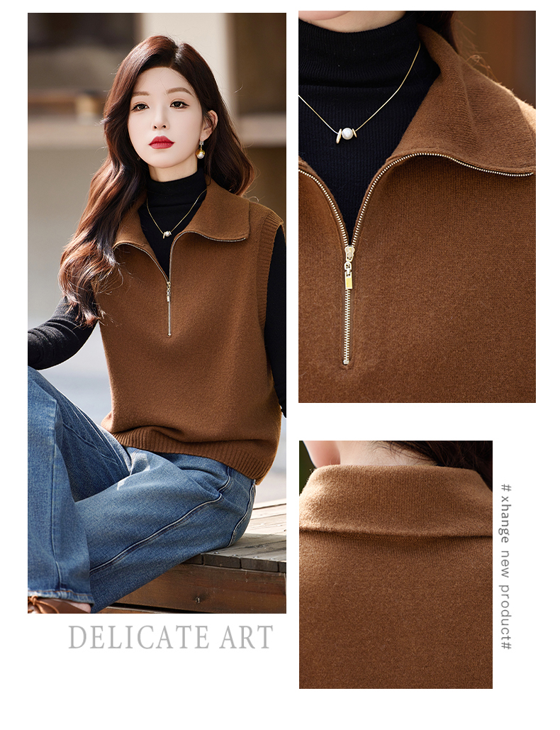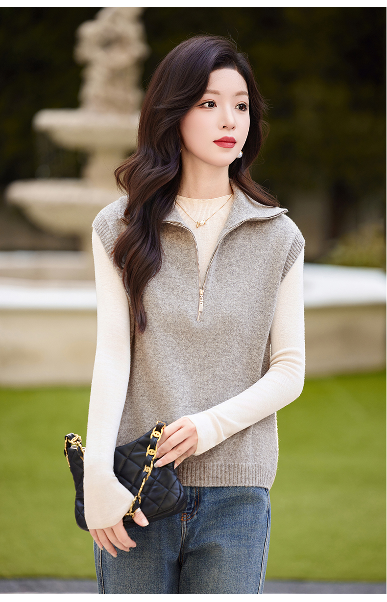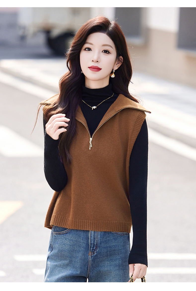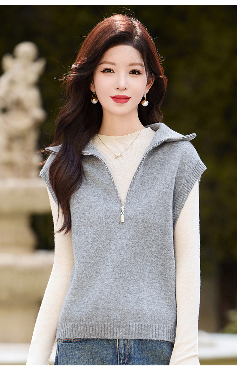 羊毛无袖针织衫马甲,时尚外搭叠穿毛衣背心上衣HR-ZLF6602