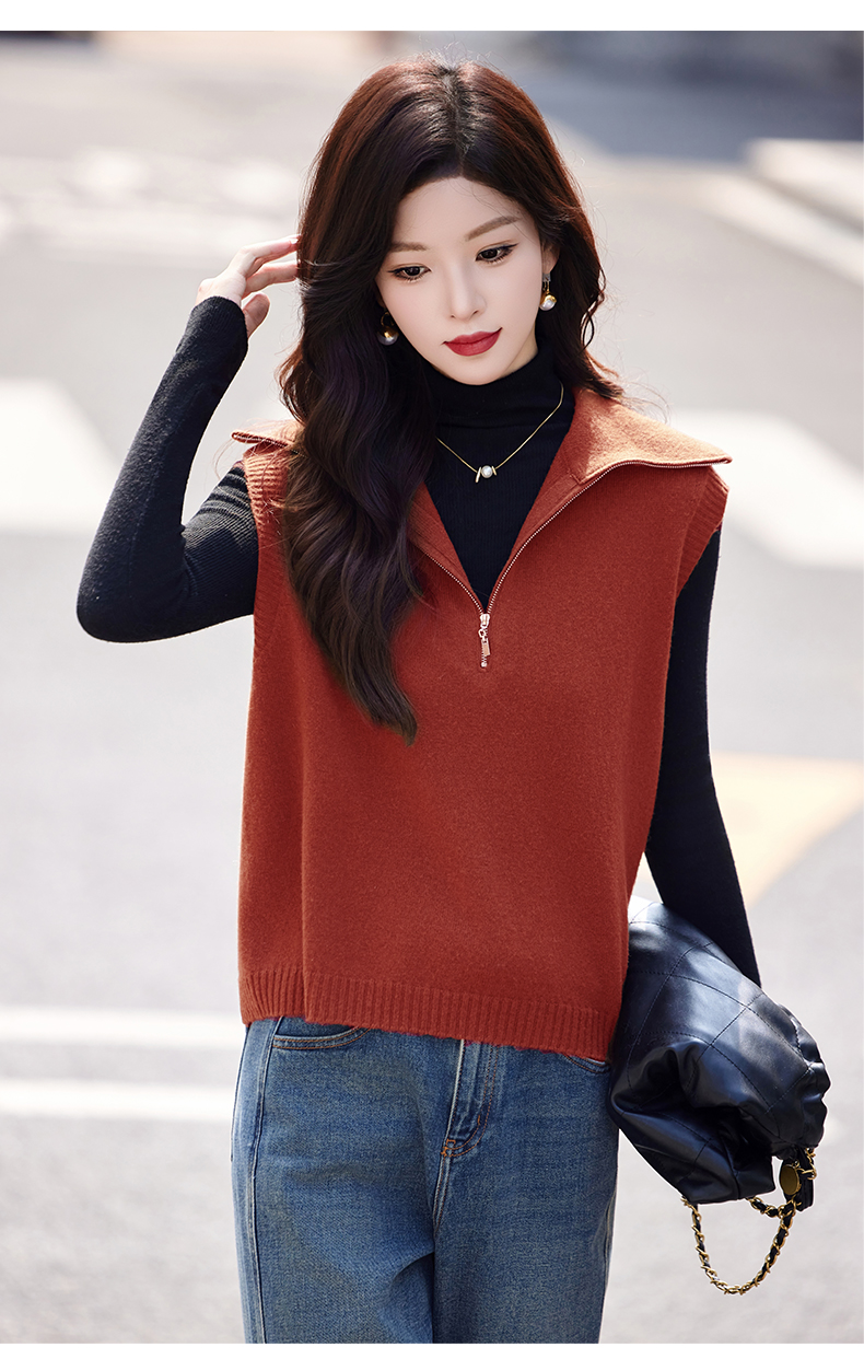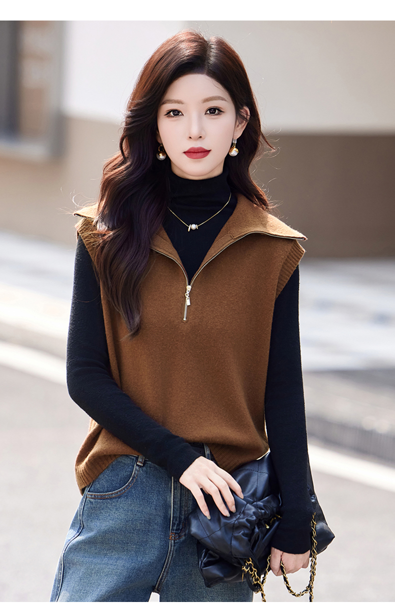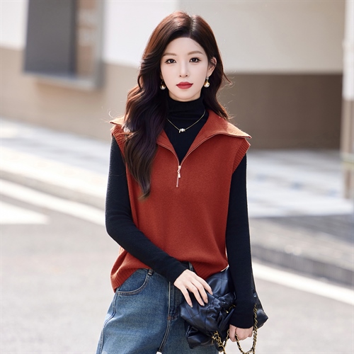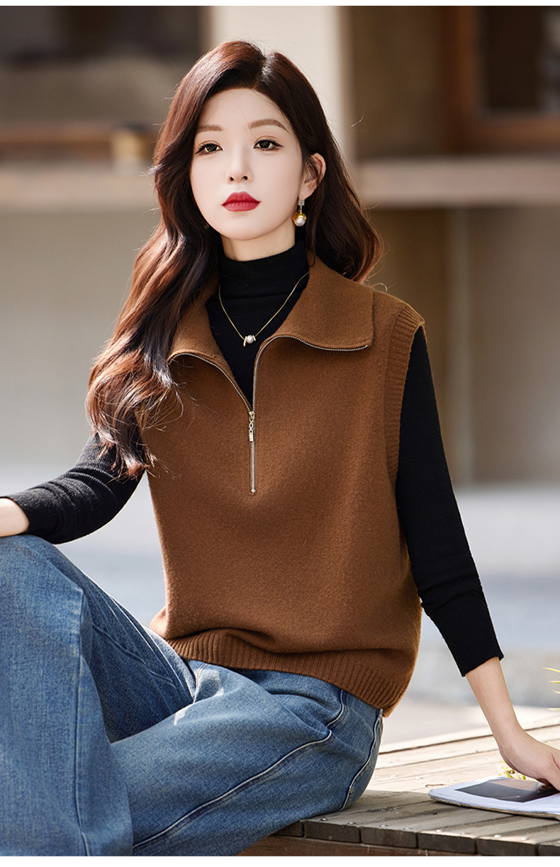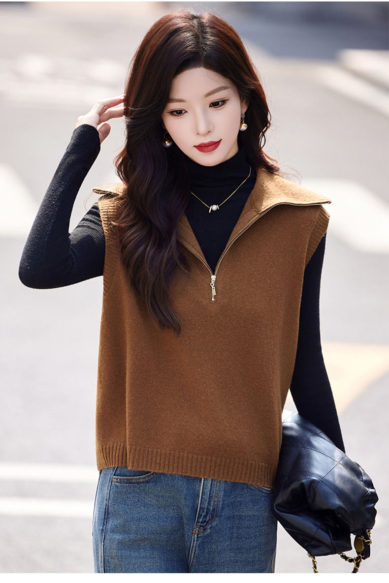 羊毛无袖针织衫马甲,时尚外搭叠穿毛衣背心上衣HR-ZLF6602