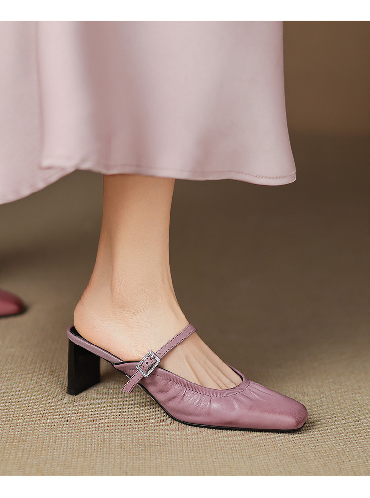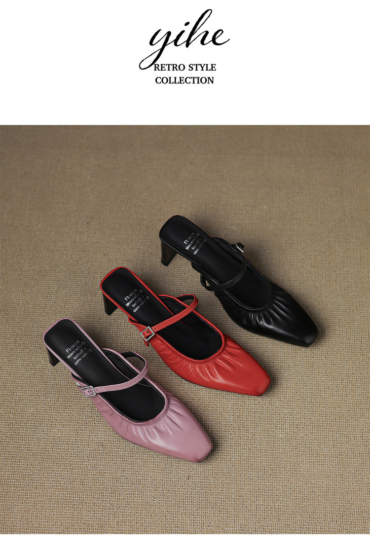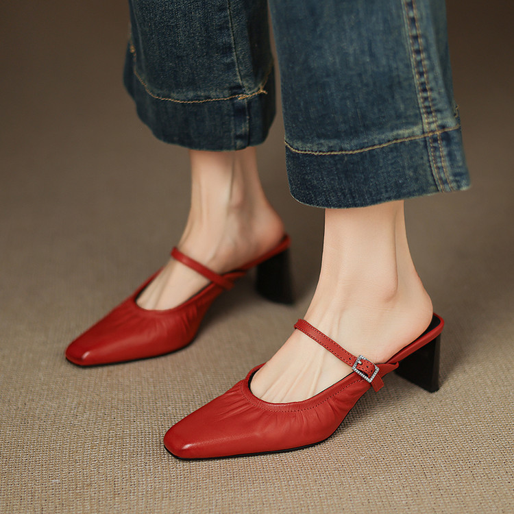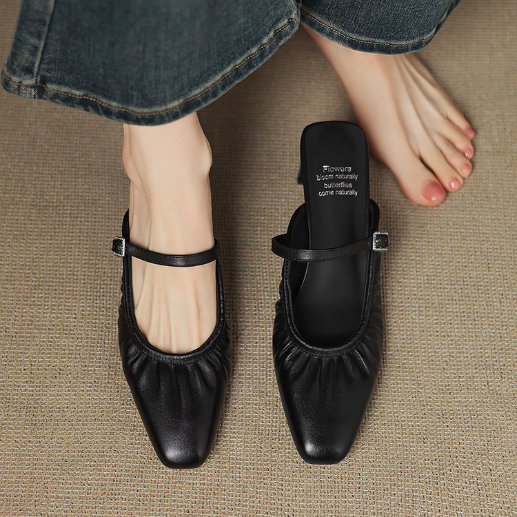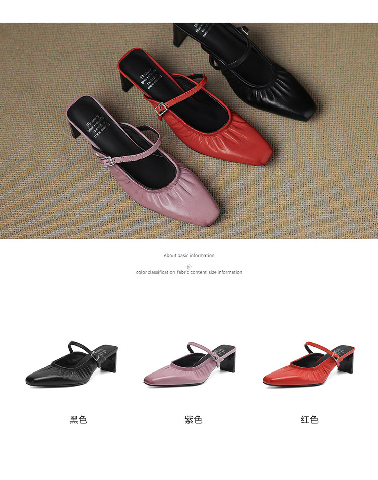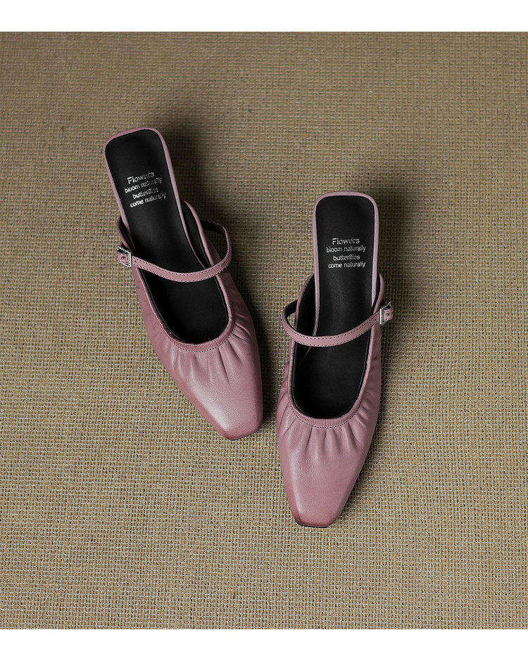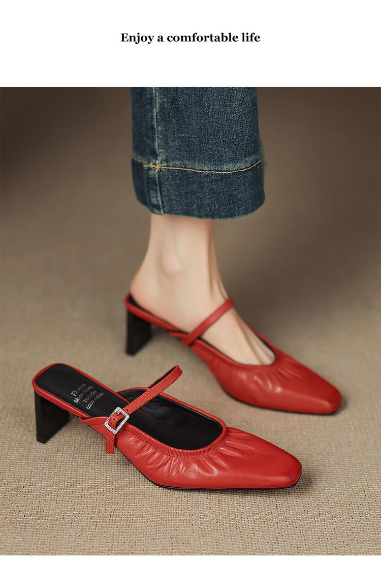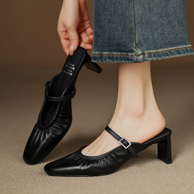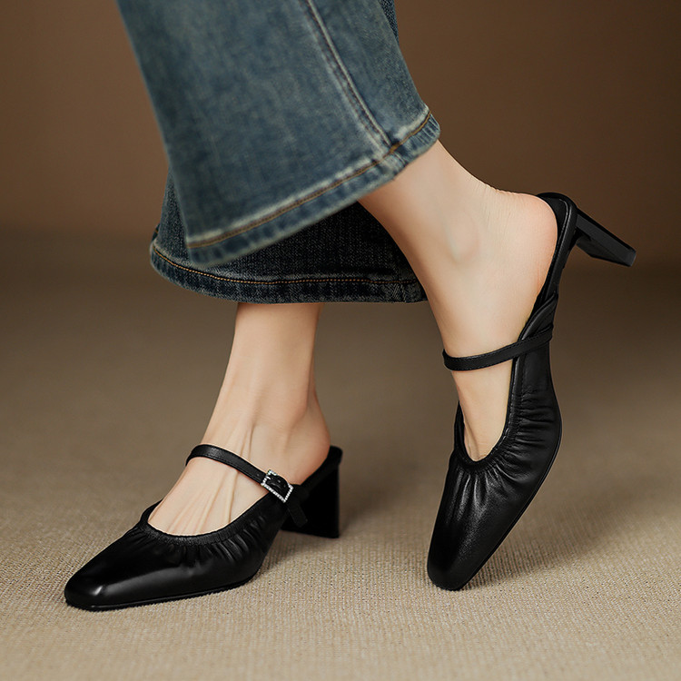 【预售5天】柔软又亲肤~头层水洗牛皮粗跟法式包头半拖鞋女春夏小香风玛丽珍单鞋MX&mx89810