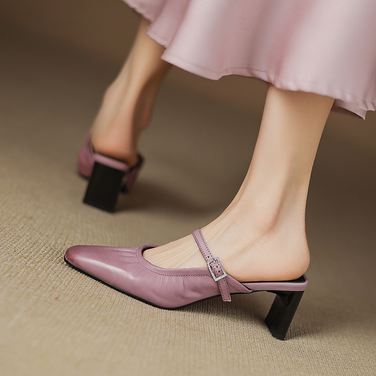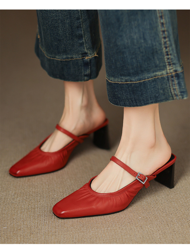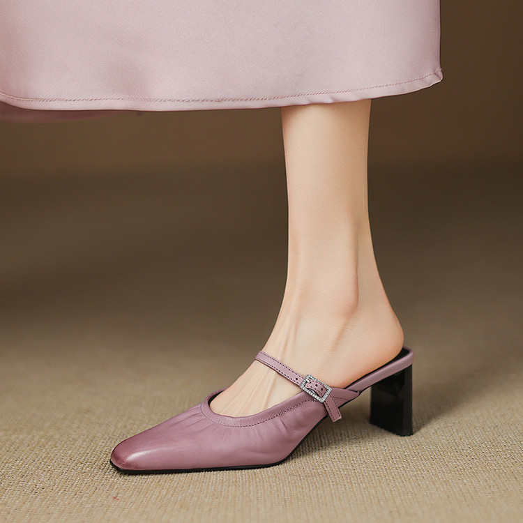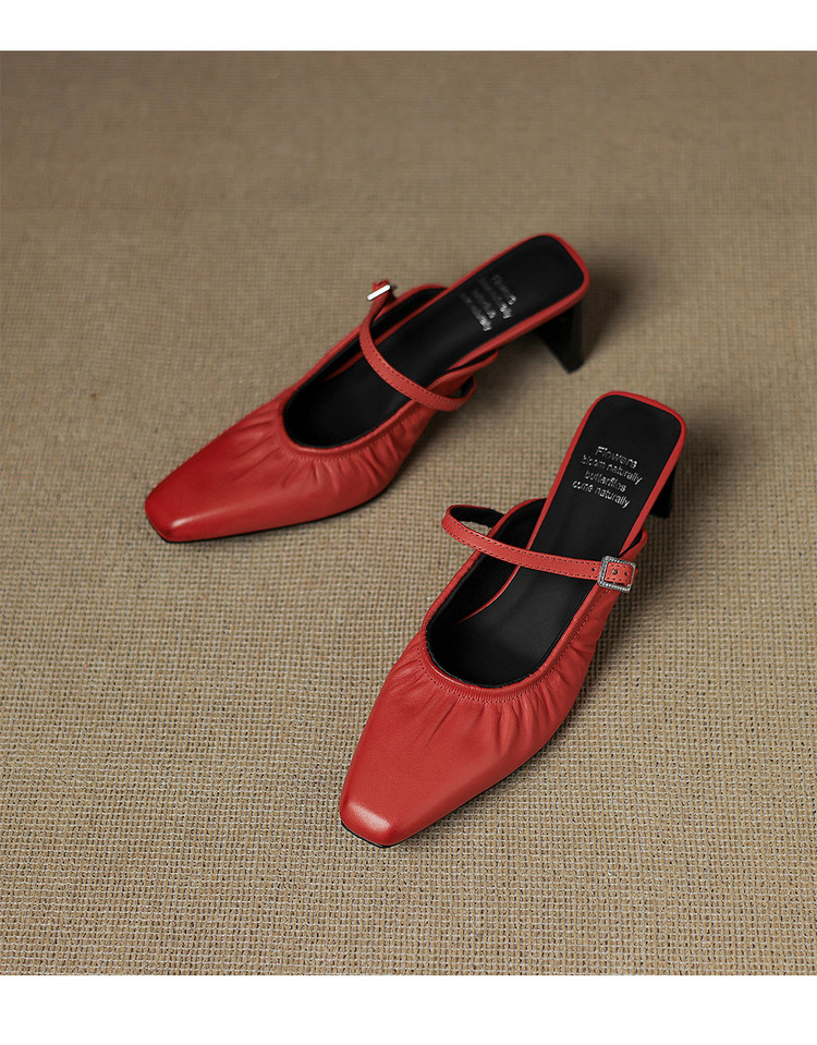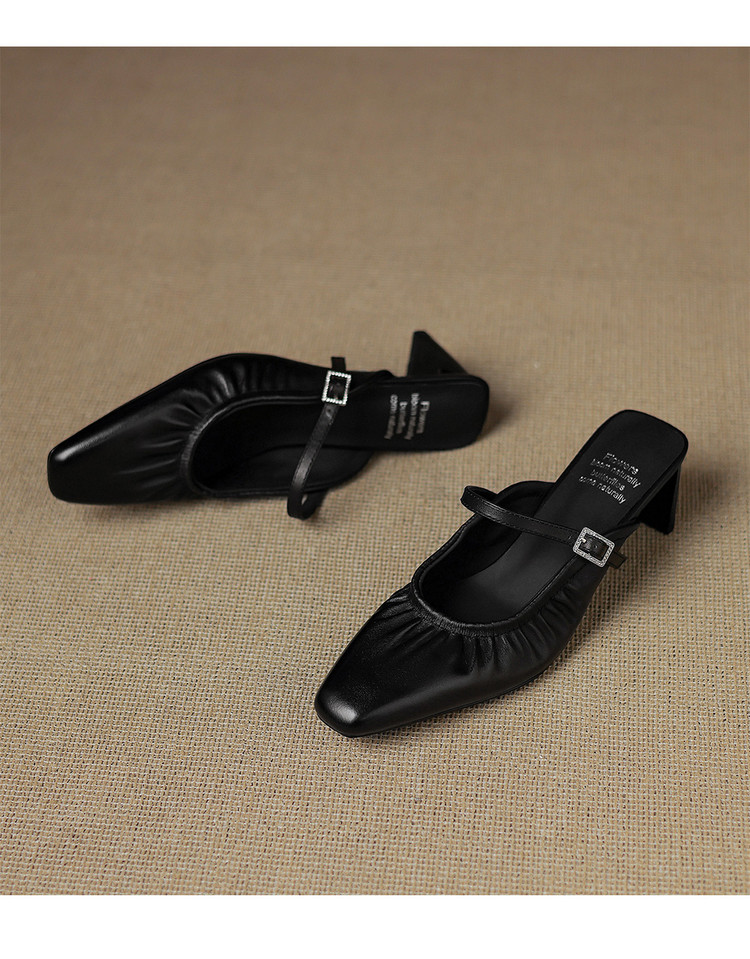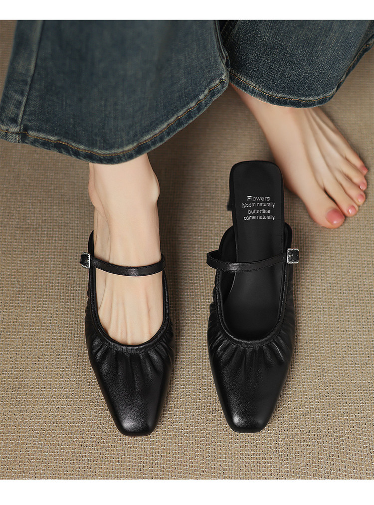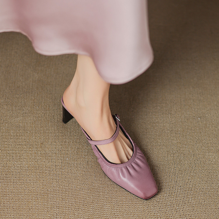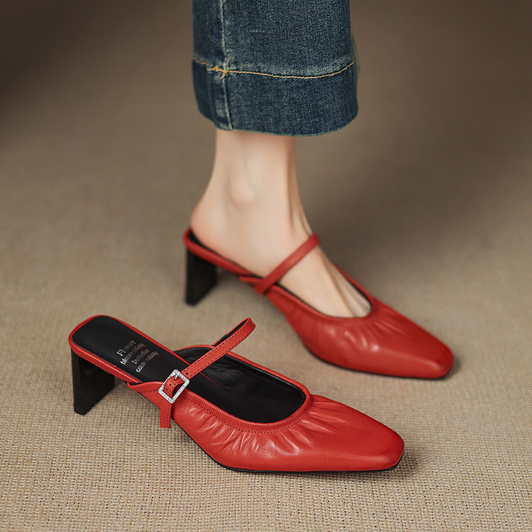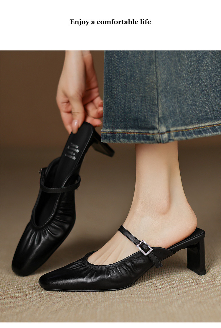 【预售5天】柔软又亲肤~头层水洗牛皮粗跟法式包头半拖鞋女春夏小香风玛丽珍单鞋MX&mx89810