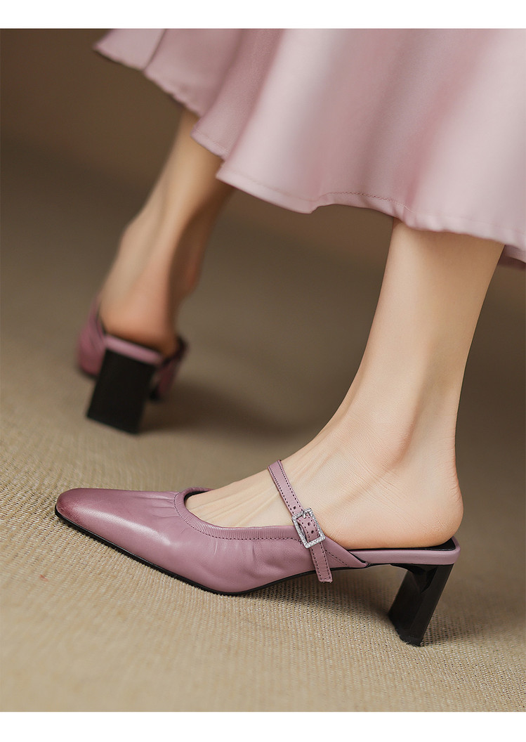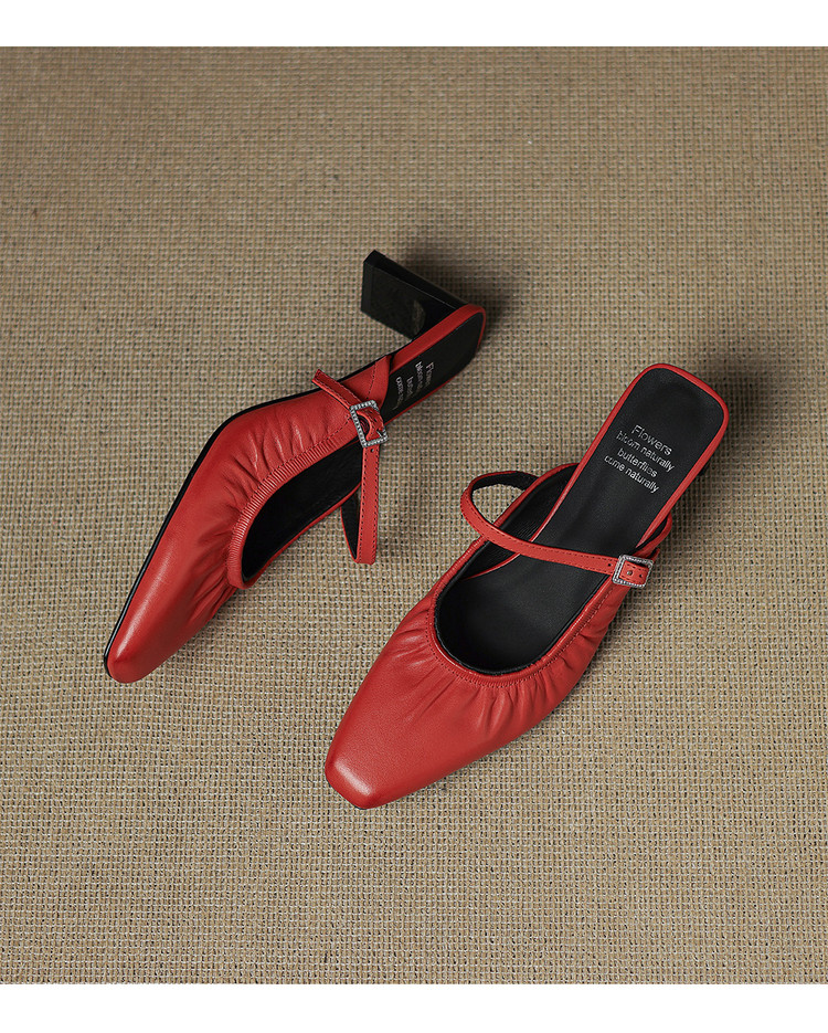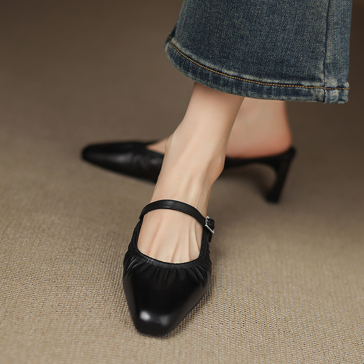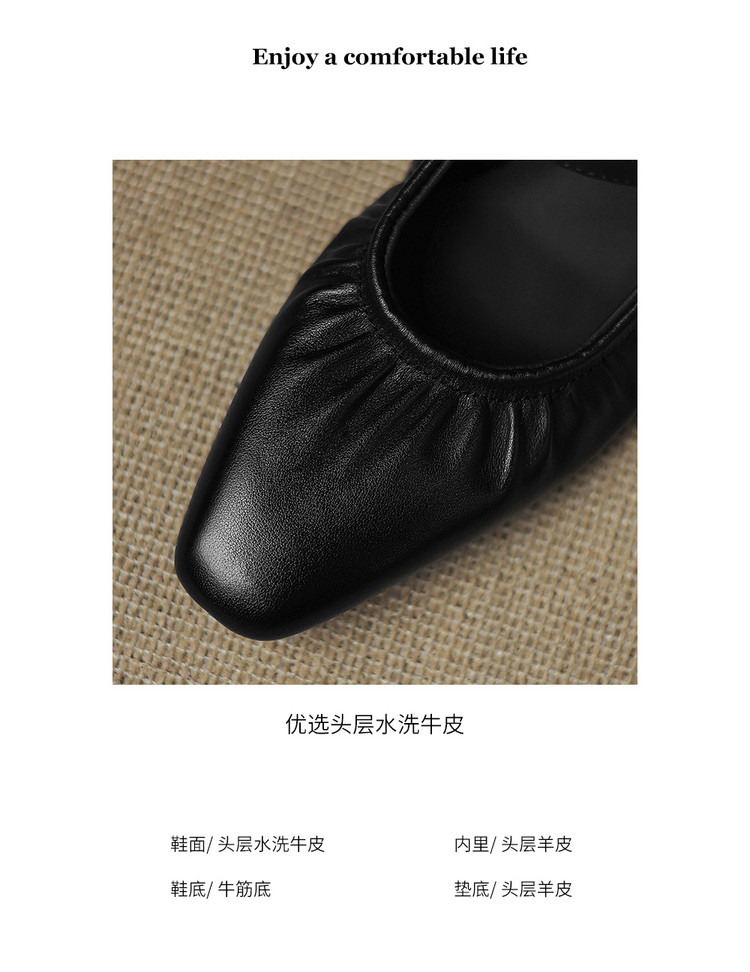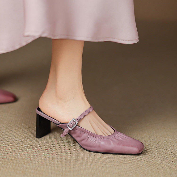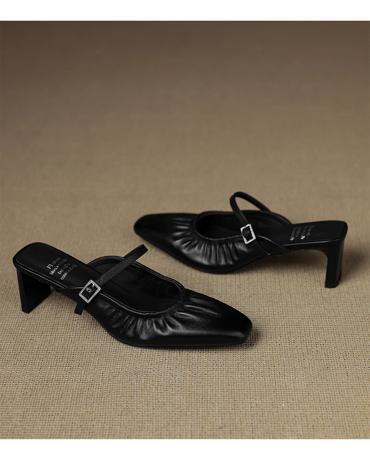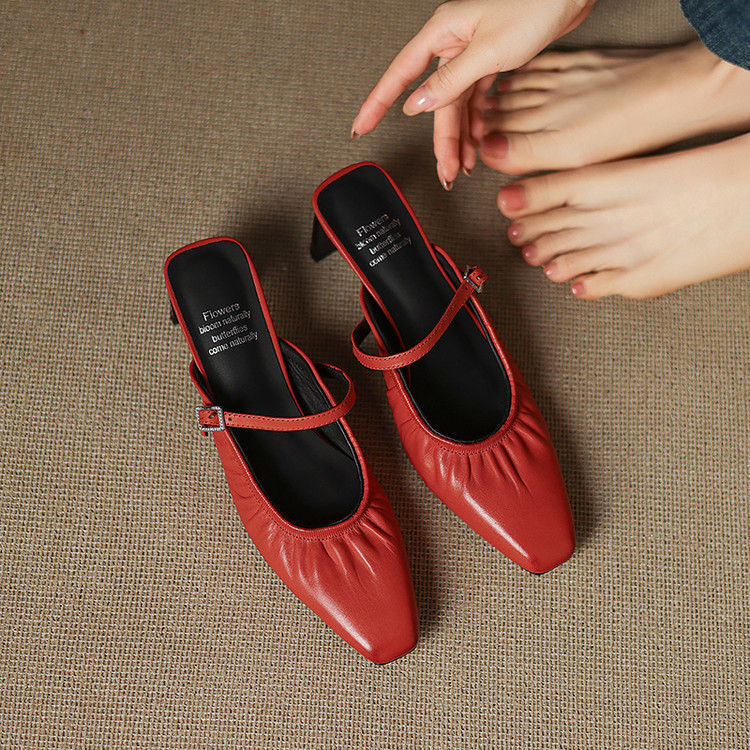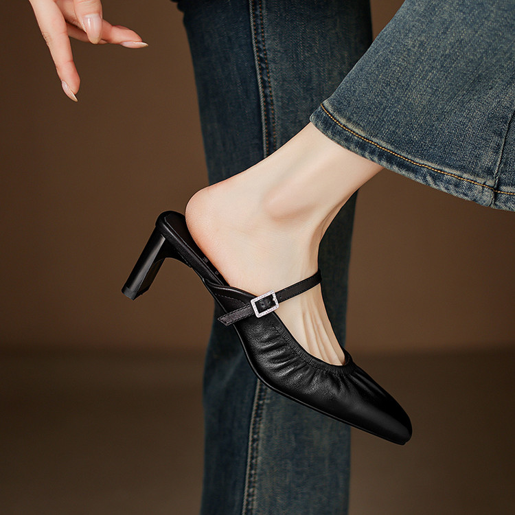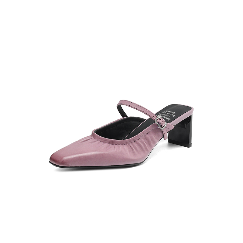 【预售5天】柔软又亲肤~头层水洗牛皮粗跟法式包头半拖鞋女春夏小香风玛丽珍单鞋MX&mx89810