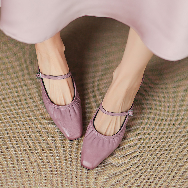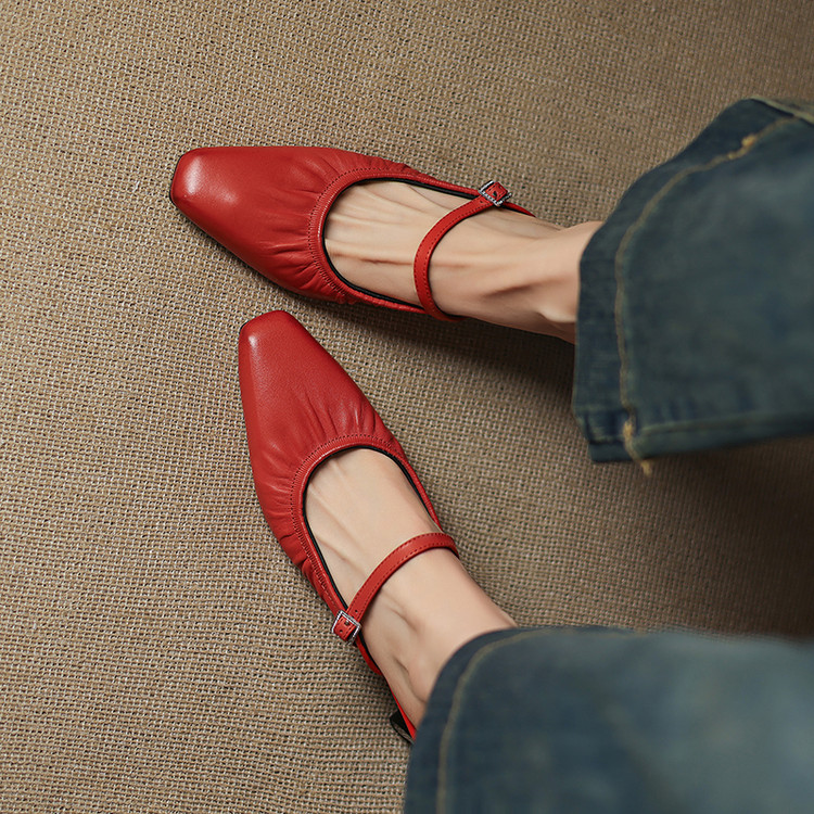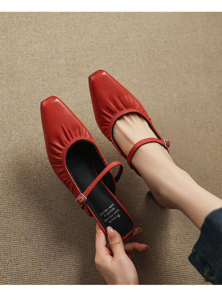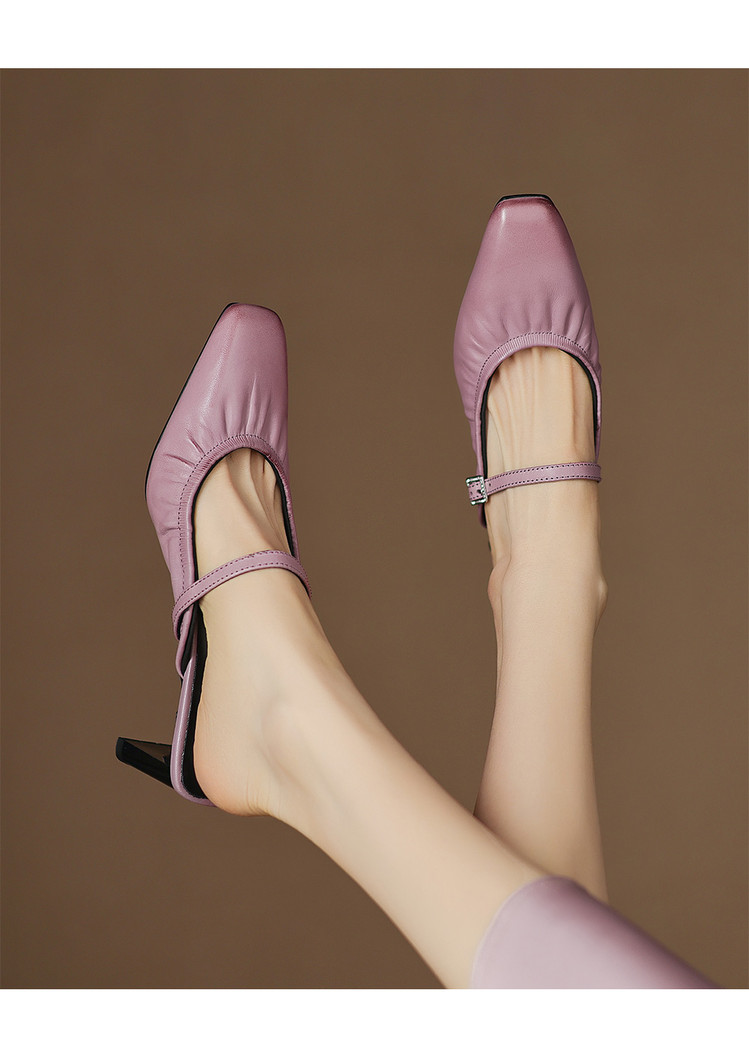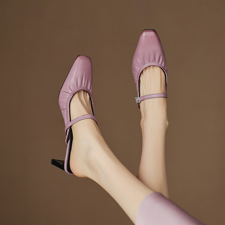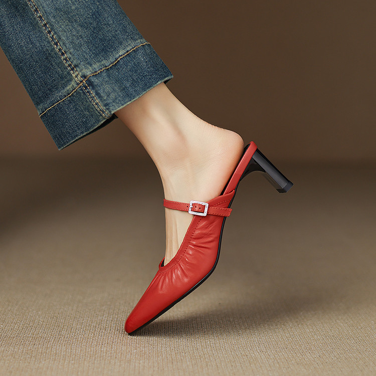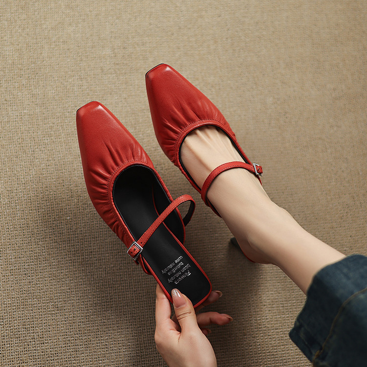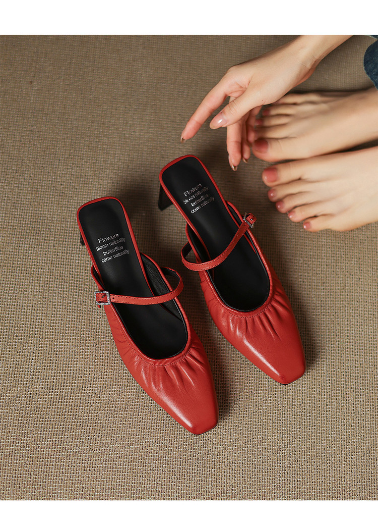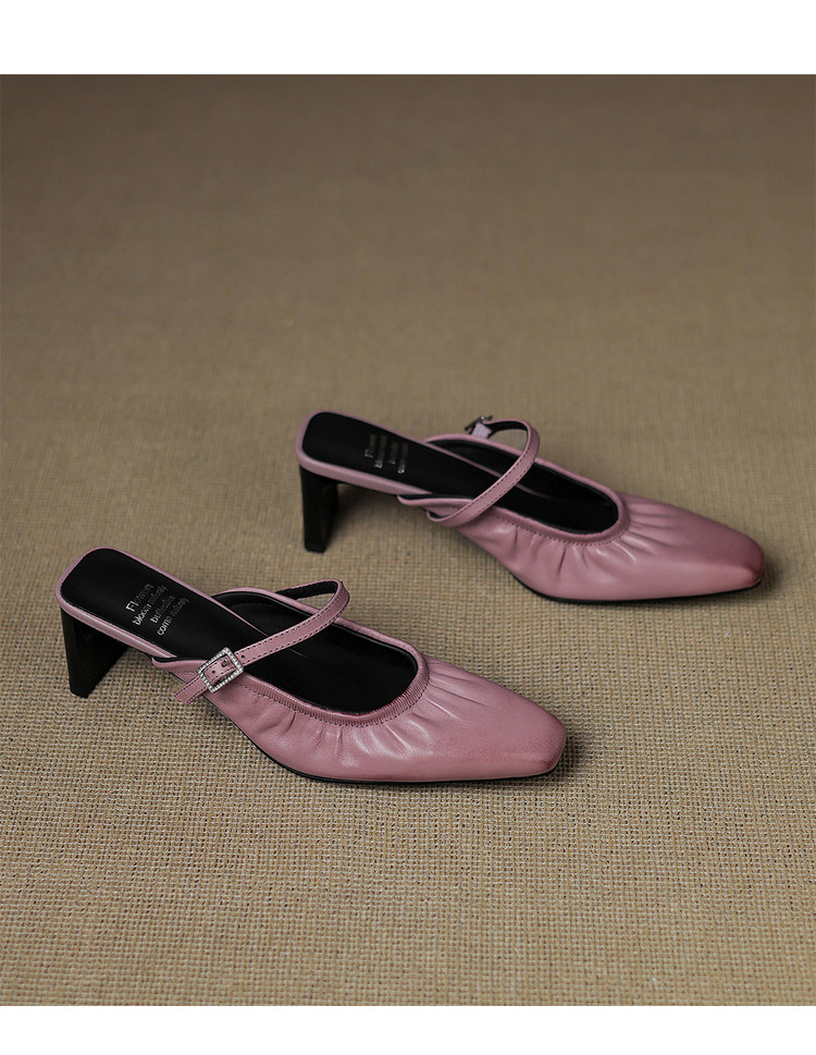 【预售5天】柔软又亲肤~头层水洗牛皮粗跟法式包头半拖鞋女春夏小香风玛丽珍单鞋MX&mx89810