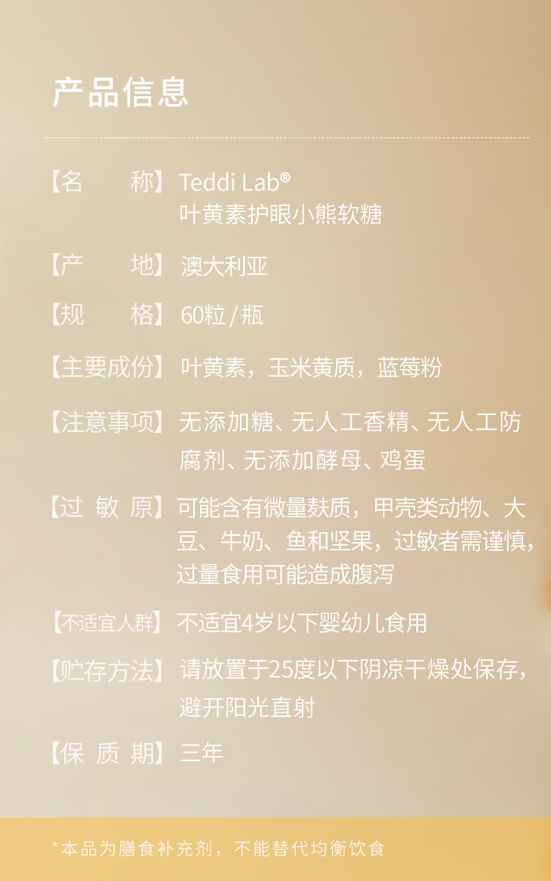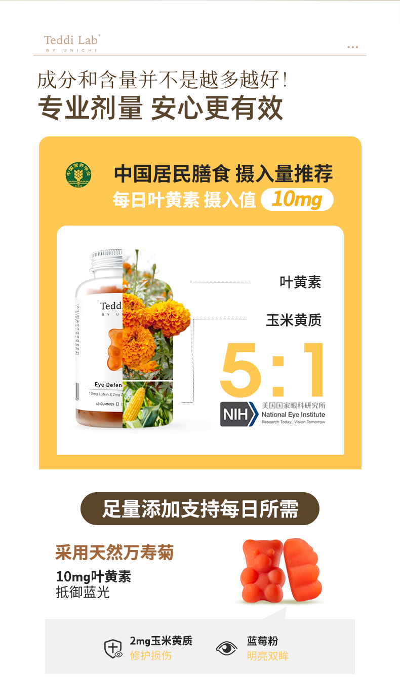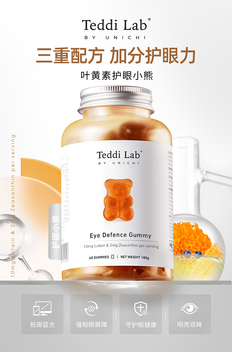 【保税直邮 宁波北仑】UNICHI叶黄素护眼小熊软糖60粒/盒