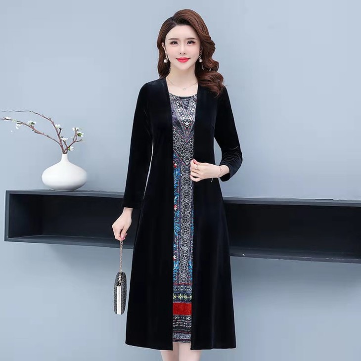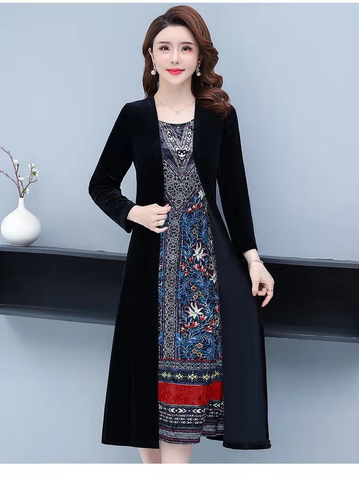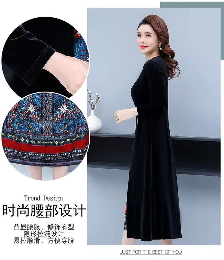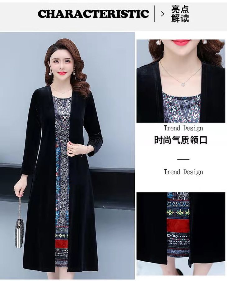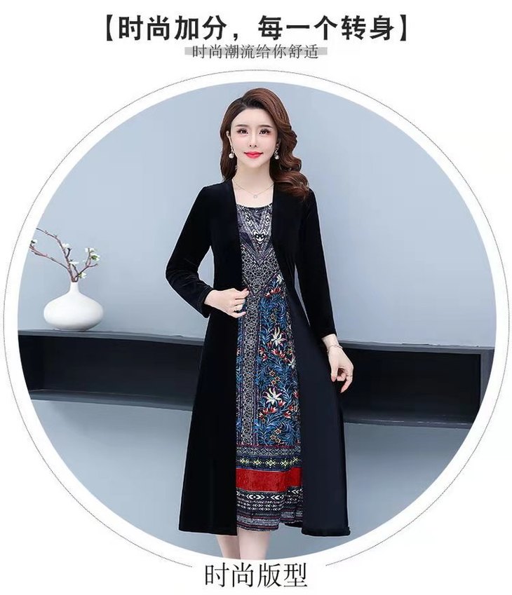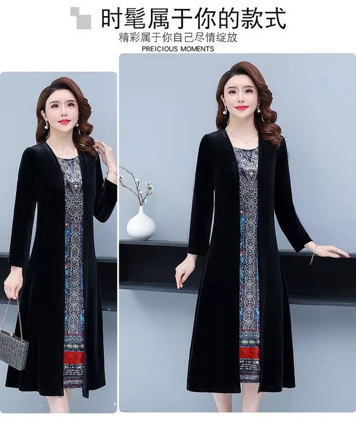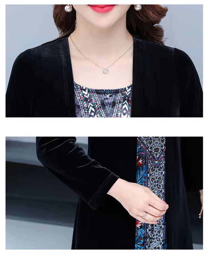 AA JY洋气显瘦显高档大码假两件套金丝绒连衣裙【优】