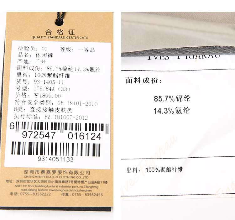 YvesFigarau伊夫·费嘉罗931405休闲裤