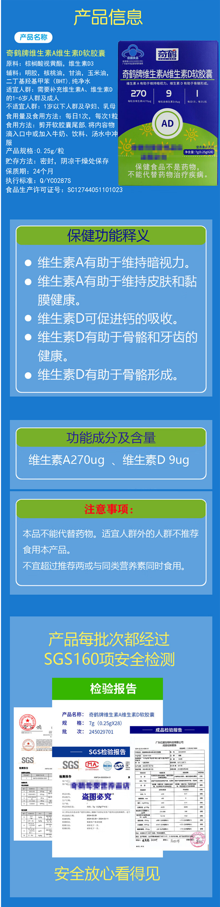 奇鹤-维生素A+D软胶囊 28粒