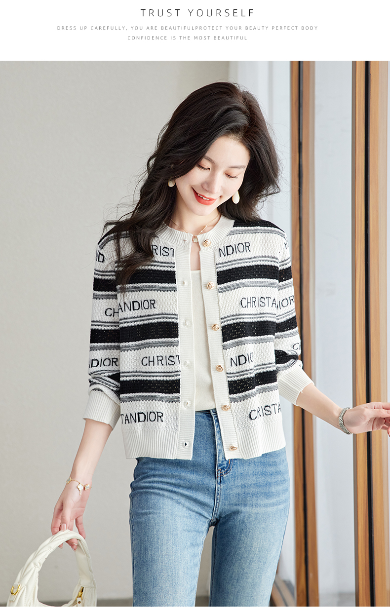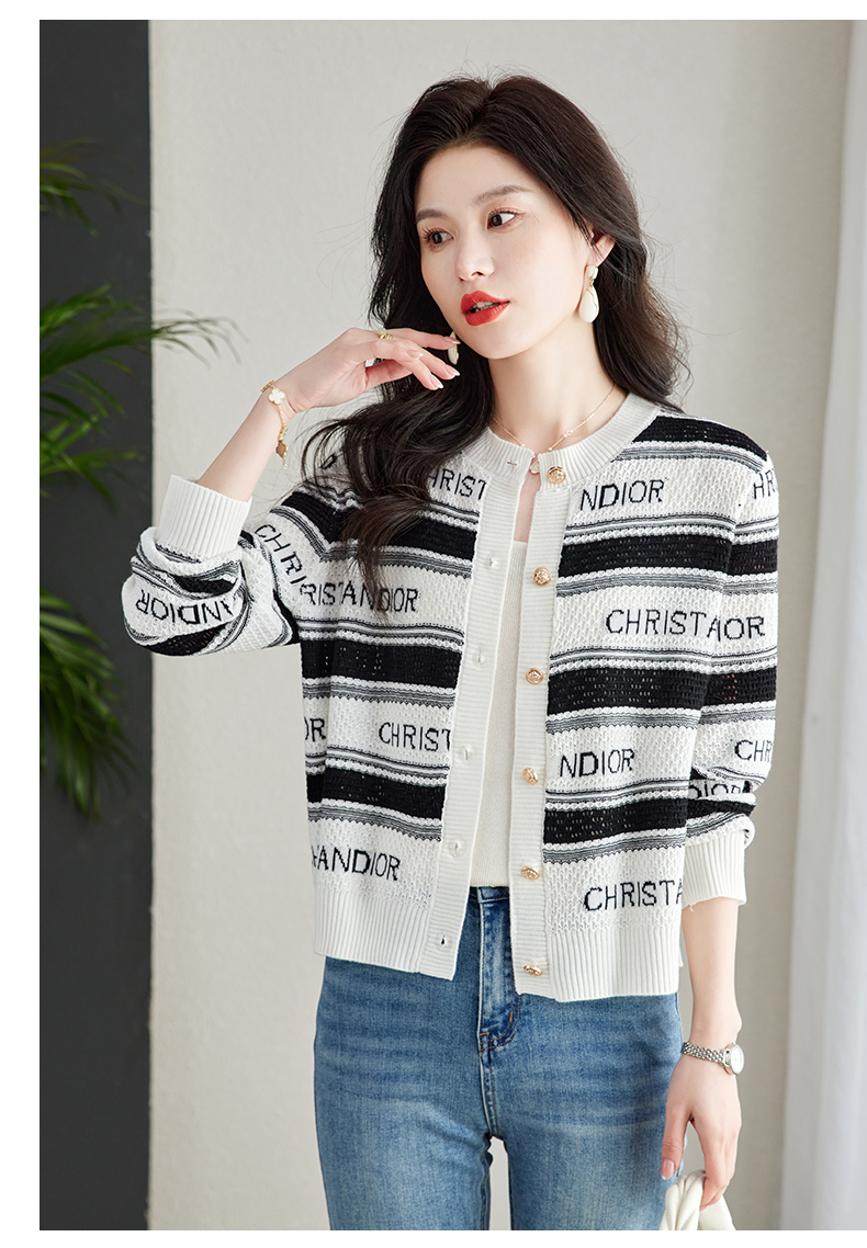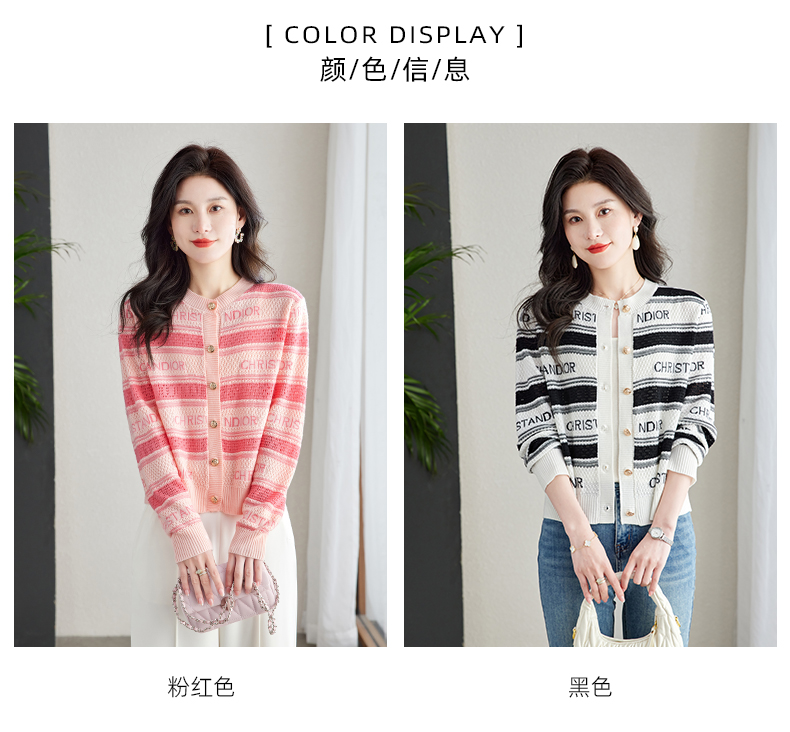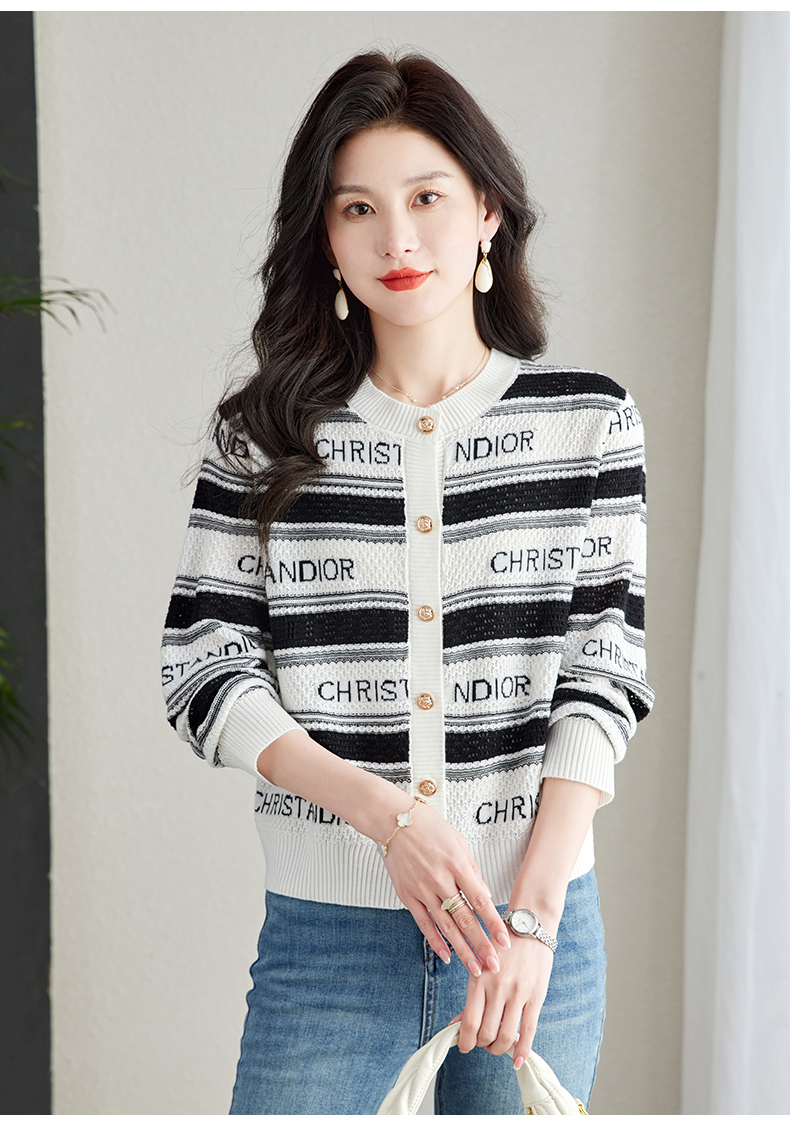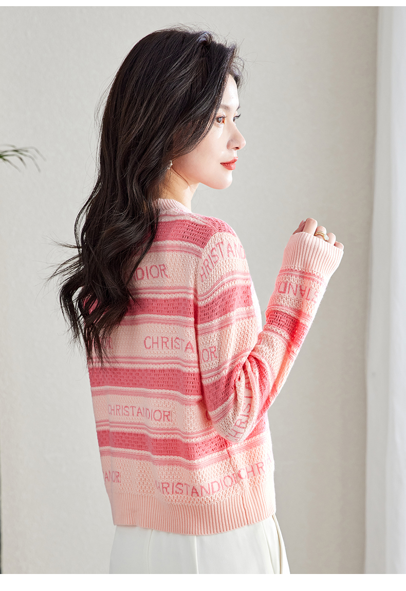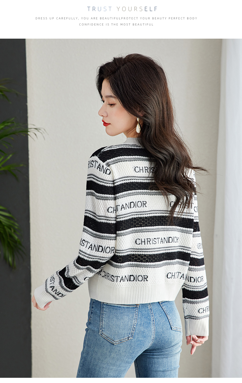 气质优雅,温柔风条纹针织衫HR-MLLJS6691
