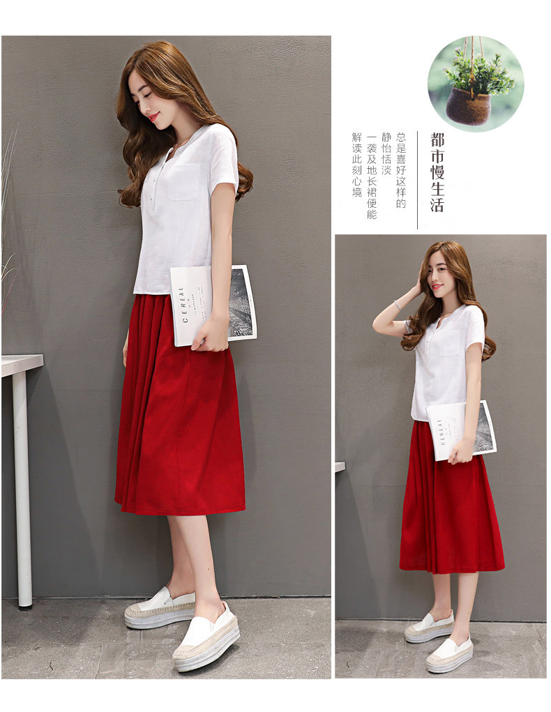 WZNH-DSKJ1880-2夏季女装新款时髦两件套裙亚麻气质中长款