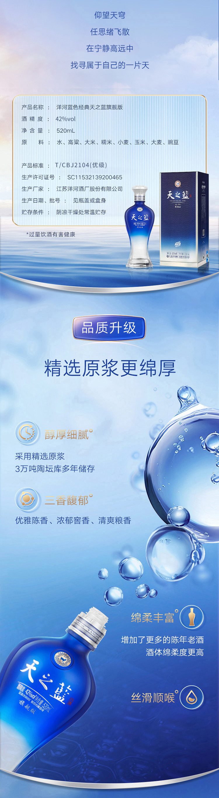 洋河 天之蓝42度 520mL 旗舰版 浓香型白酒