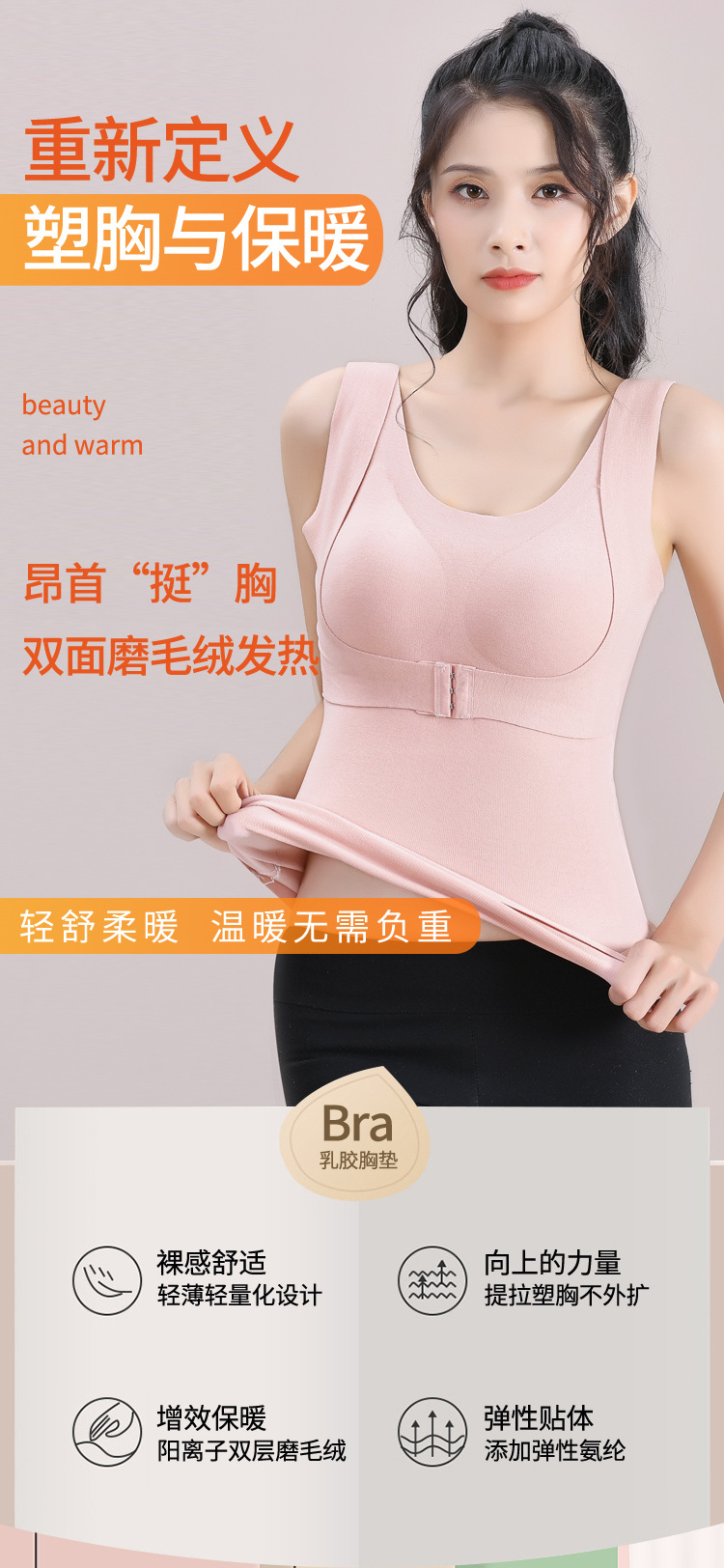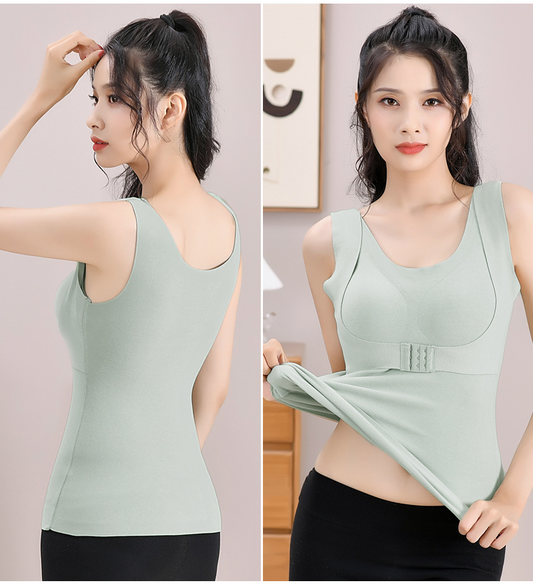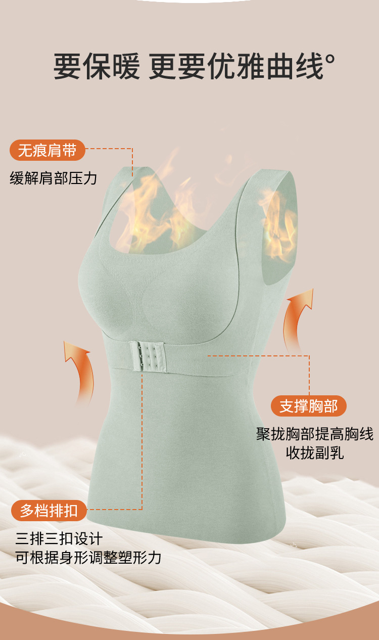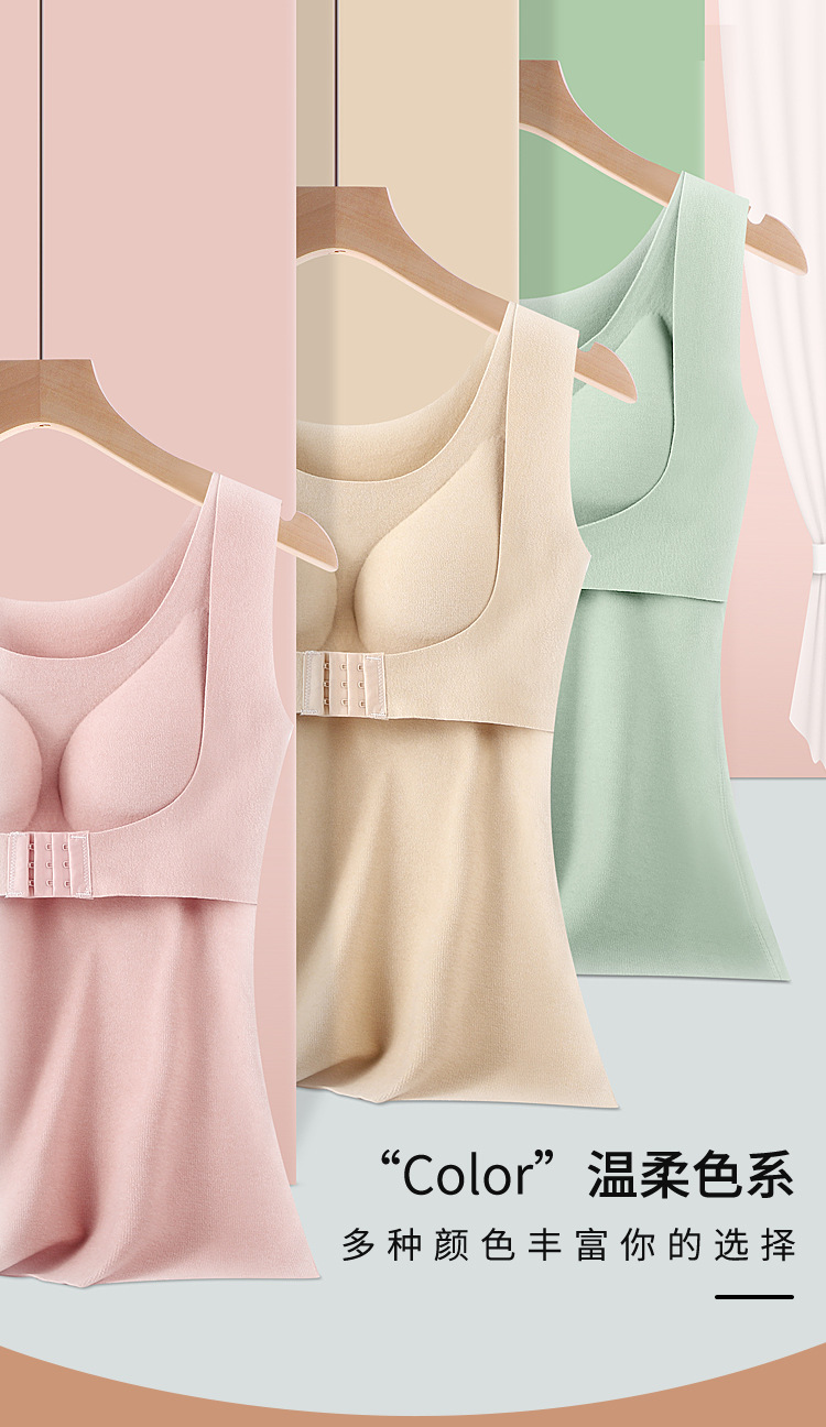 【2件更优惠】新款双面德绒乳胶文胸一体式保暖内衣大码加绒无痕发热保暖背心