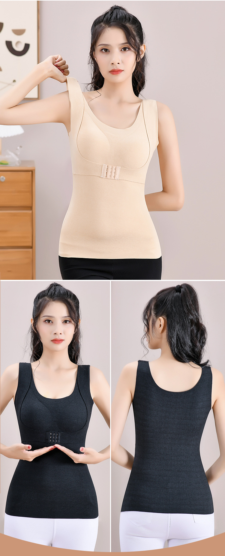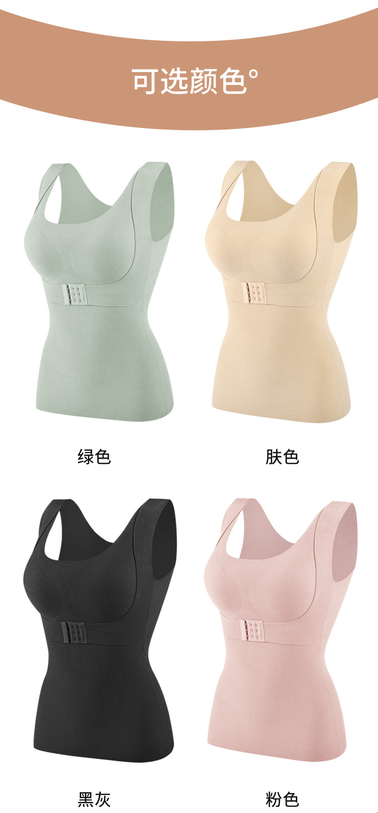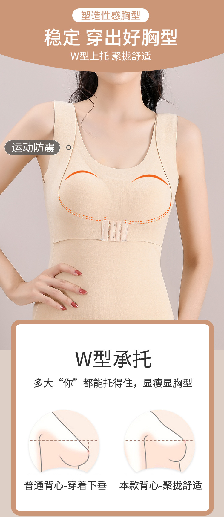 【2件更优惠】新款双面德绒乳胶文胸一体式保暖内衣大码加绒无痕发热保暖背心