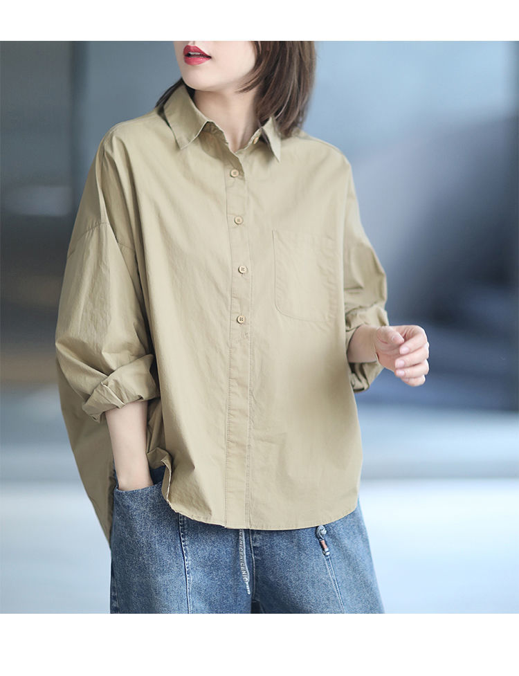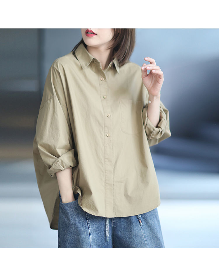 YJM-P99023韩版时尚气质气质休闲宽松翻领长袖衬衫