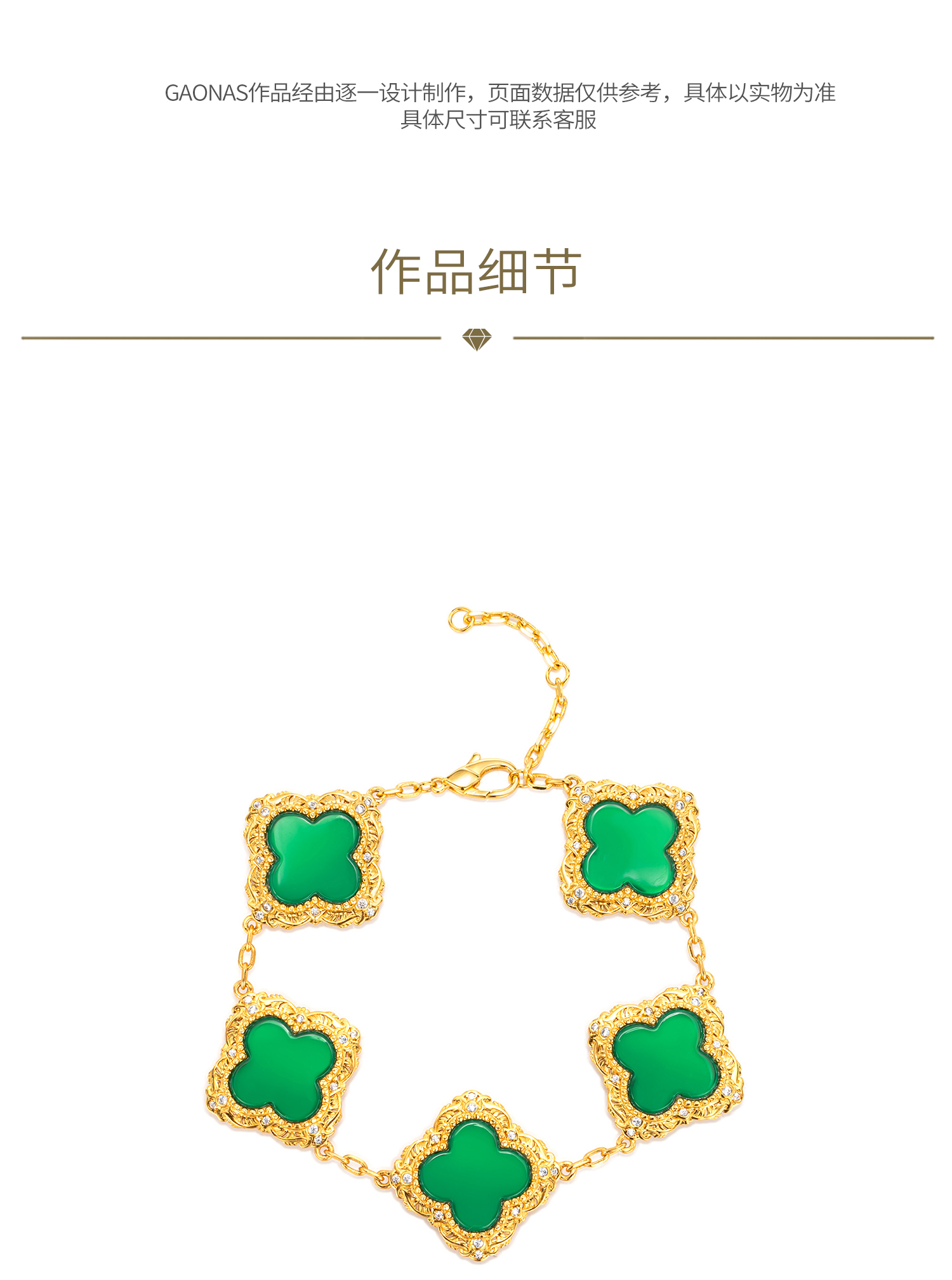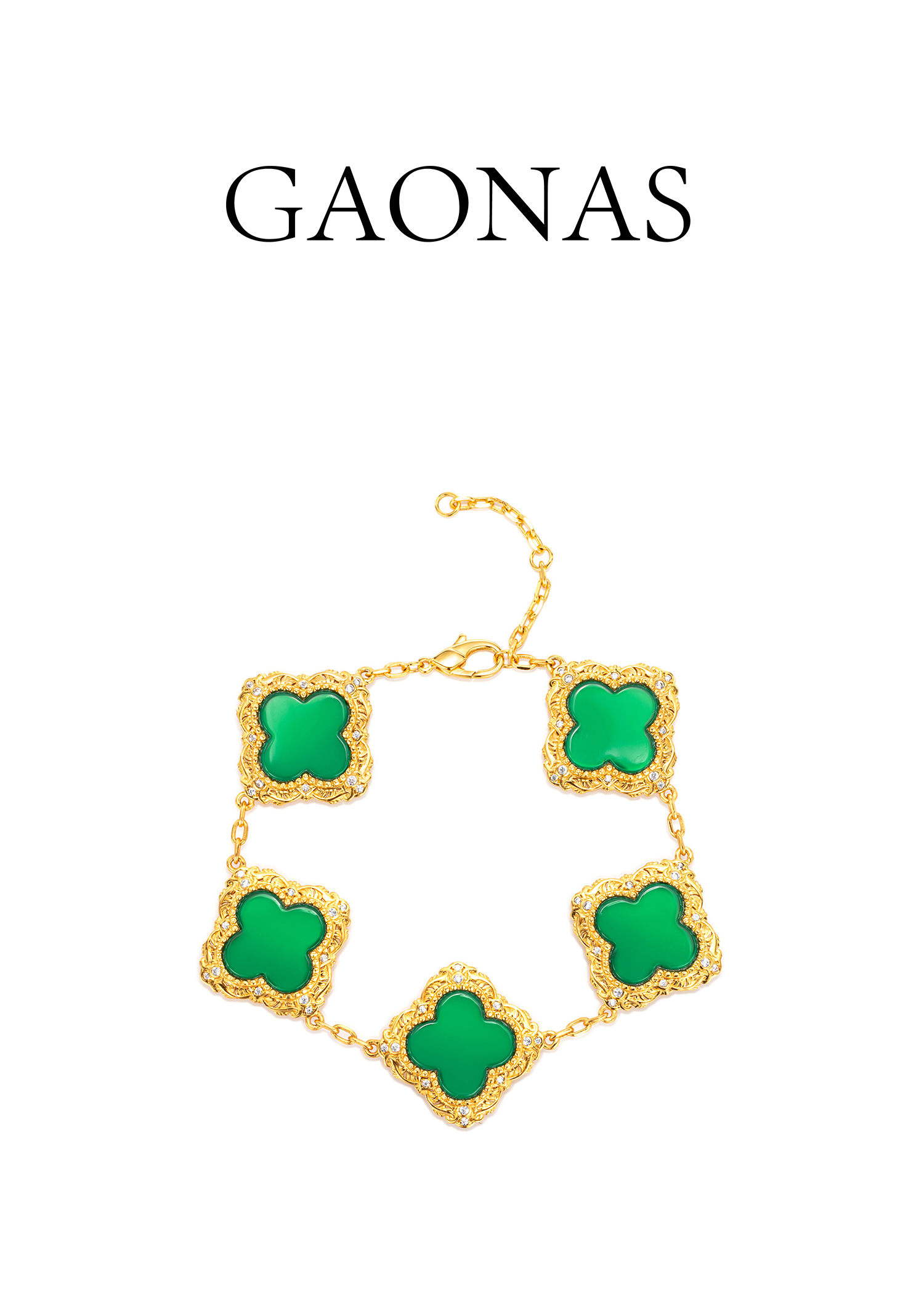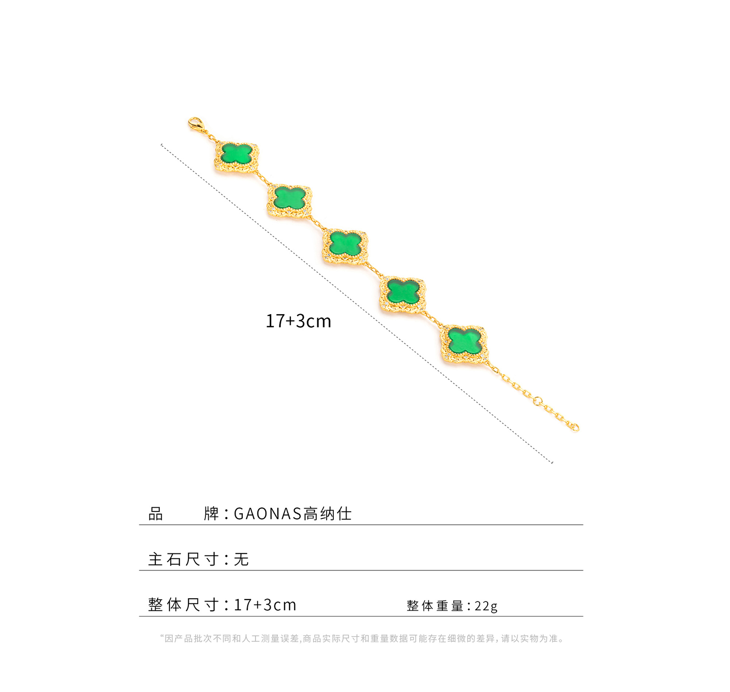 GAONAS 女士贵气绿花金色手链11680SG