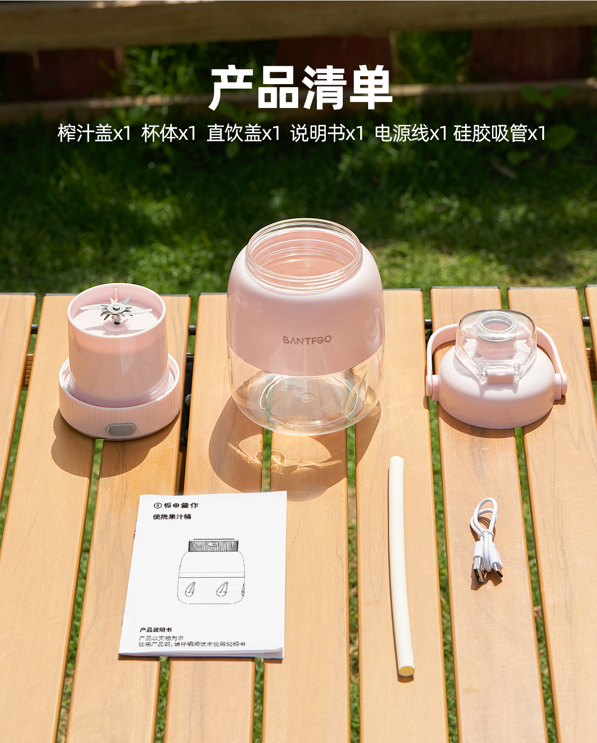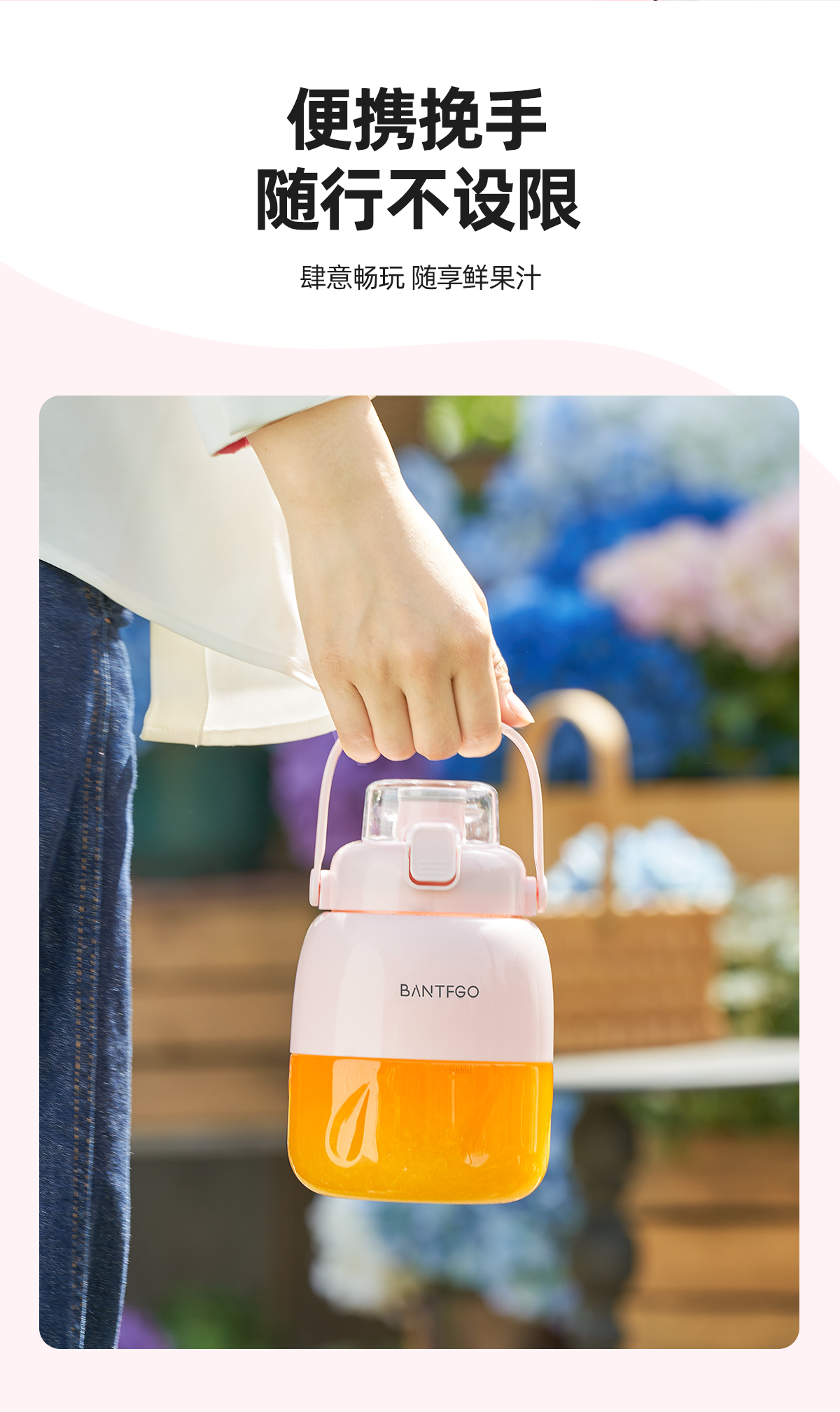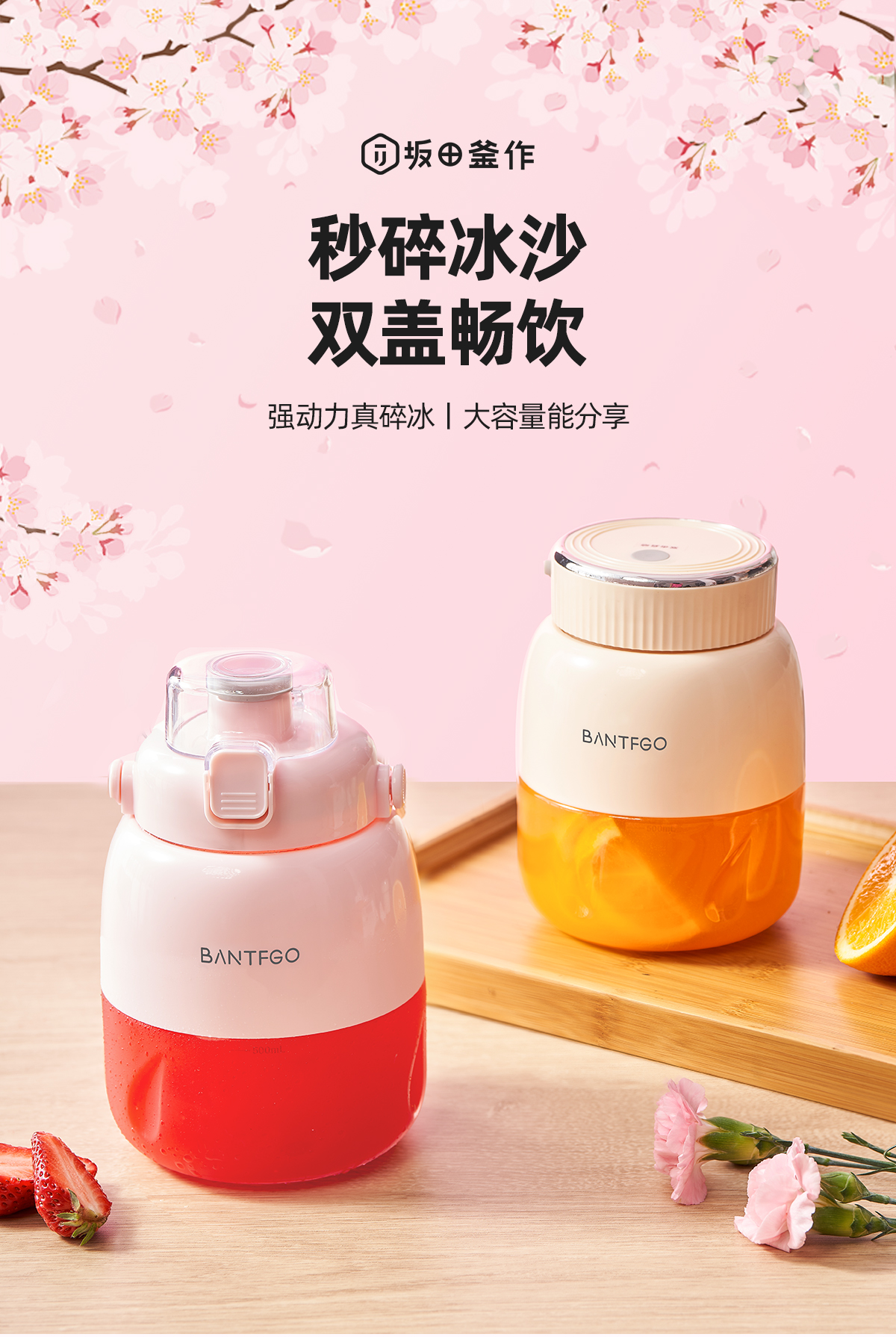 【新升级 双盖畅饮】坂田釜作果汁桶 升级20叶刀头 强动力真碎冰 果汁细腻无渣感 一杯双盖 满电可榨10杯 无线长续航 便携挽手 可拆洗SCL-JC02