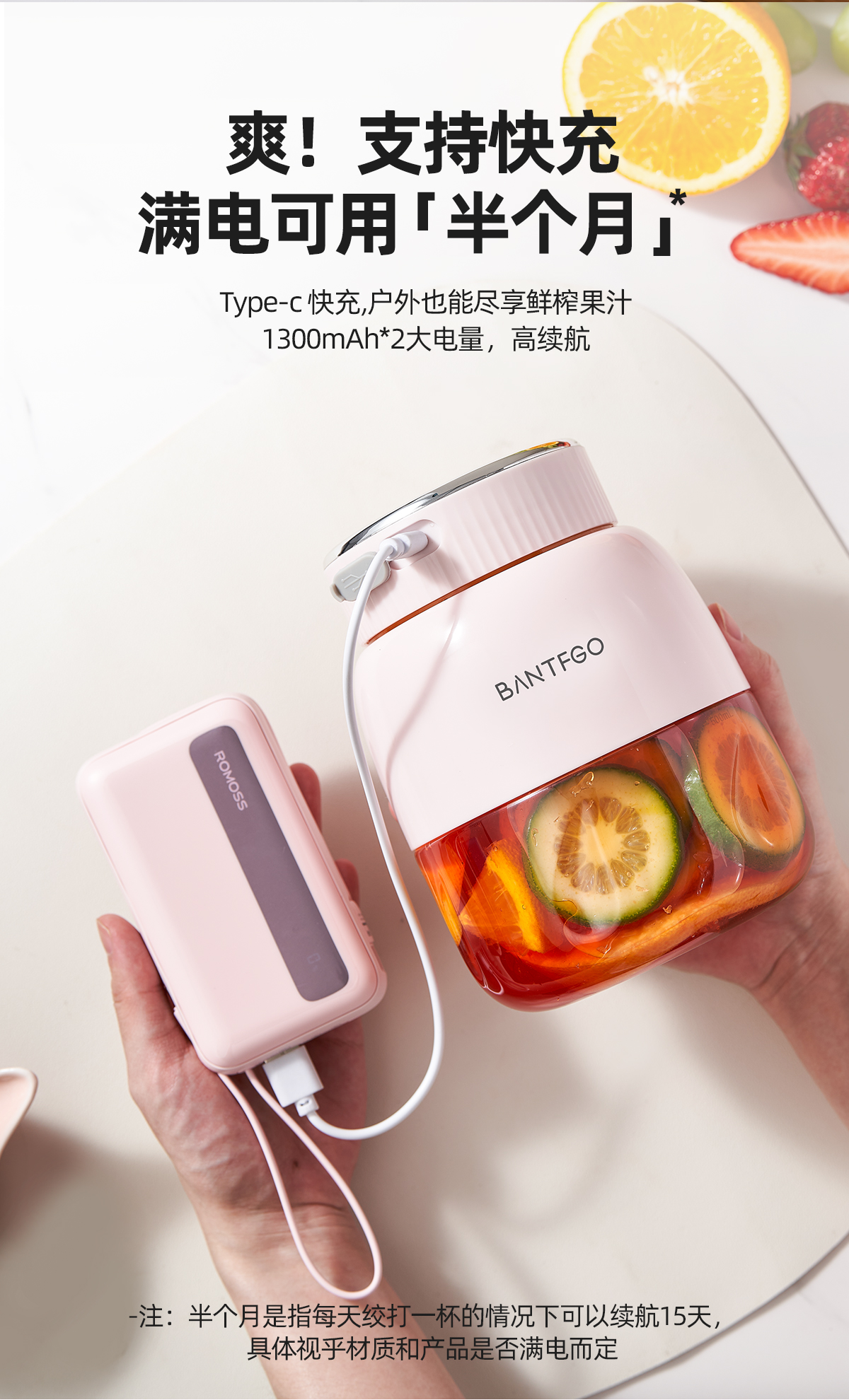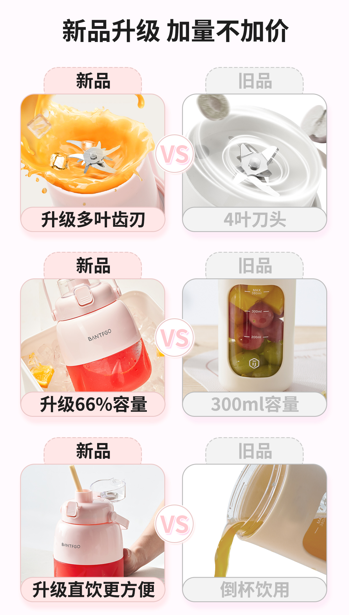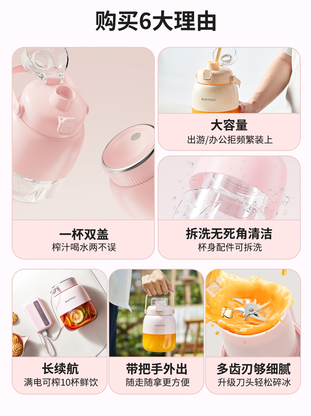 【新升级 双盖畅饮】坂田釜作果汁桶 升级20叶刀头 强动力真碎冰 果汁细腻无渣感 一杯双盖 满电可榨10杯 无线长续航 便携挽手 可拆洗SCL-JC02