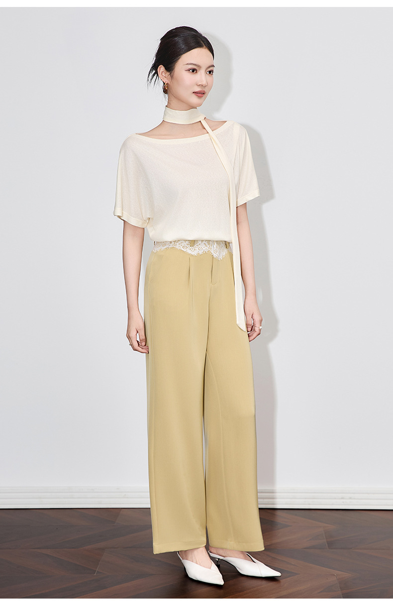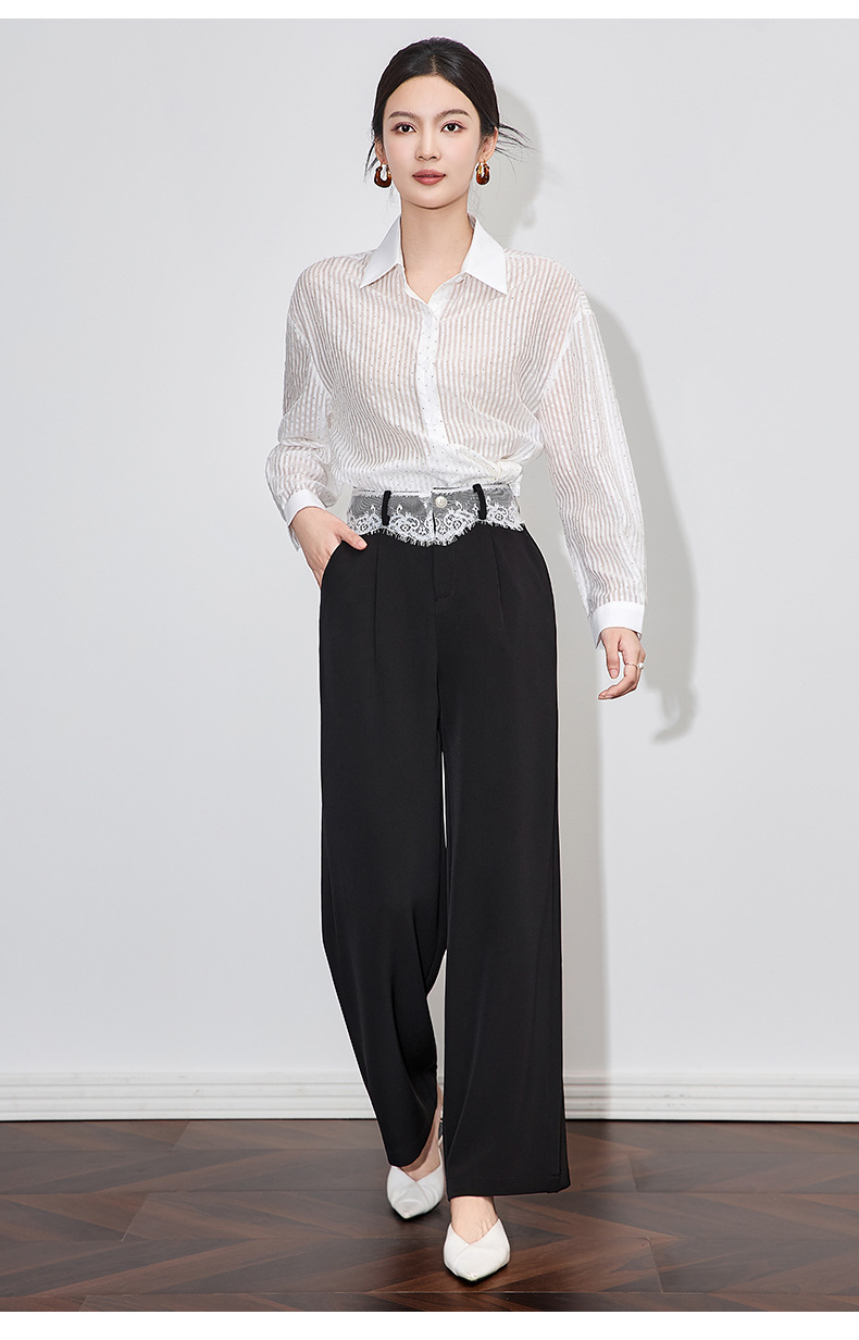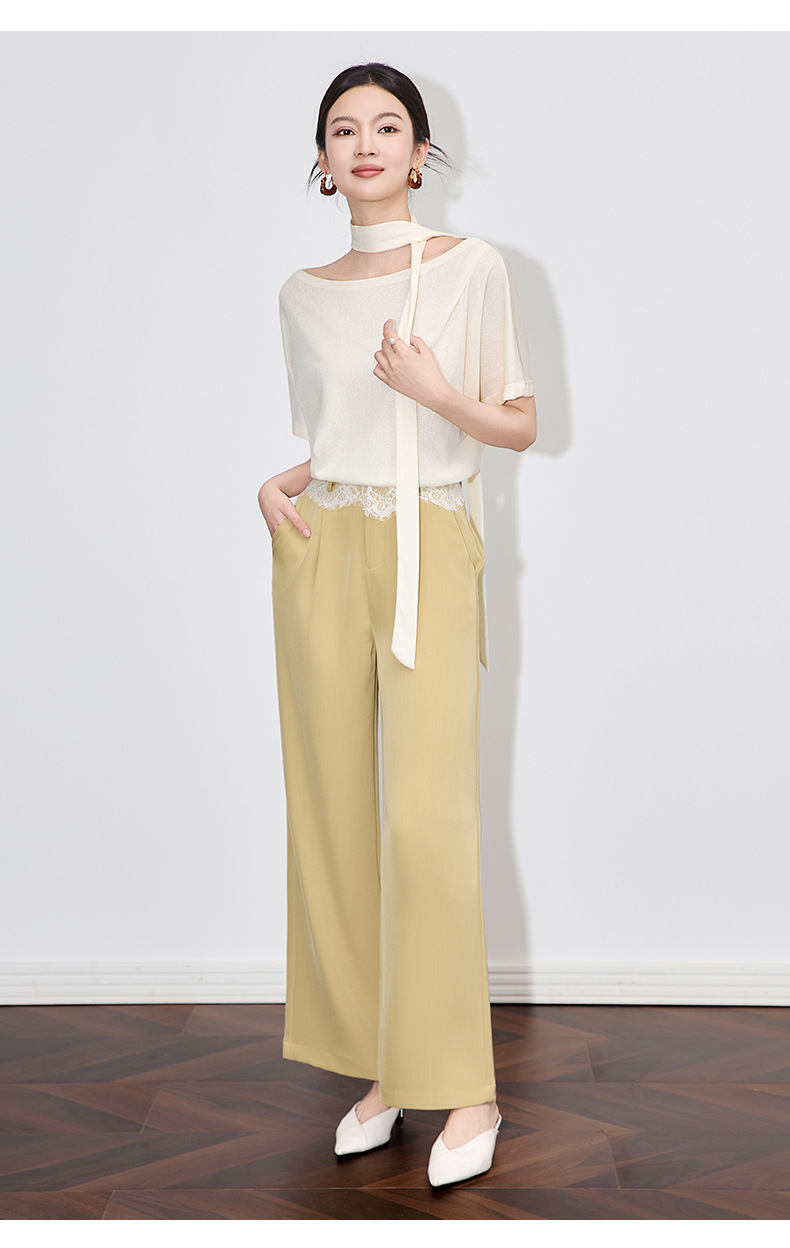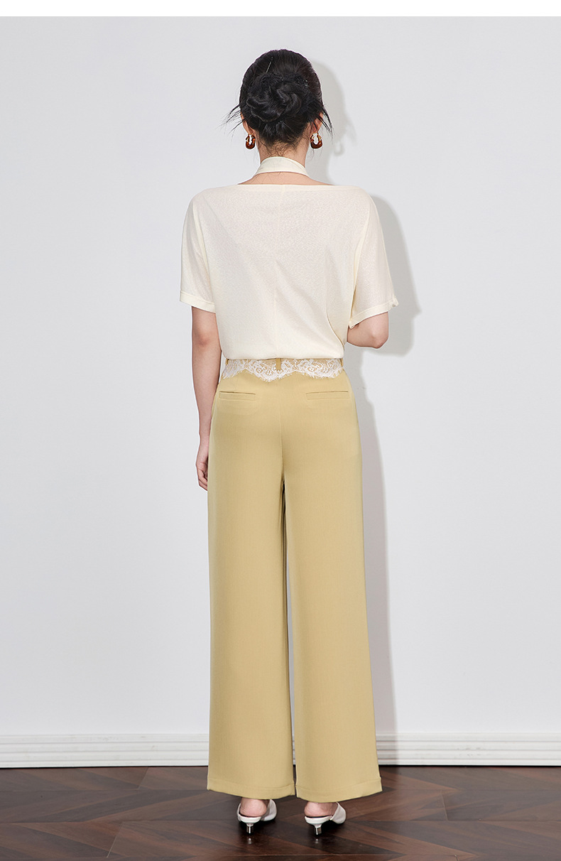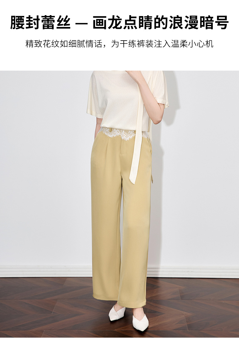 「高货wl」全系升级【铂金会员238/天猫319/差价81】(94932)洛诗琳高品质拼接蕾丝花边西装裤2025夏季抗皱冰感阔腿裤