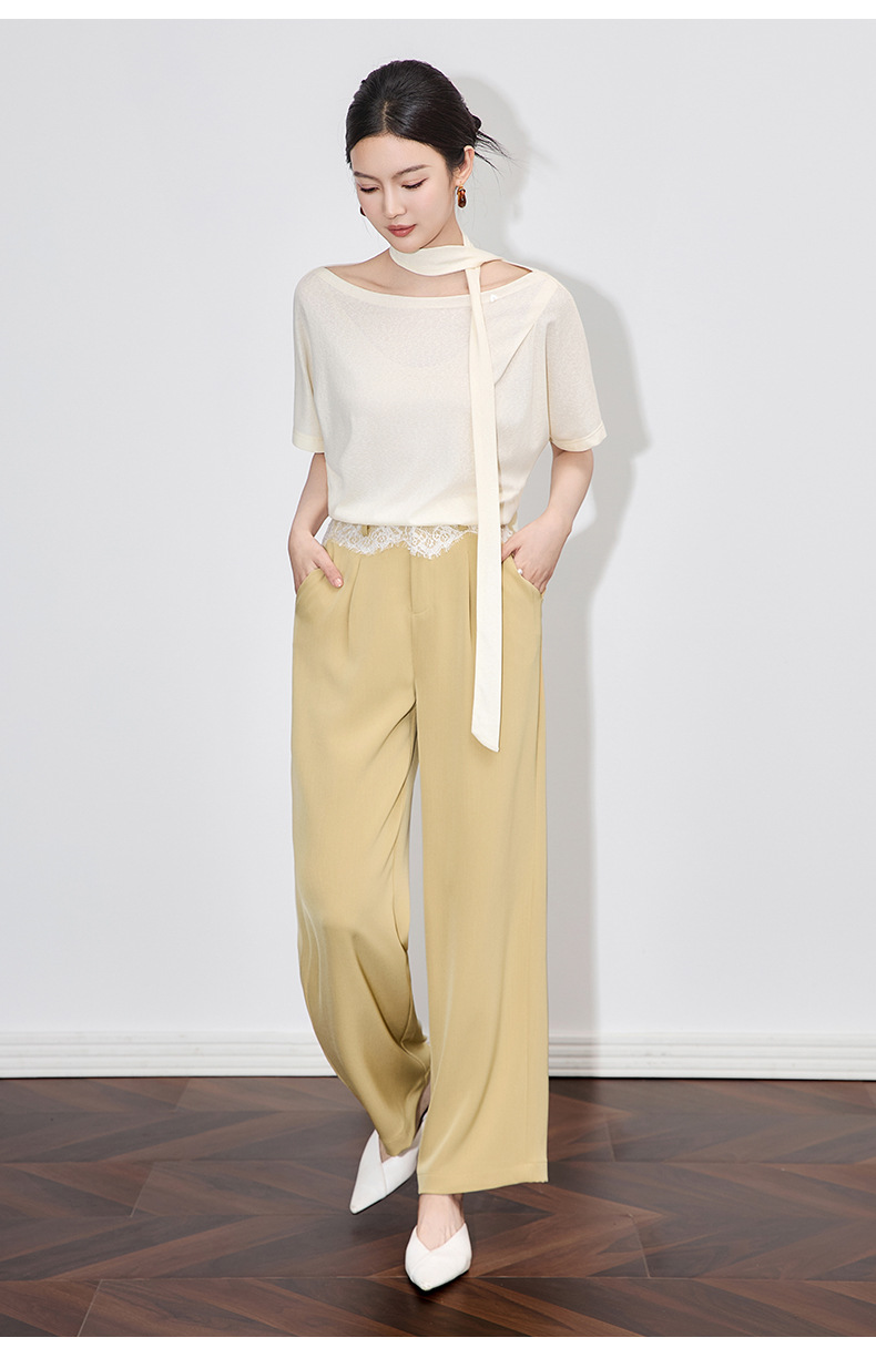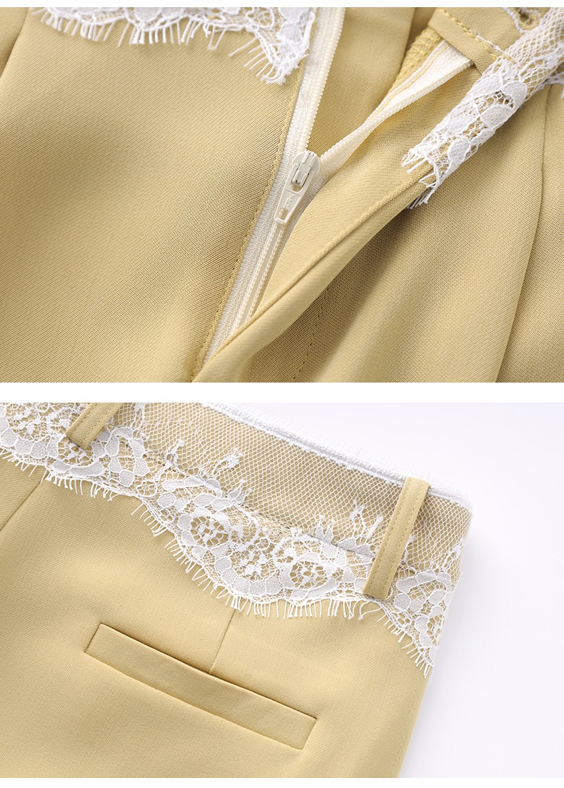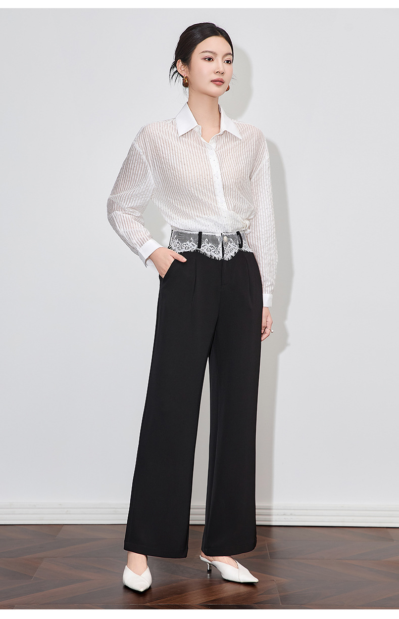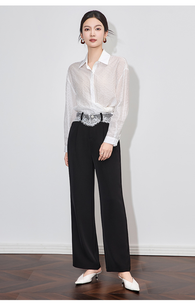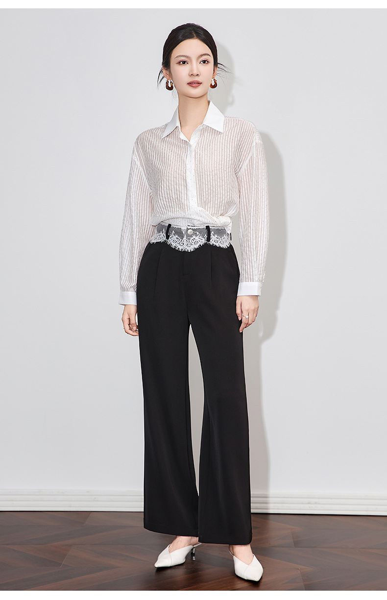 「高货wl」全系升级【铂金会员238/天猫319/差价81】(94932)洛诗琳高品质拼接蕾丝花边西装裤2025夏季抗皱冰感阔腿裤