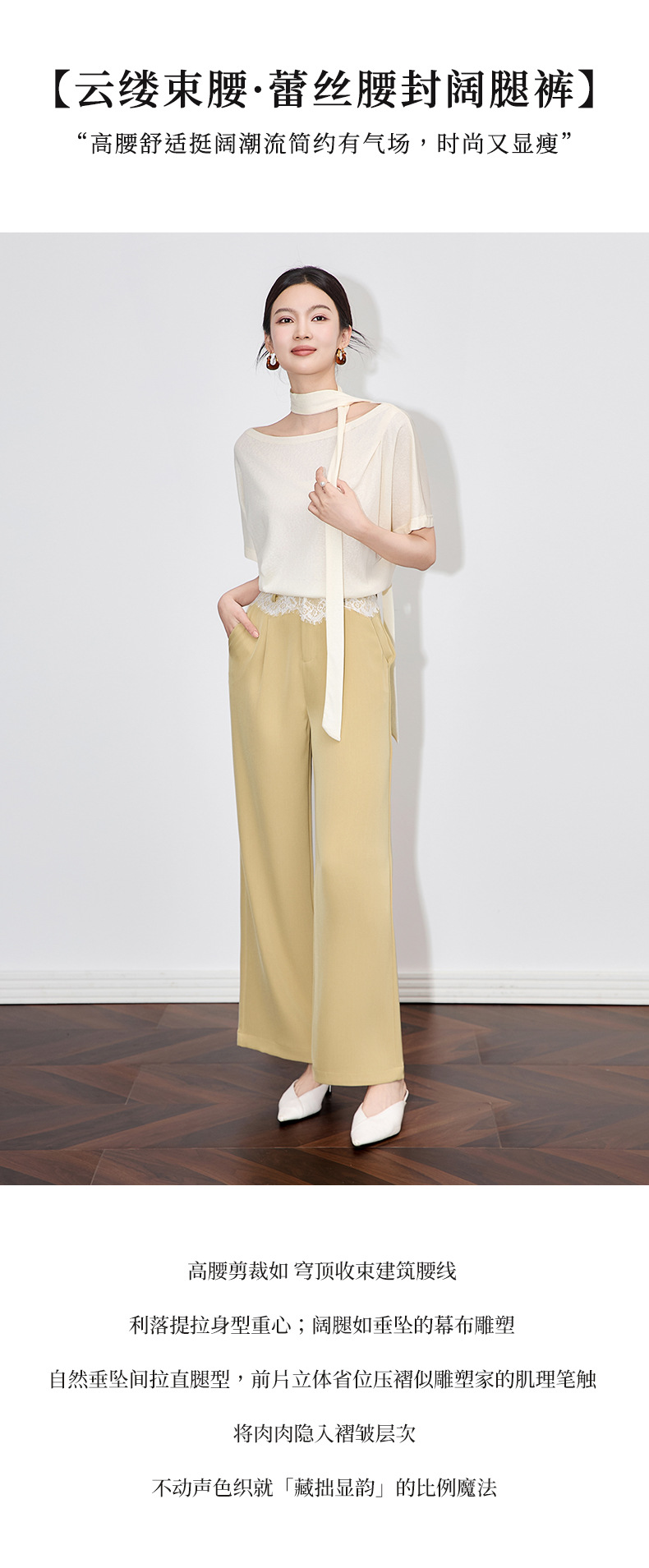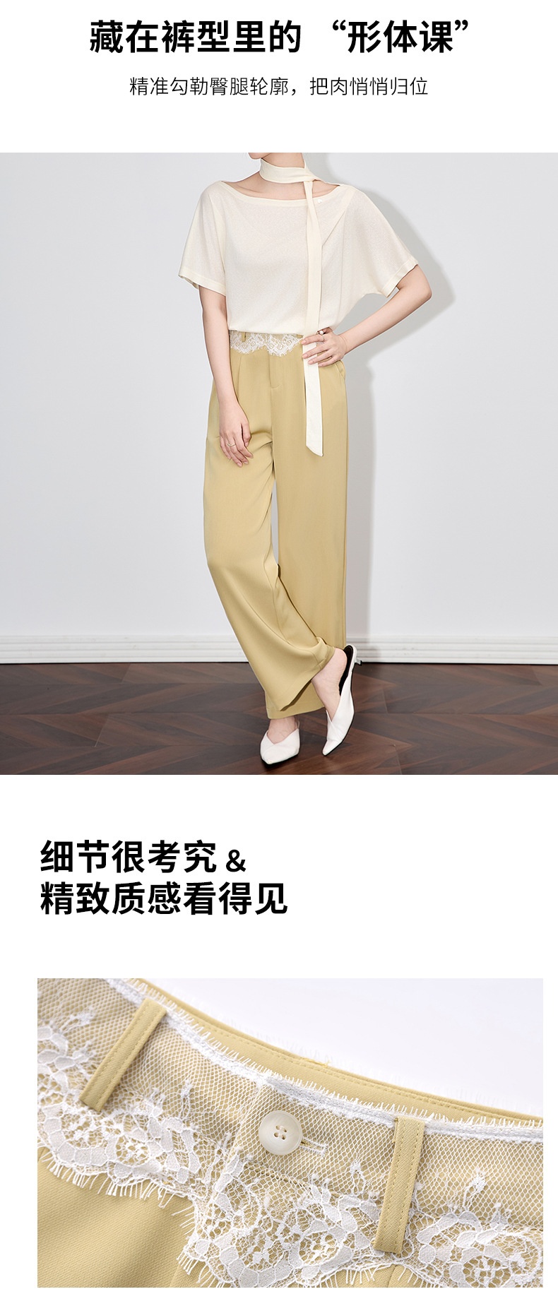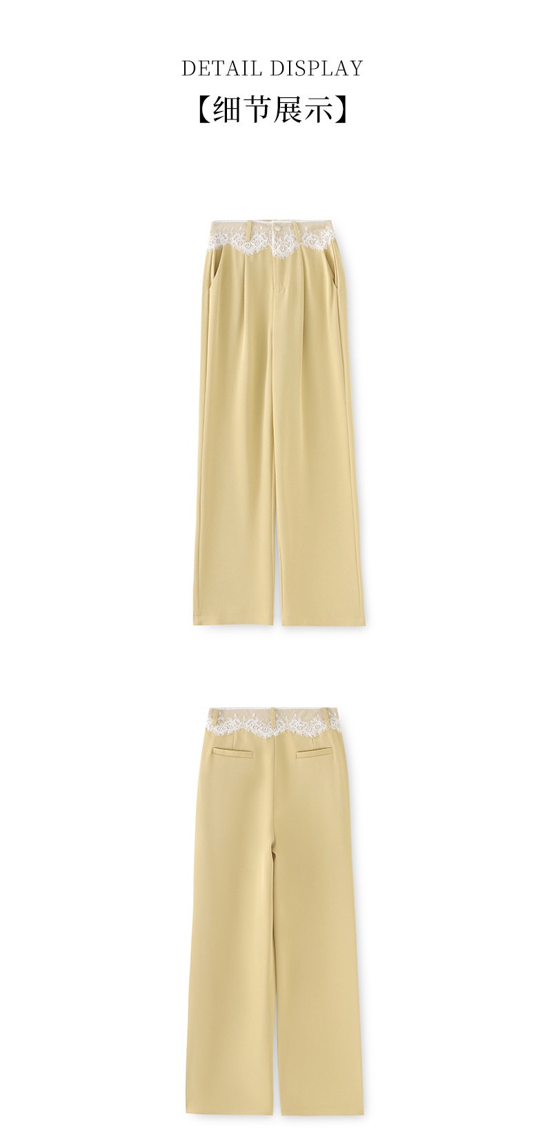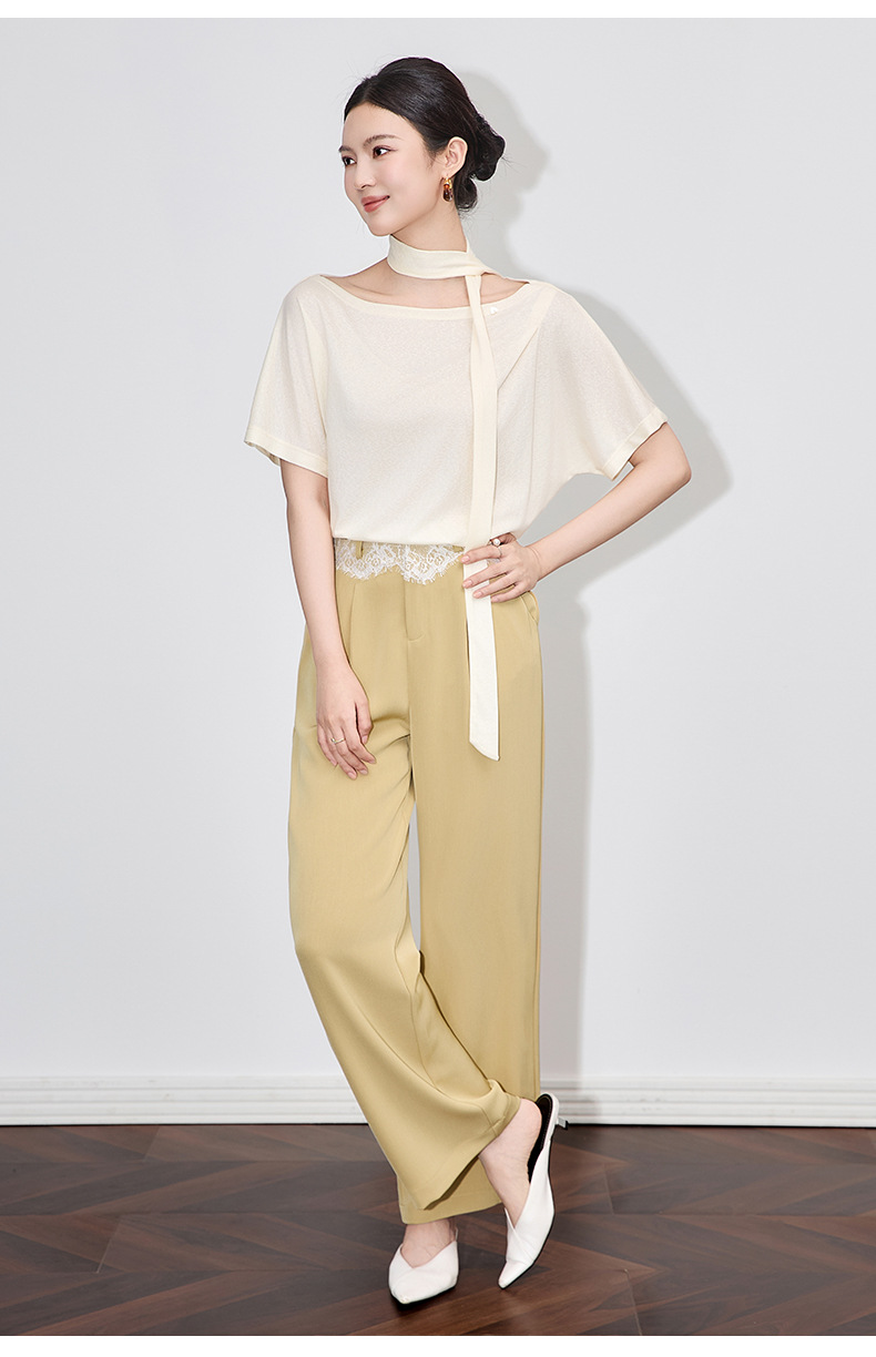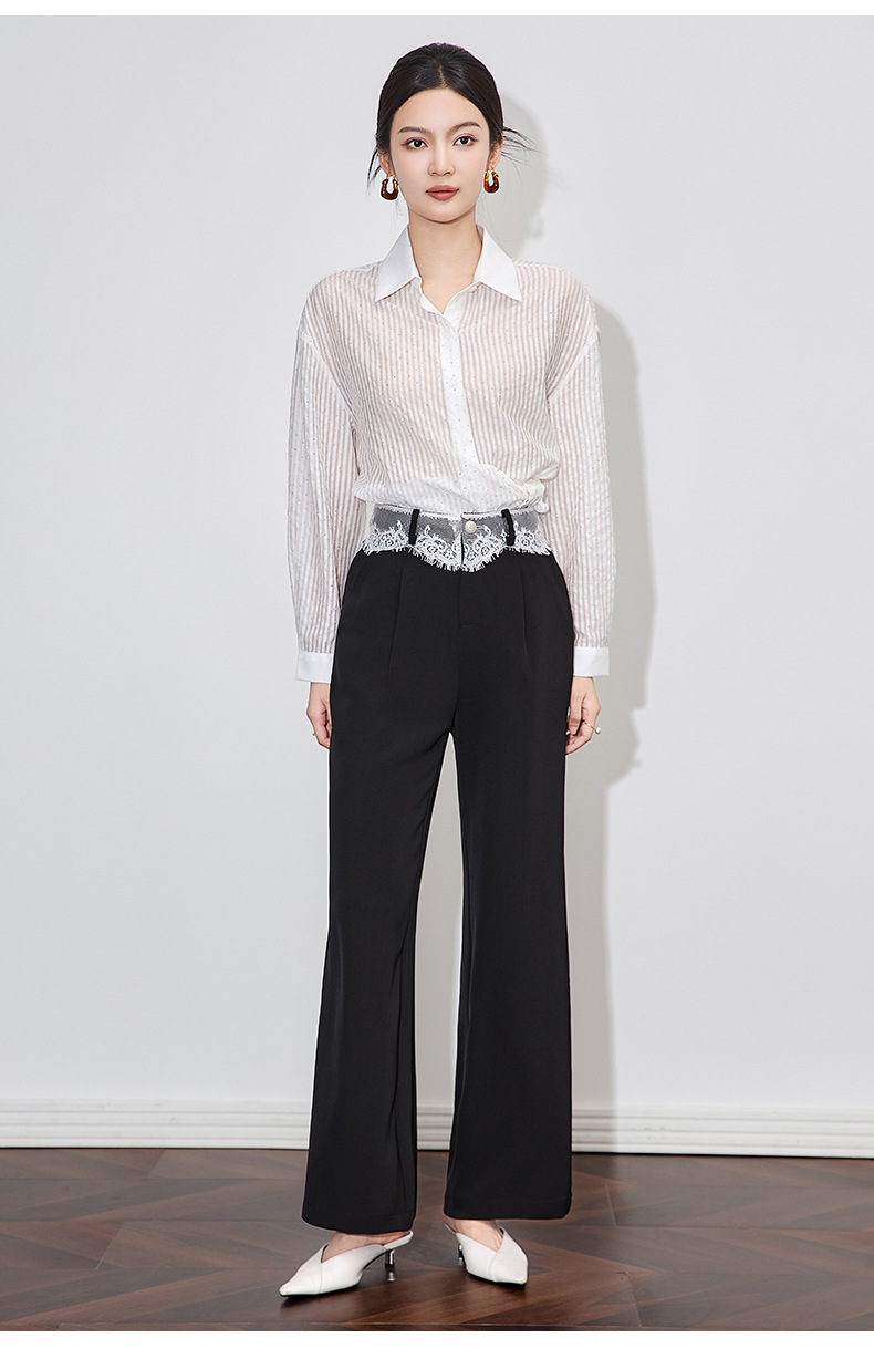 「高货wl」全系升级【铂金会员238/天猫319/差价81】(94932)洛诗琳高品质拼接蕾丝花边西装裤2025夏季抗皱冰感阔腿裤