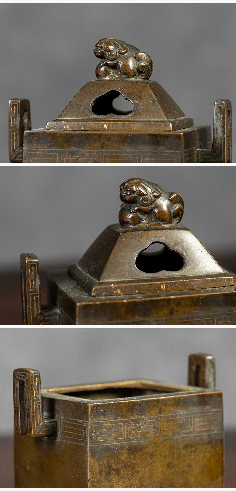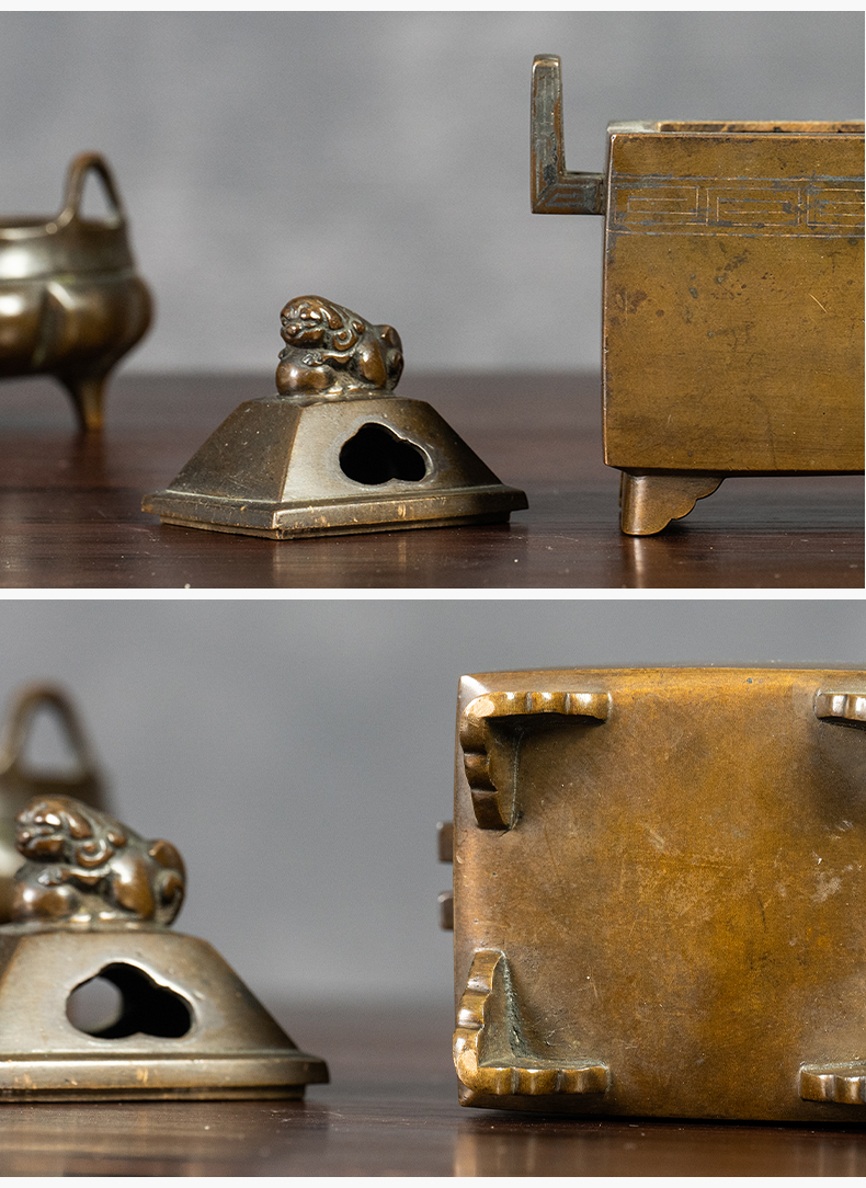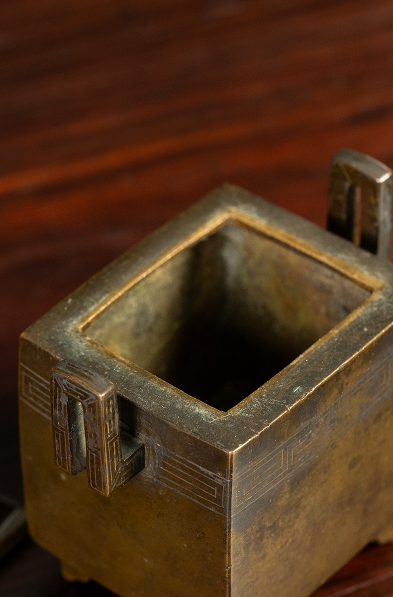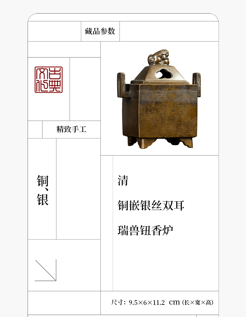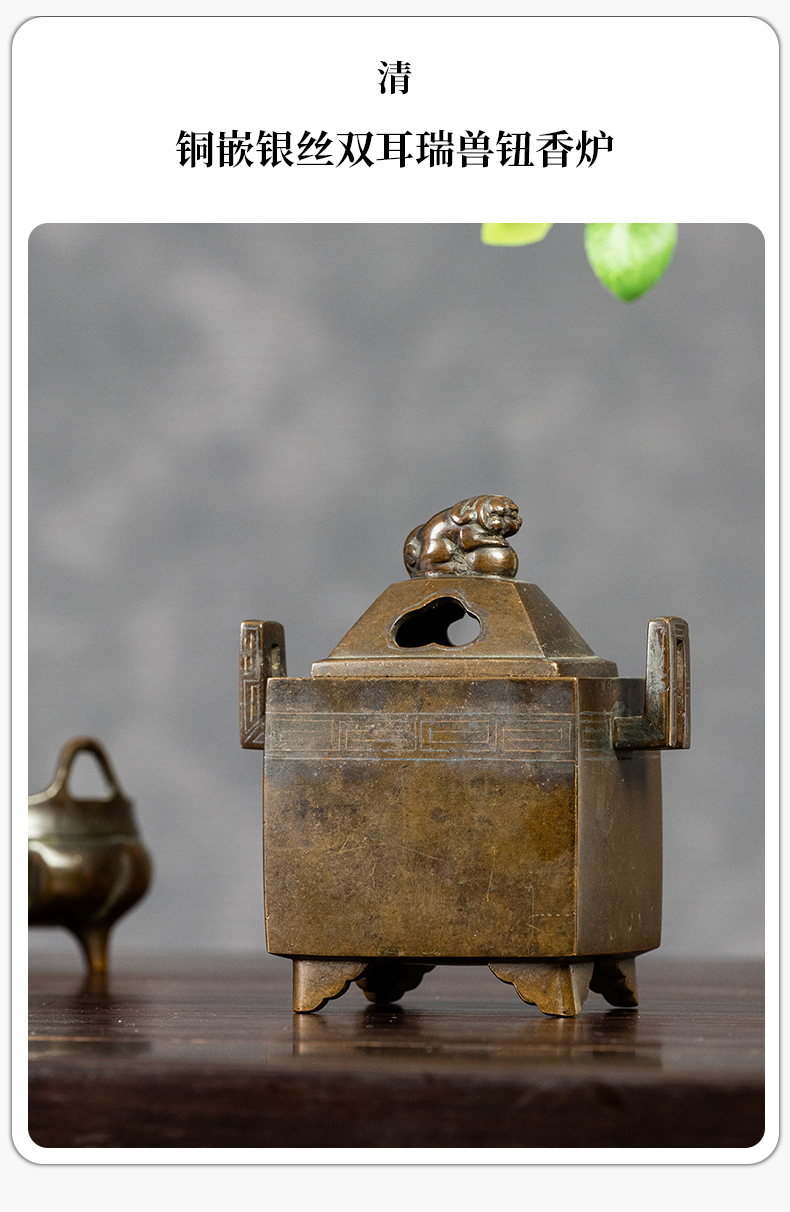 清 铜嵌银丝双耳瑞兽钮香炉