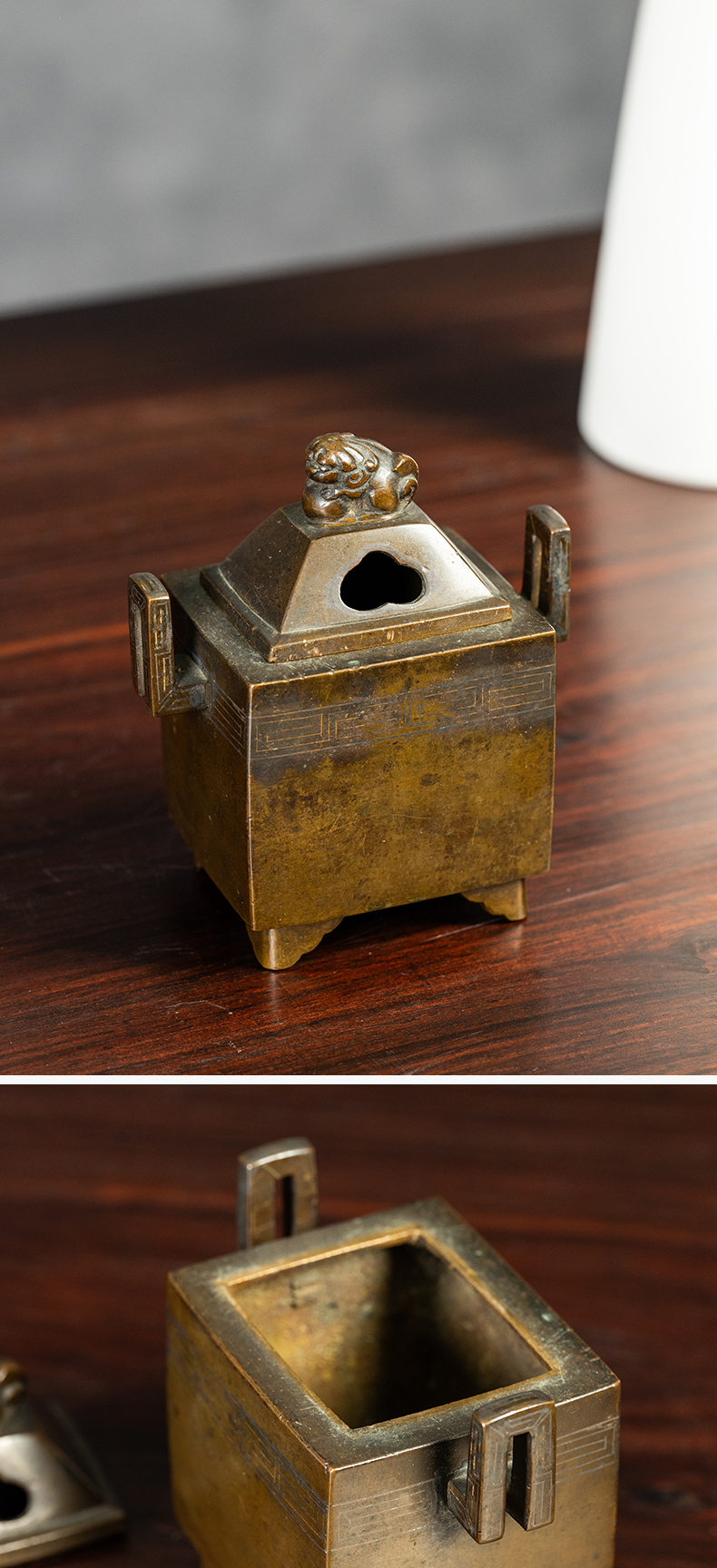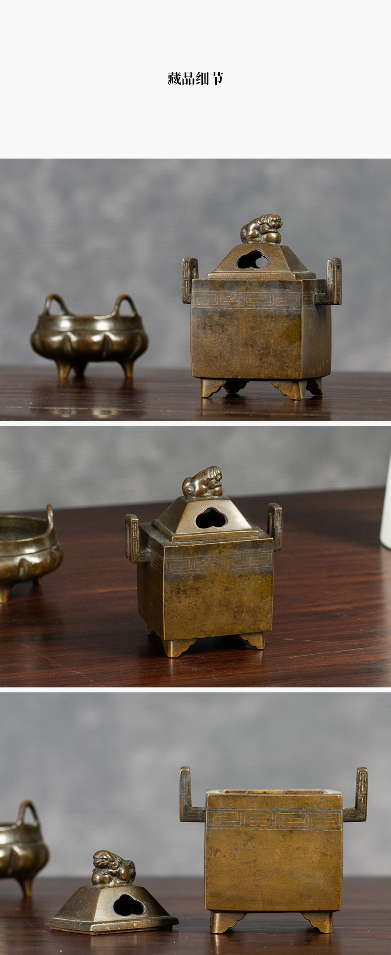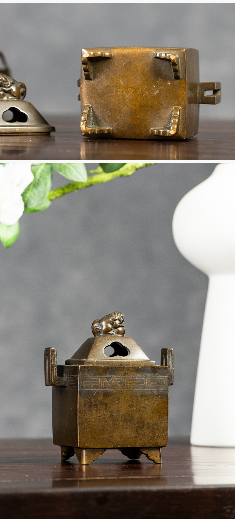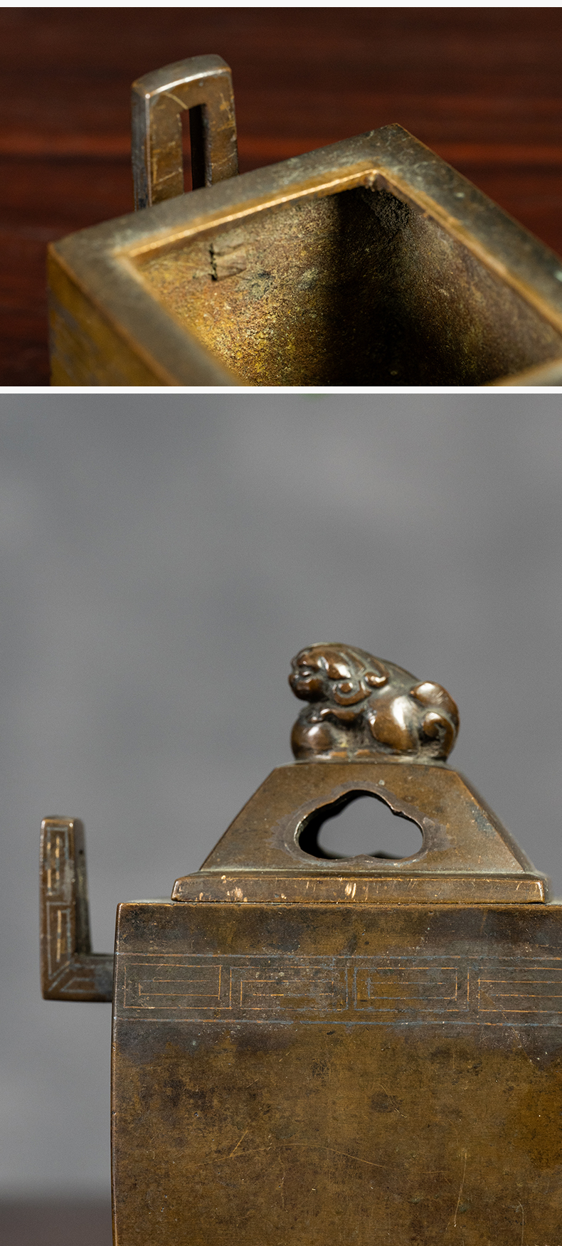 清 铜嵌银丝双耳瑞兽钮香炉