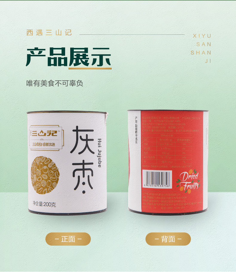 西遇三山记·若羌红枣200g*2(一级枣) 枣皮红润有光泽