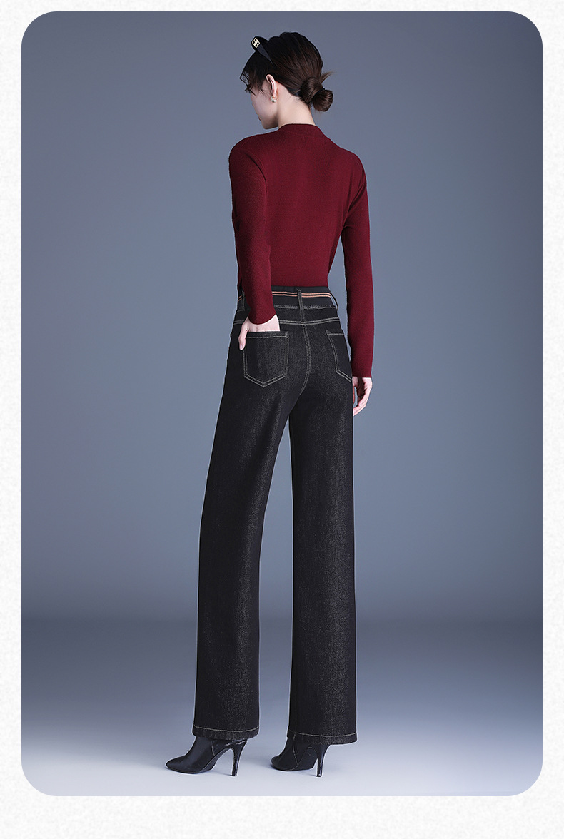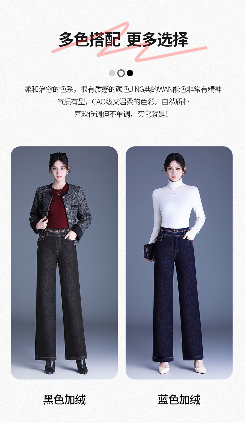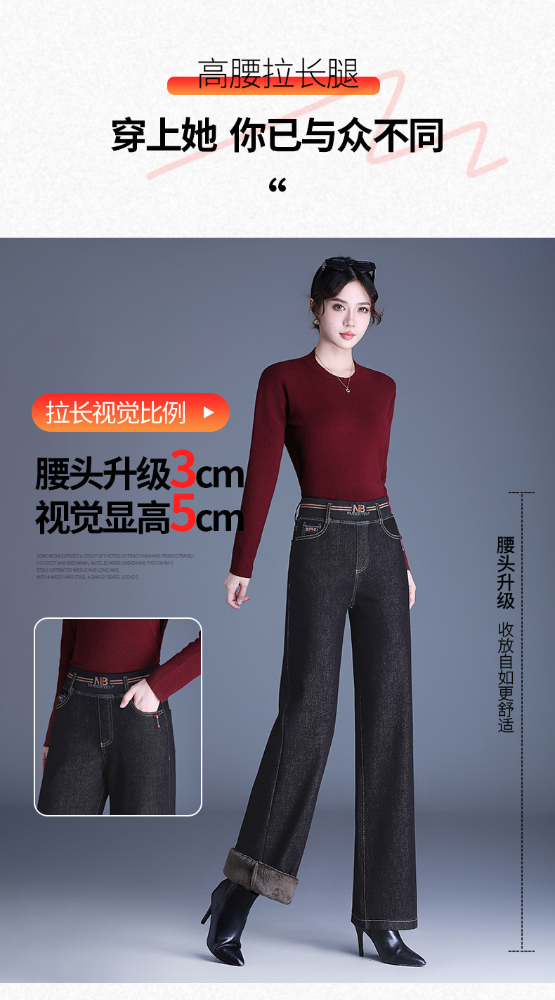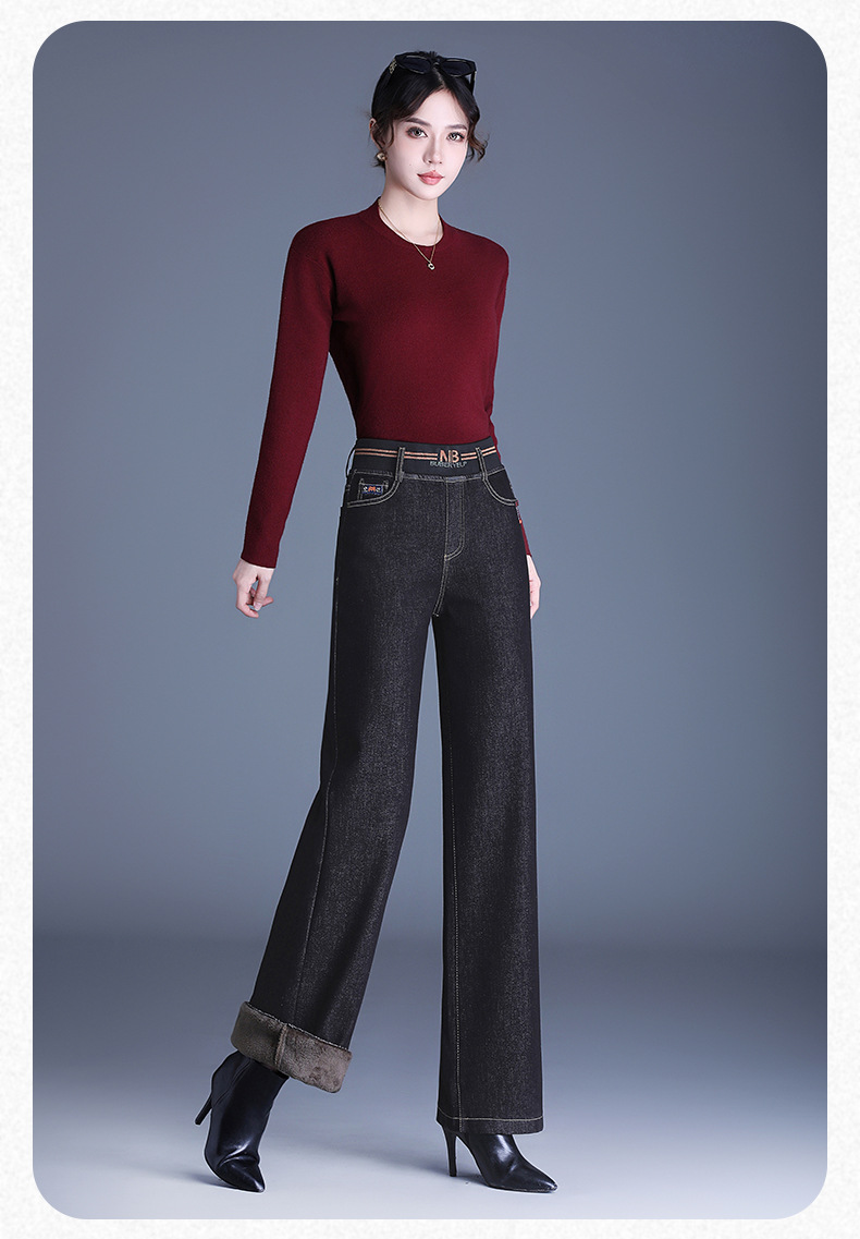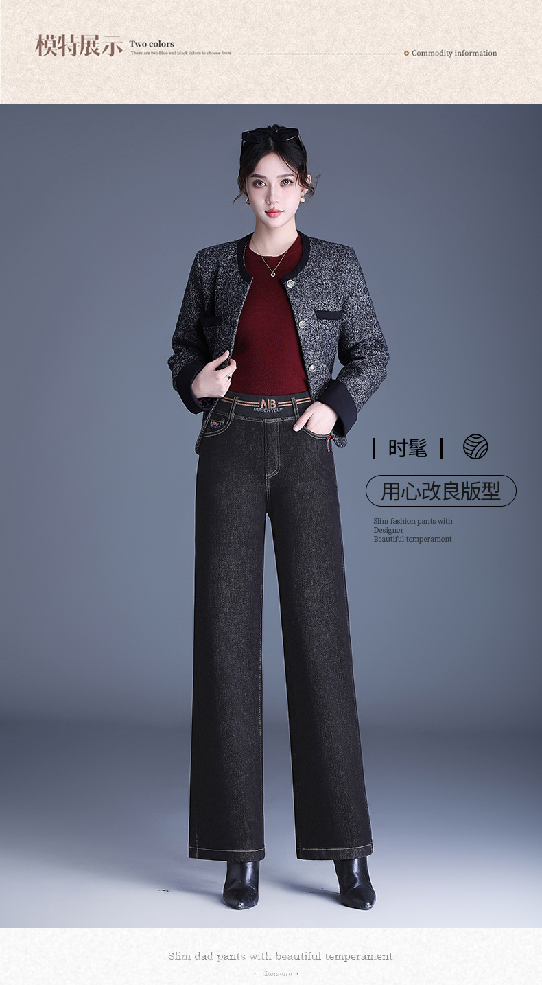 MYX-BFZY-X2088-L加绒加厚时髦牛仔直筒裤24年冬款长款高腰显瘦休闲洋气窄版阔腿裤