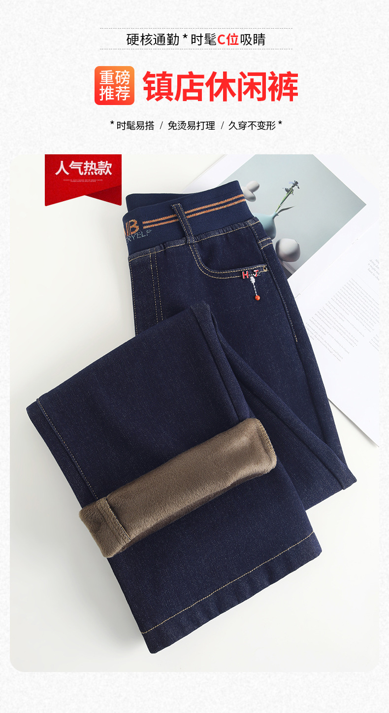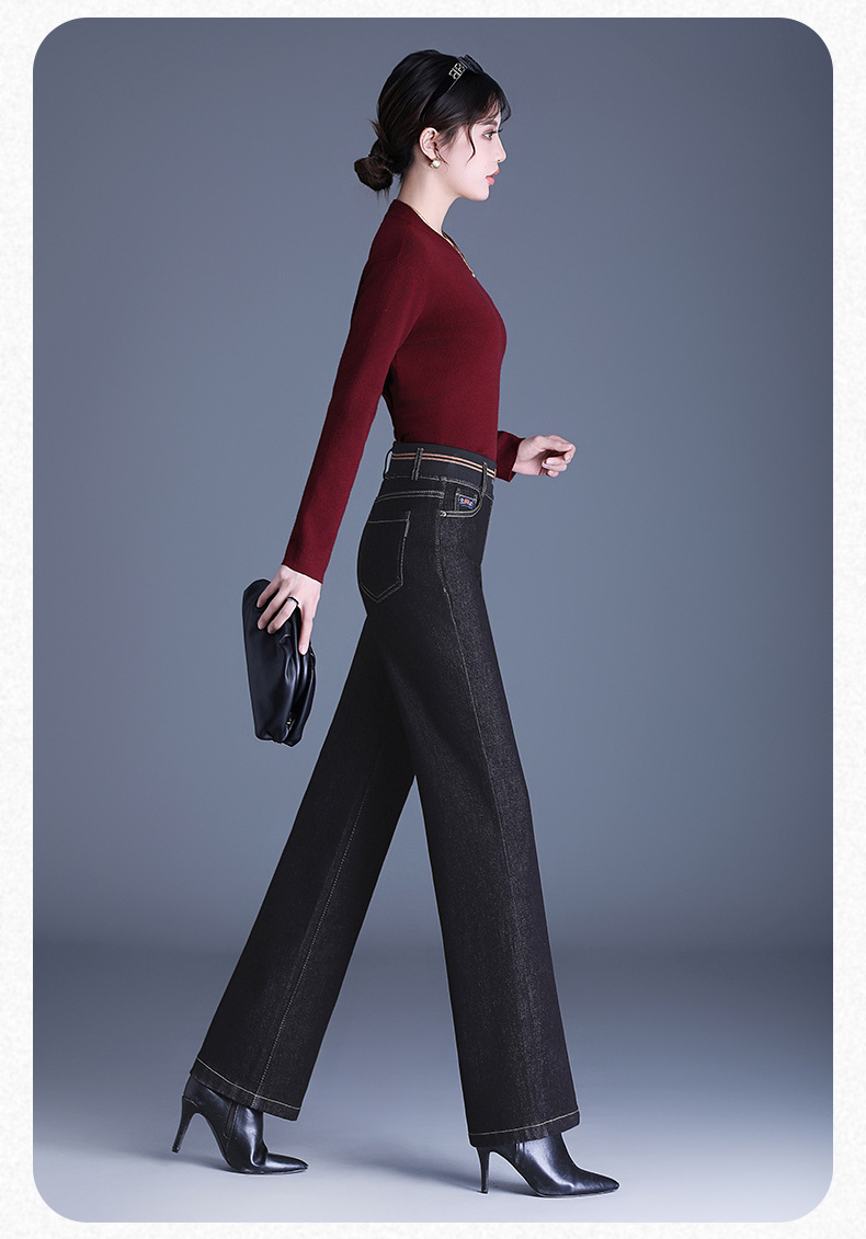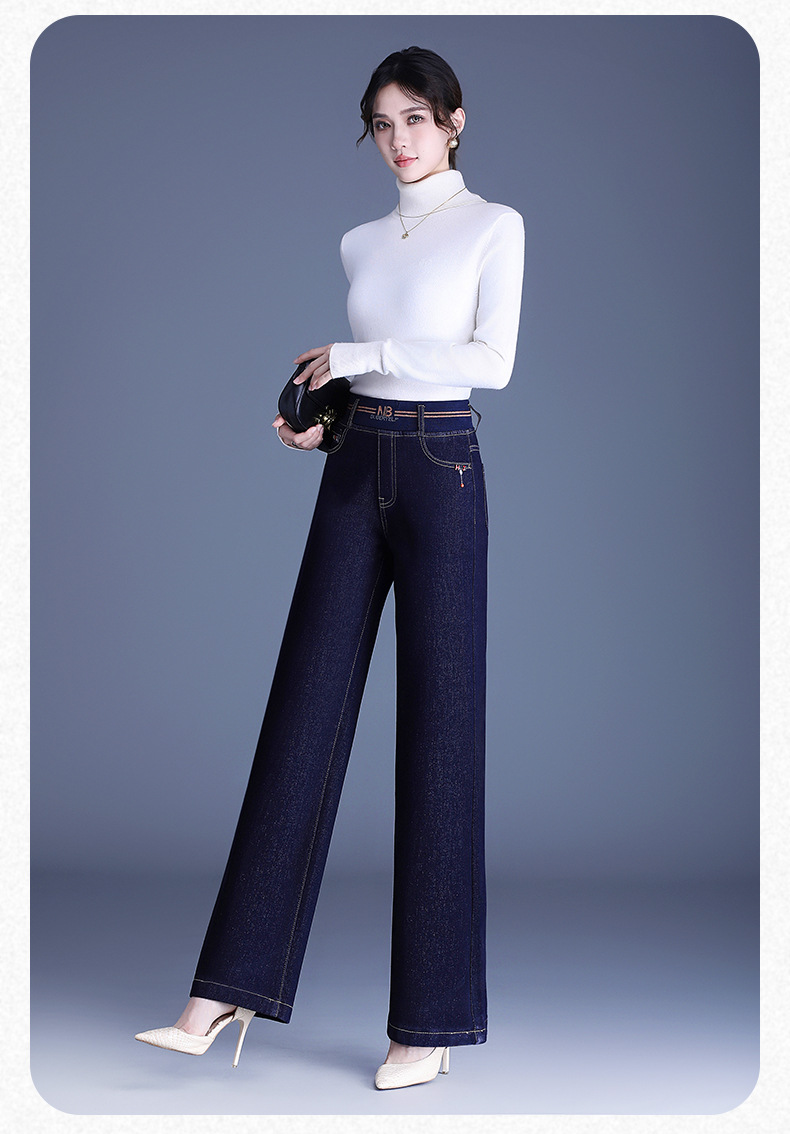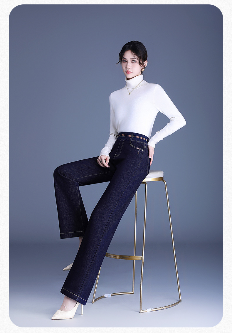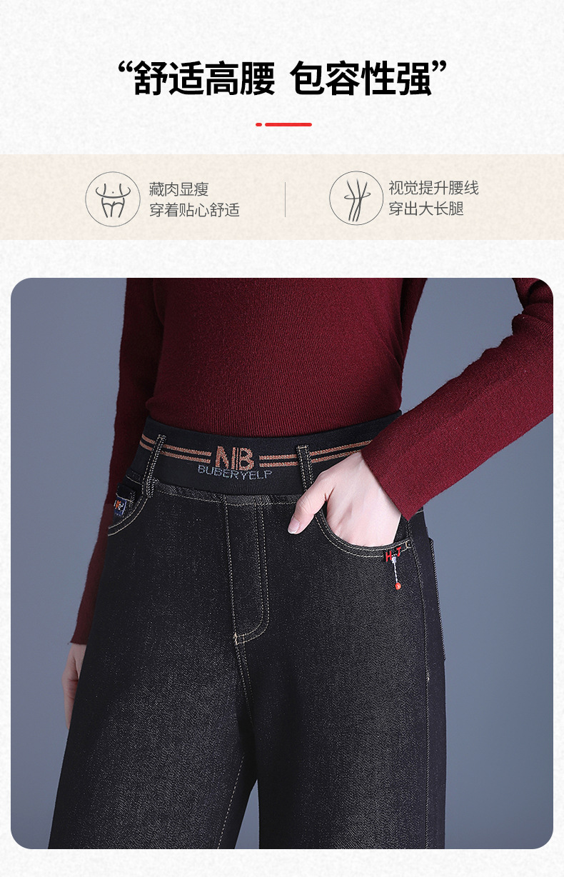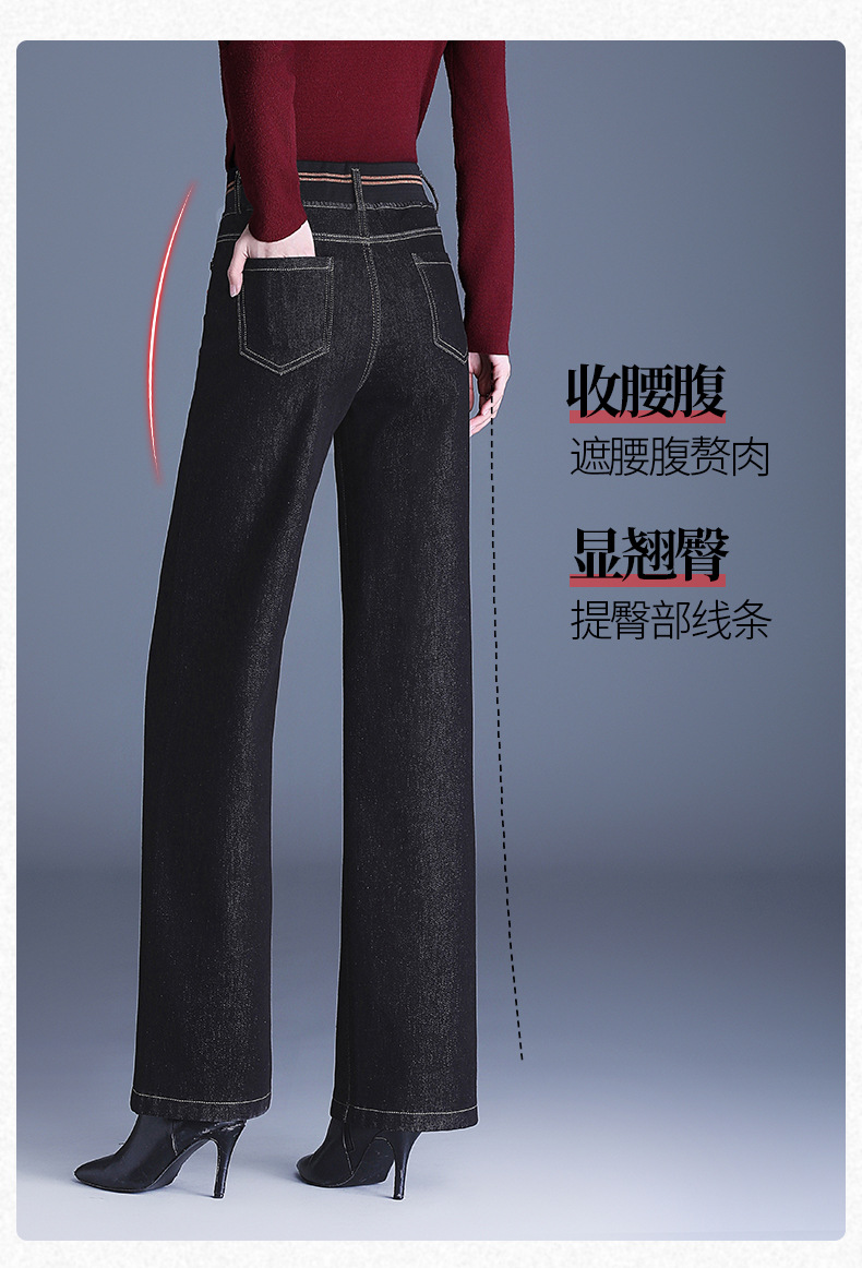 MYX-BFZY-X2088-L加绒加厚时髦牛仔直筒裤24年冬款长款高腰显瘦休闲洋气窄版阔腿裤