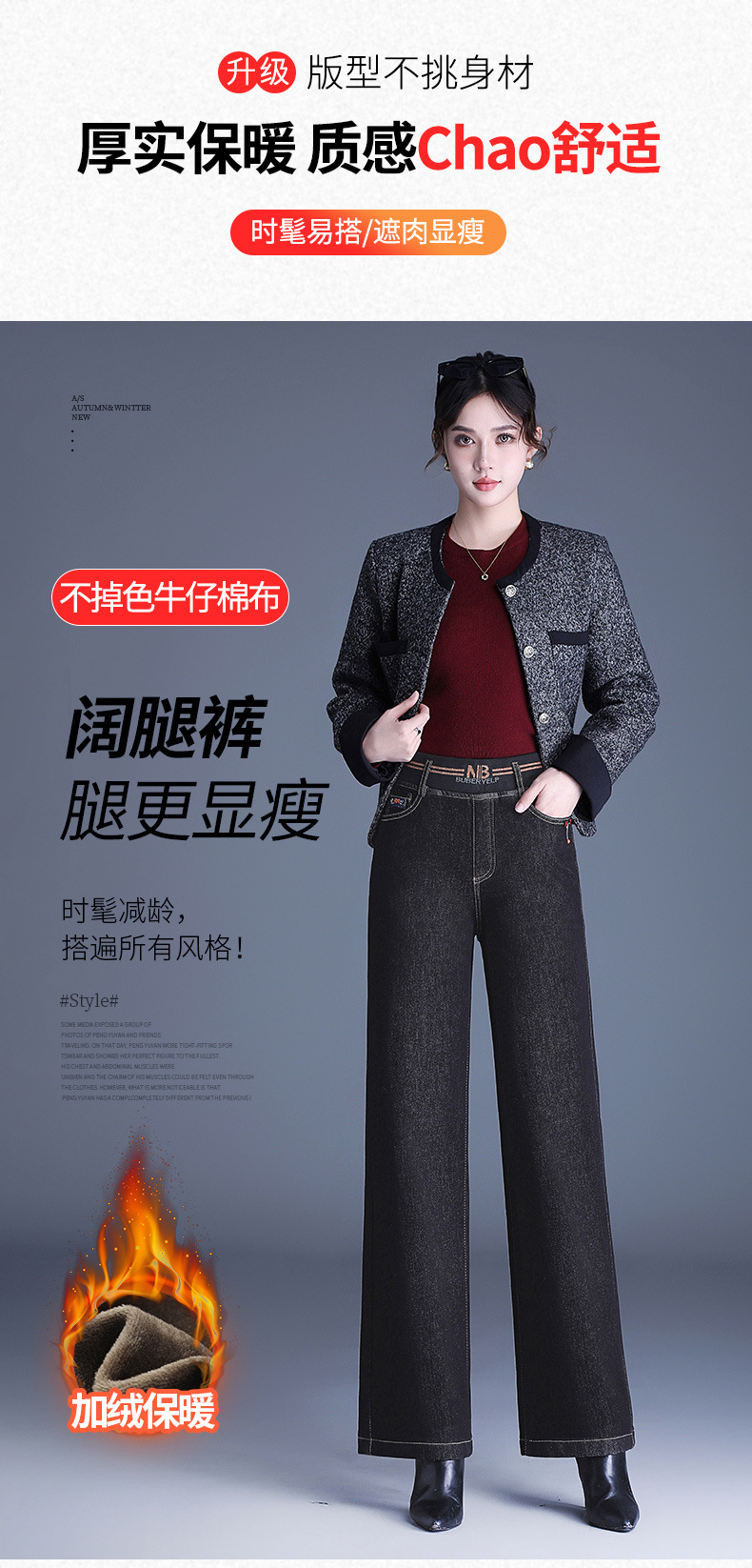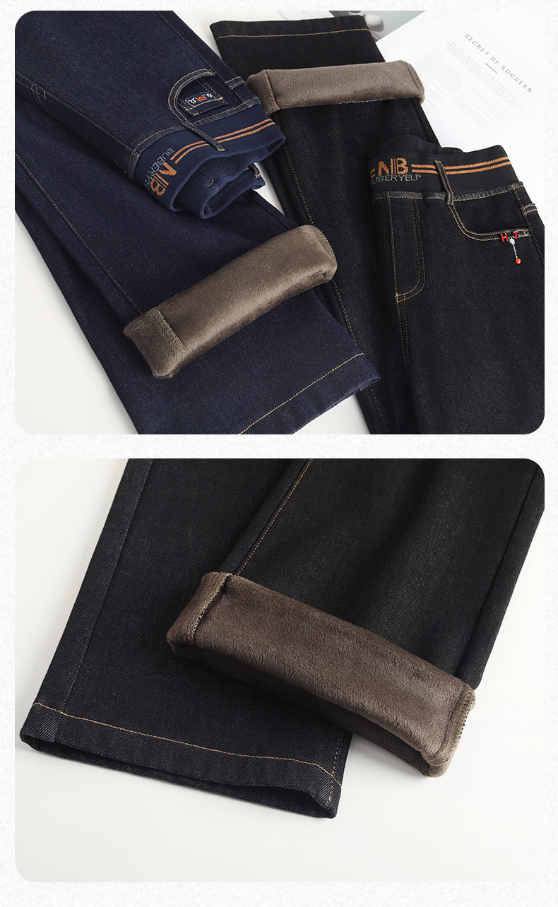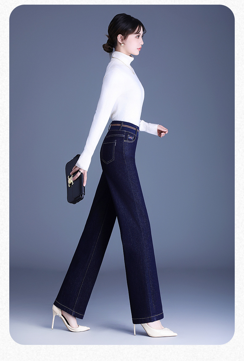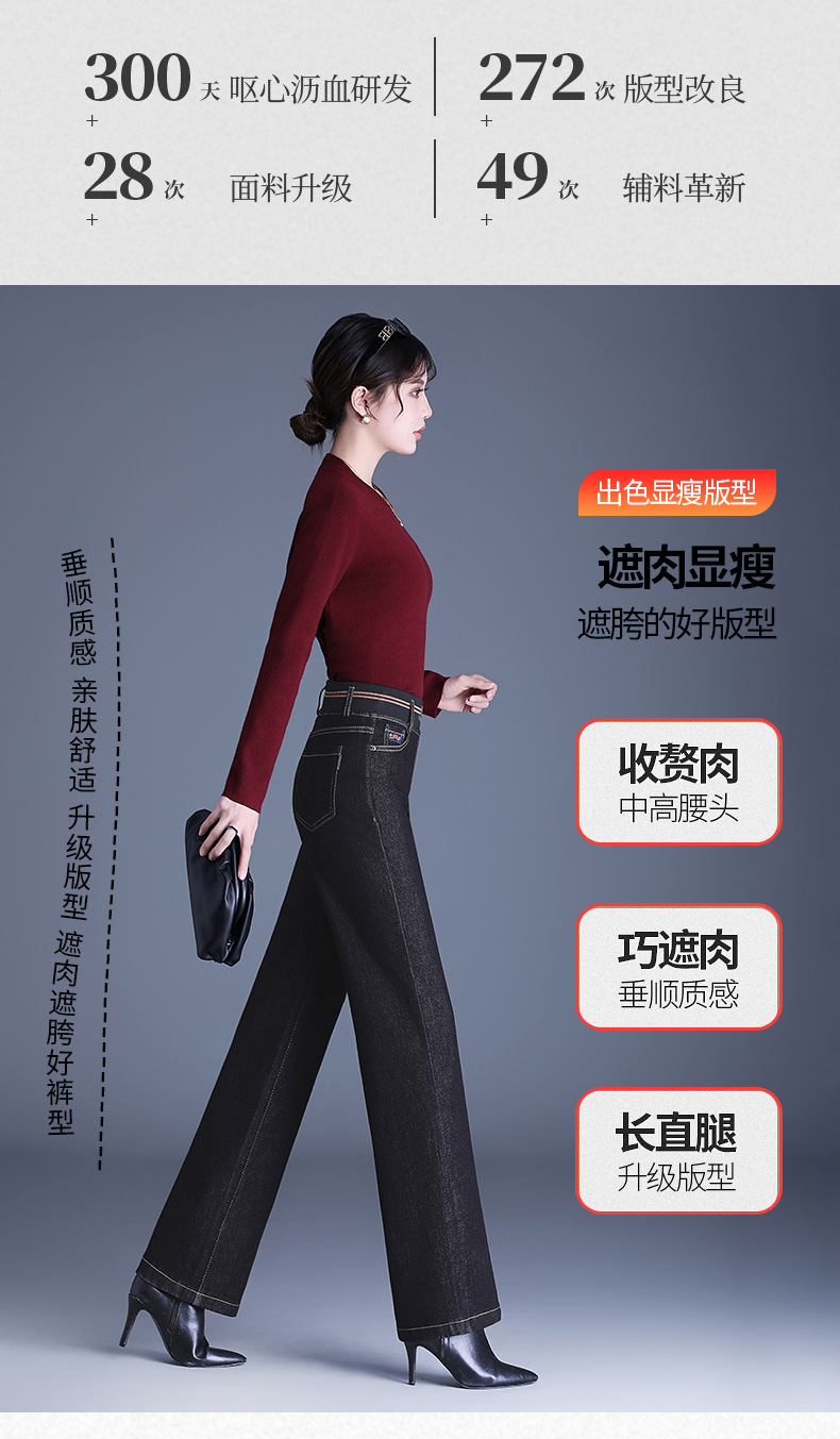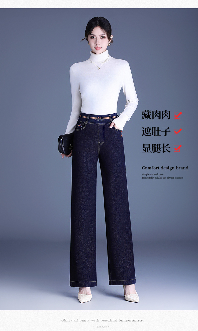 MYX-BFZY-X2088-L加绒加厚时髦牛仔直筒裤24年冬款长款高腰显瘦休闲洋气窄版阔腿裤