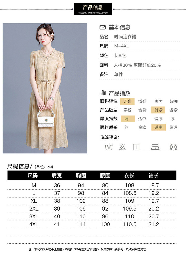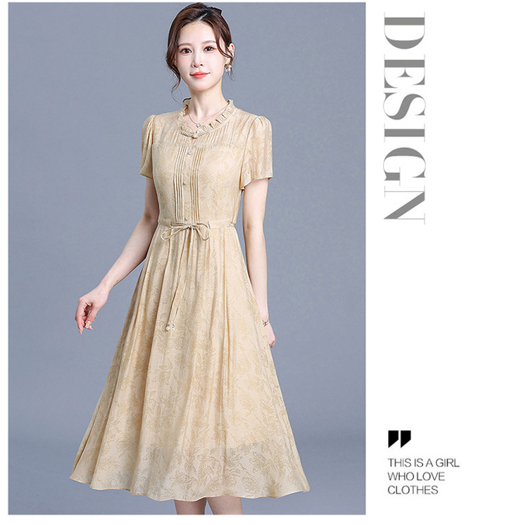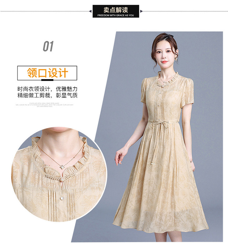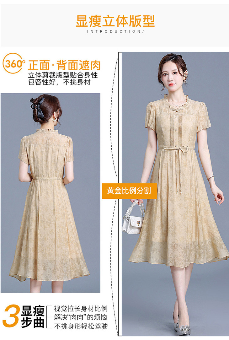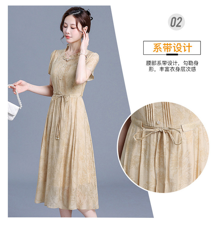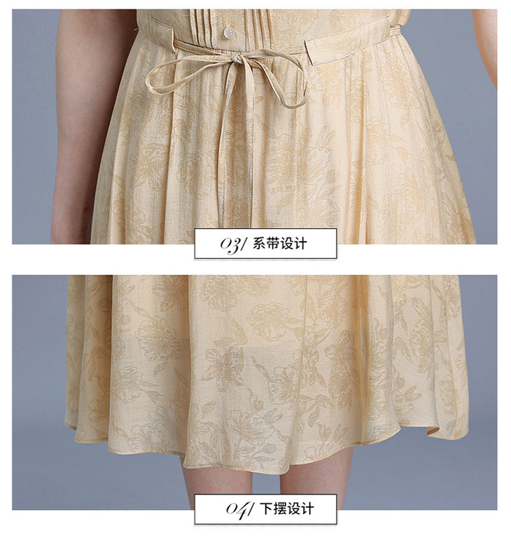 QYMKED-9439-Y时尚印花连衣裙夏季短袖裙中长款系带收腰裙女装连衣裙