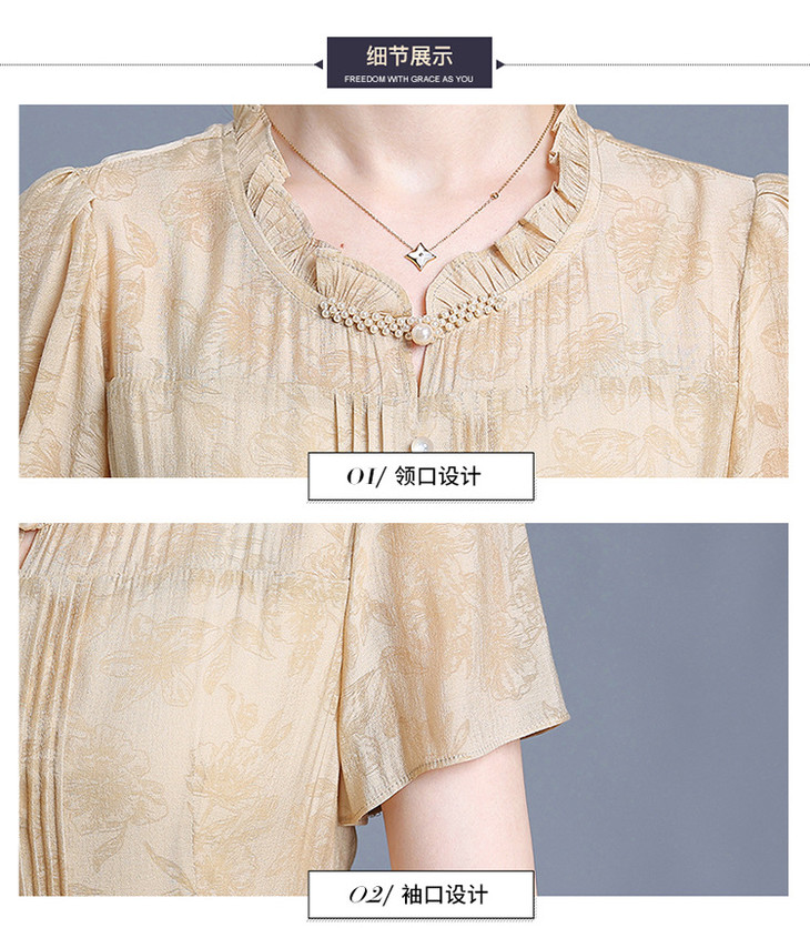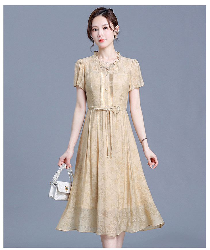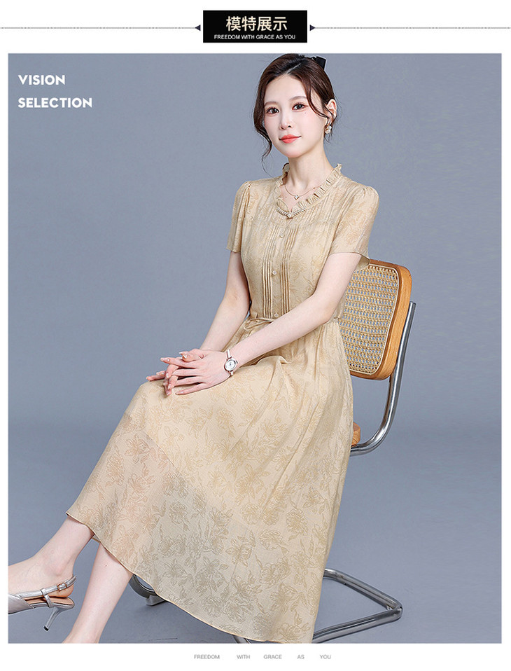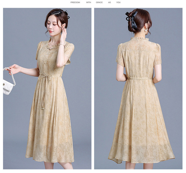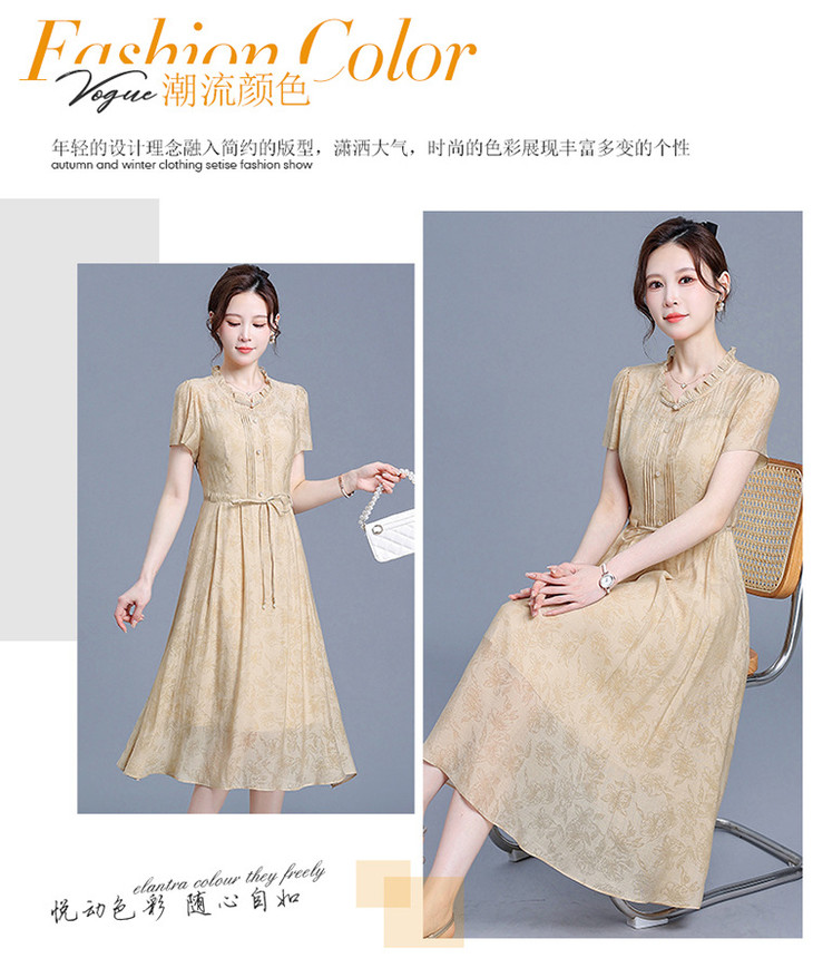 QYMKED-9439-Y时尚印花连衣裙夏季短袖裙中长款系带收腰裙女装连衣裙