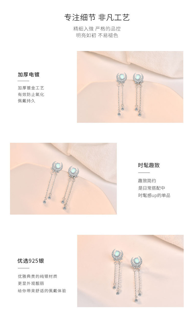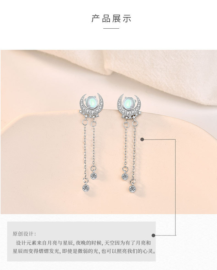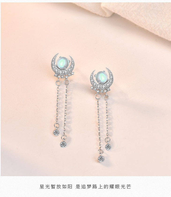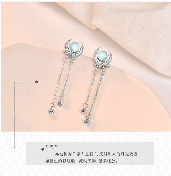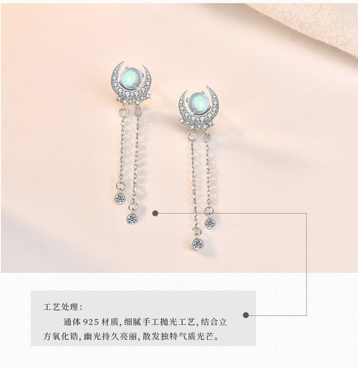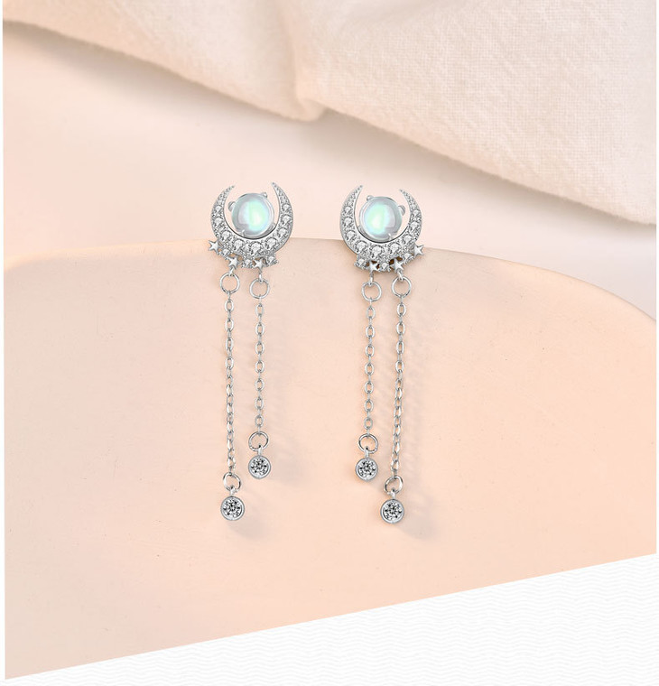 LMSS-EA24时尚皓月星辰月光石耳环流苏百搭s925纯银耳饰