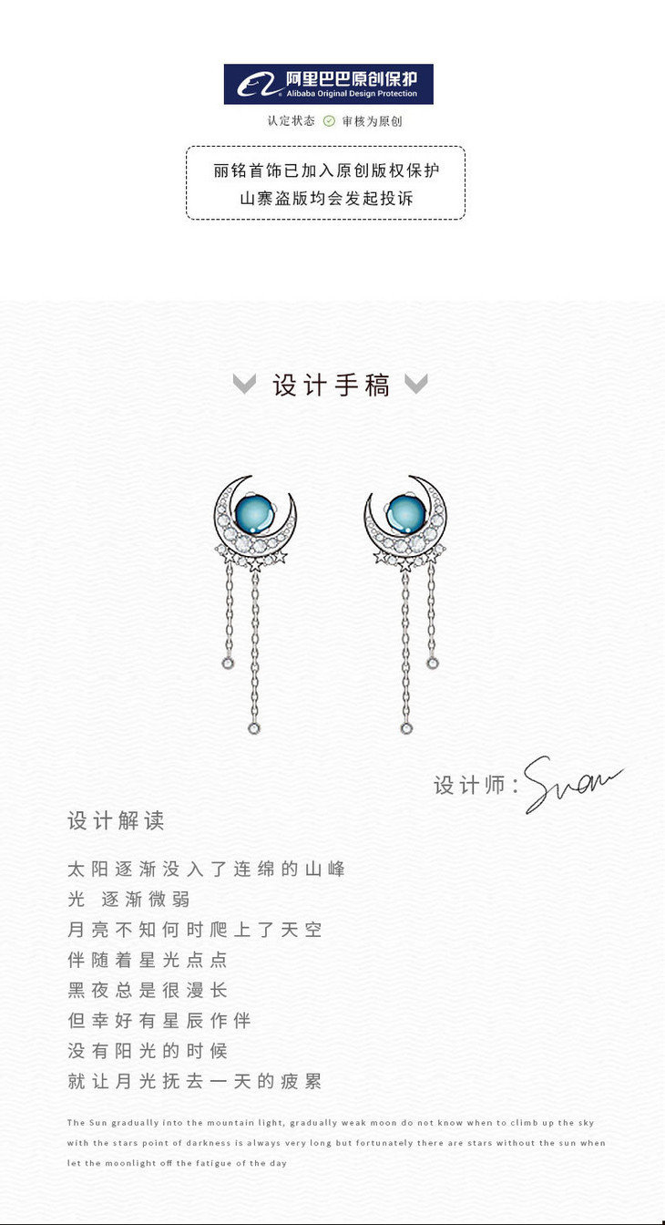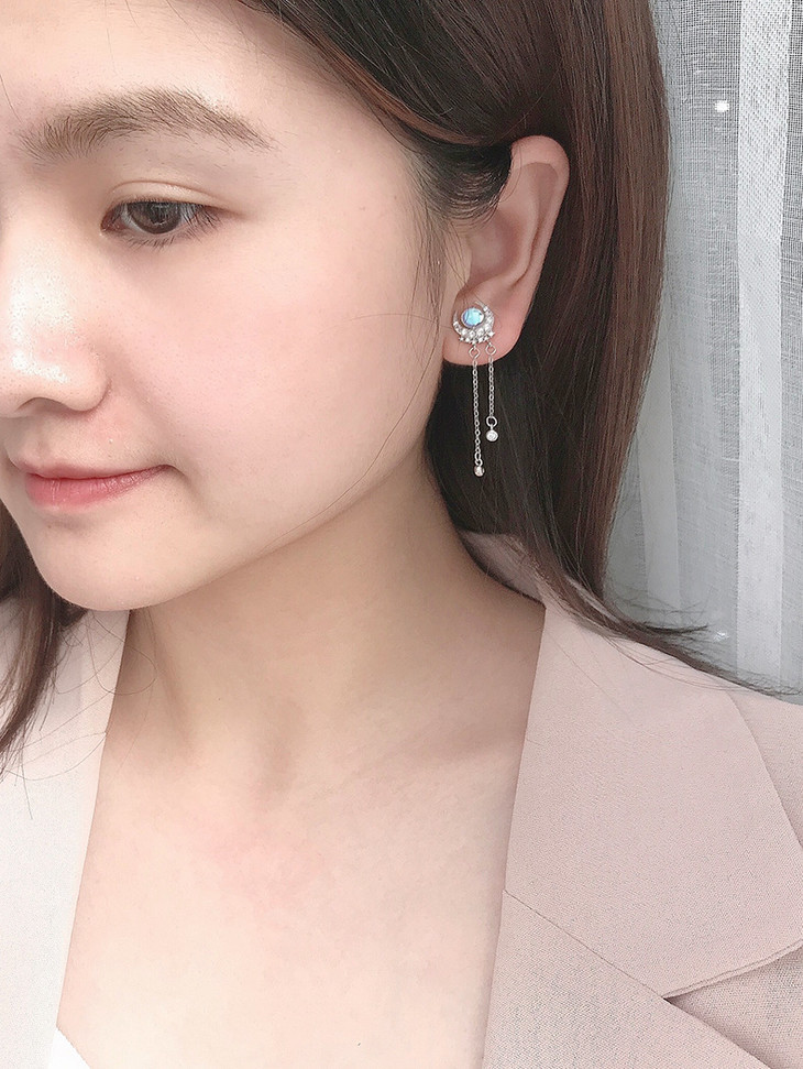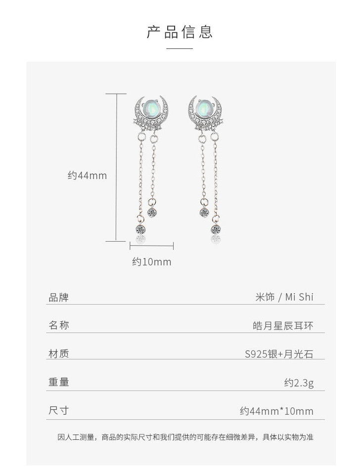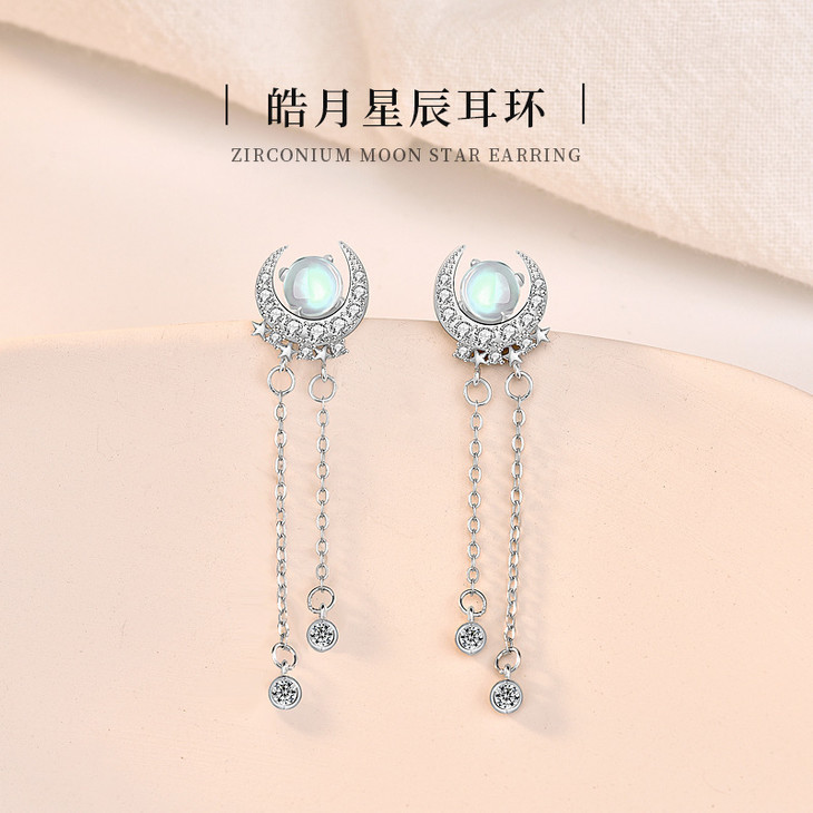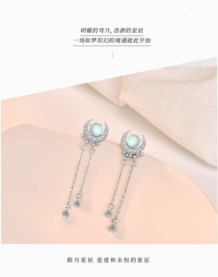LMSS-EA24时尚皓月星辰月光石耳环流苏百搭s925纯银耳饰