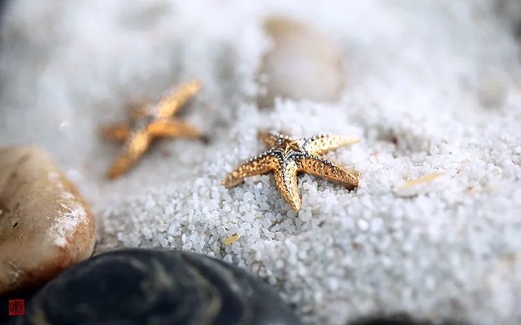 在拍摄的时候,我也将它们放在白沙里,