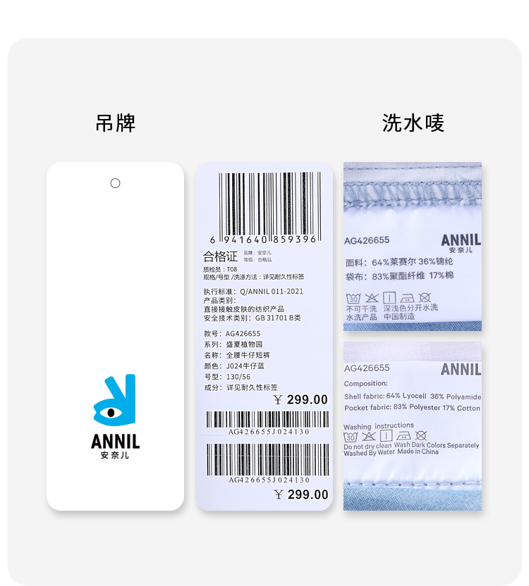 女童抗菌防晒冰牛仔短裤新款安奈儿童装实体店同款AG426655