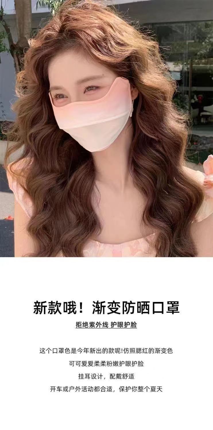 防晒口罩春夏防紫外线遮全脸渐变腮红面罩冰丝薄款