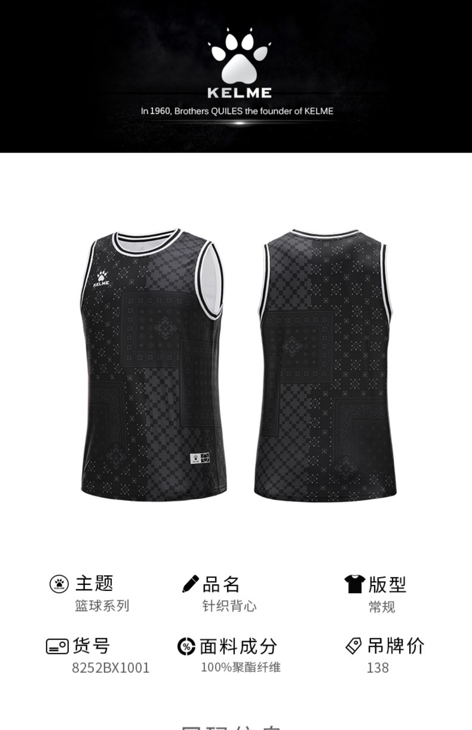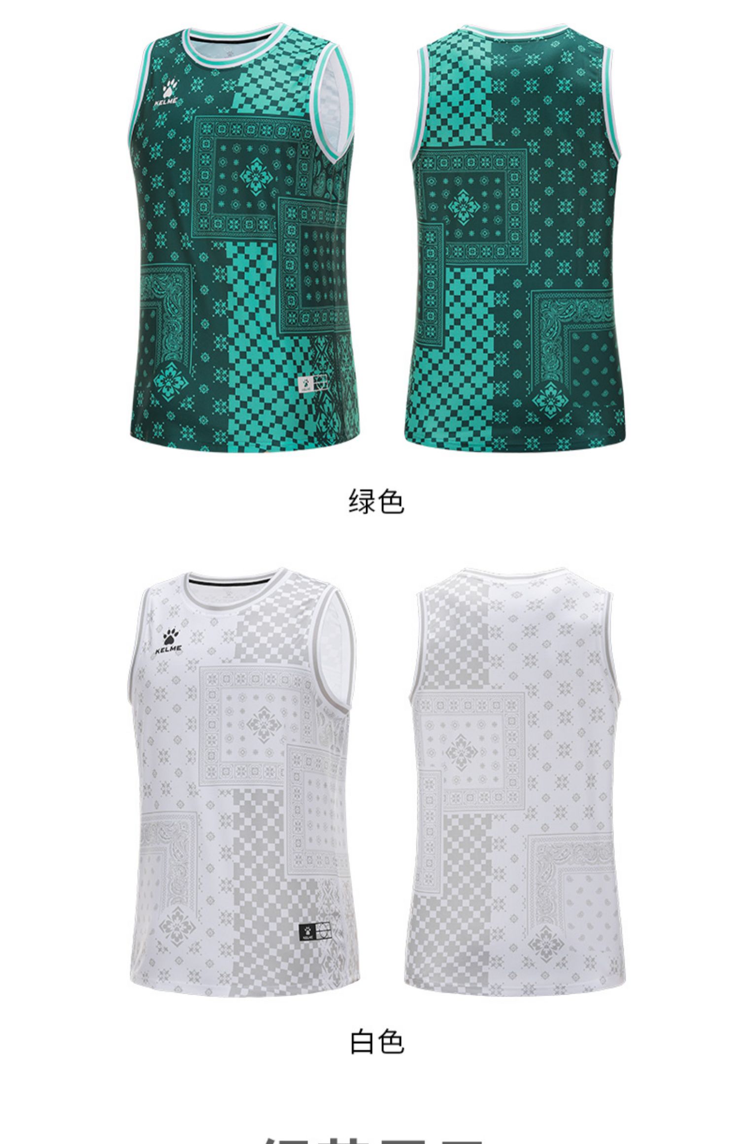 卡尔美训练背心白色针织复古潮流街头篮球跑步无袖运动上衣