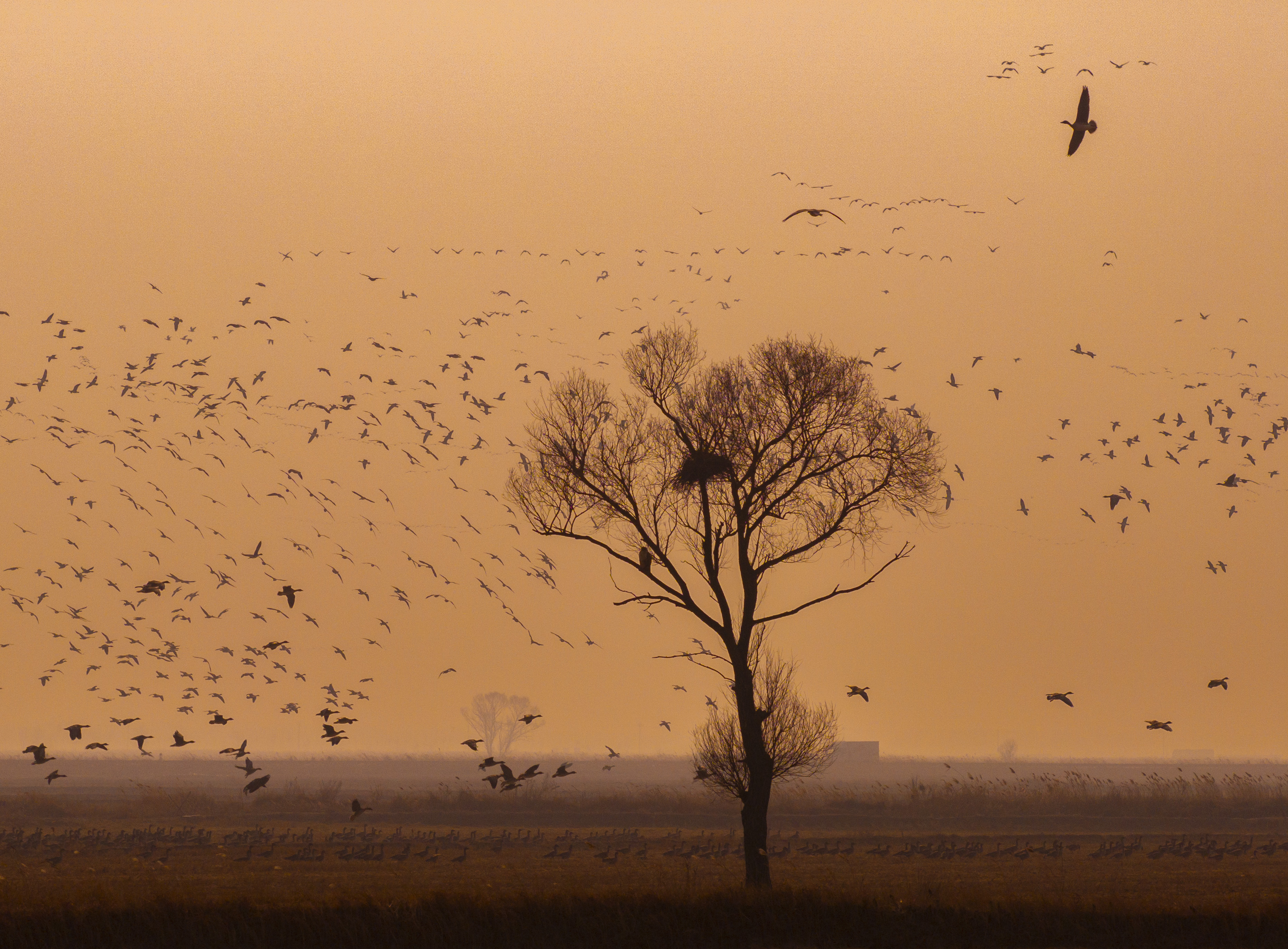每年都有数十万只候鸟再此越冬,众鸟翔集,百鸟争鸣,每年11月到次年3月,都是观东营鸟的好季节,粉色天空下,候鸟结伴。
