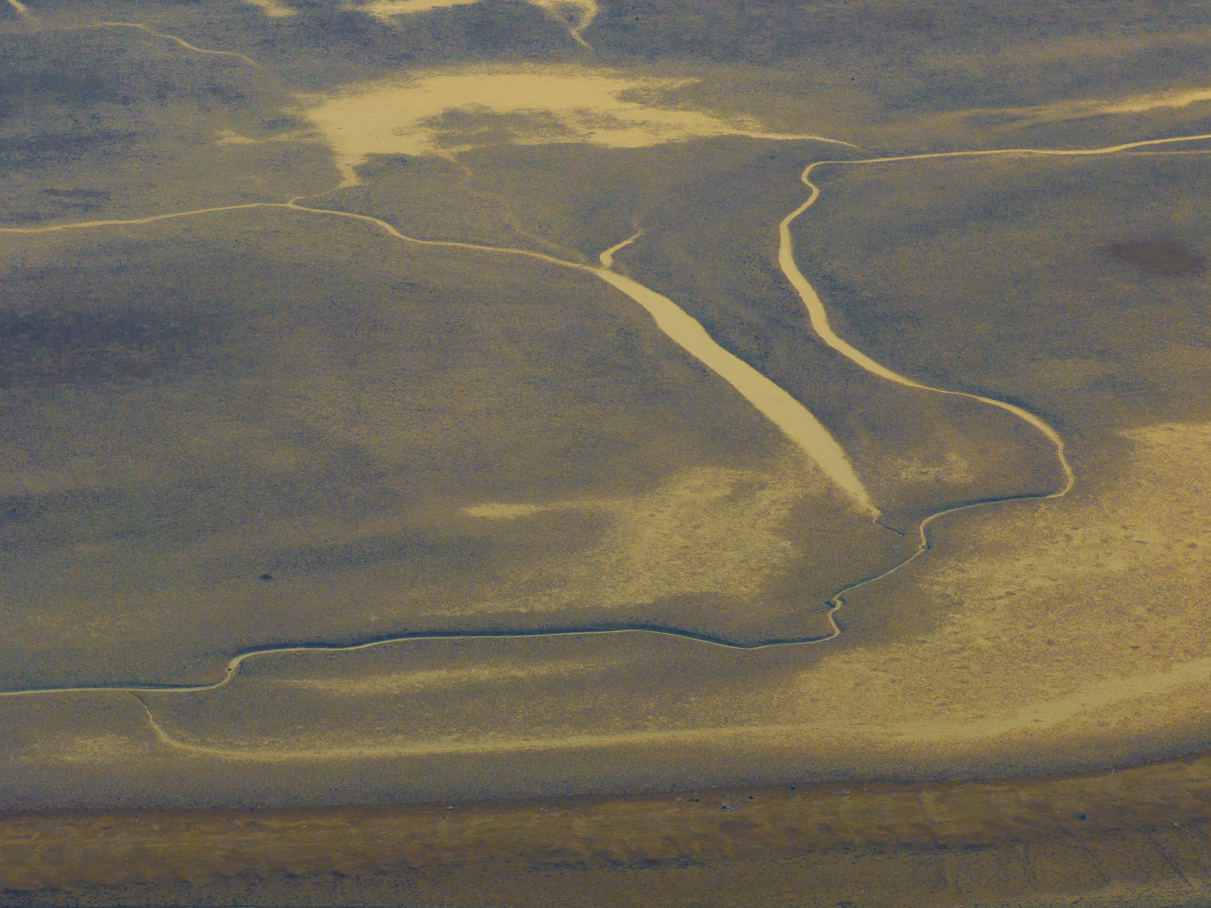 在山东东营黄河入海口,大自然以其鬼斧神工雕琢出一幅幅令人叹为观止的“潮汐树”奇观。这些并非真正的树木,而是海水在潮汐作用下,于滩涂上刻画出的一道道潮沟,形成了类似树木的沉积地貌。从高空俯瞰,这些潮沟的主干伸向大海,枝杈则伸向陆地,犹如一棵棵生长在海滩上的参天大树。