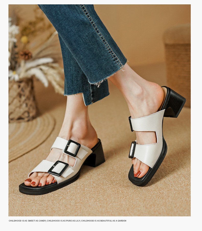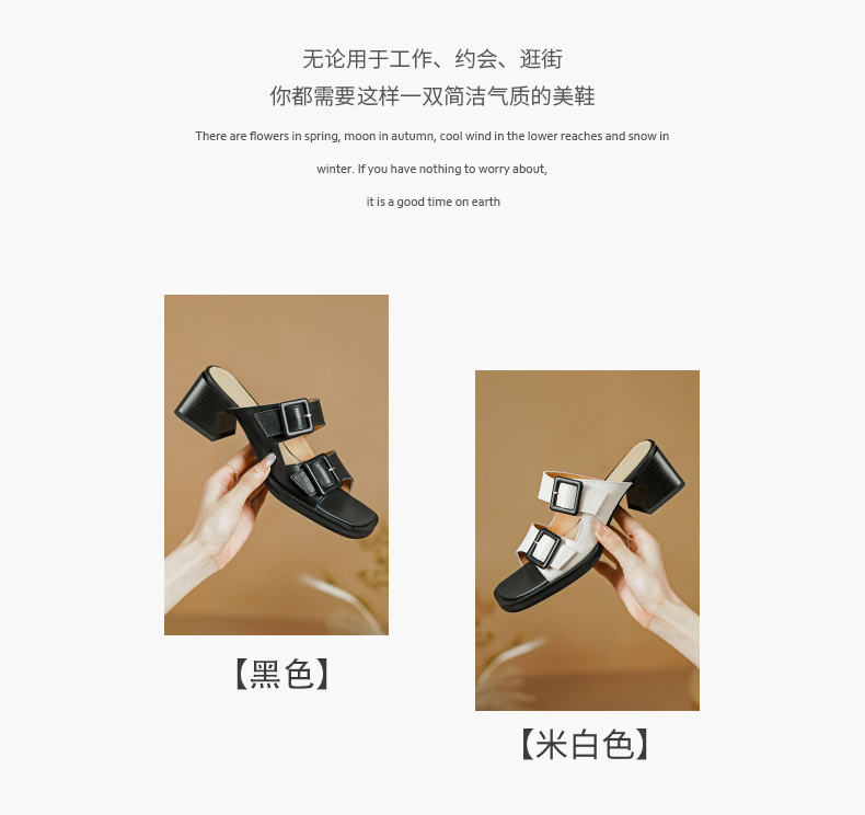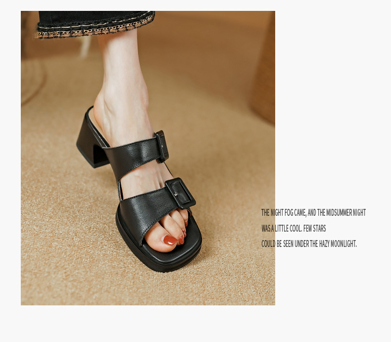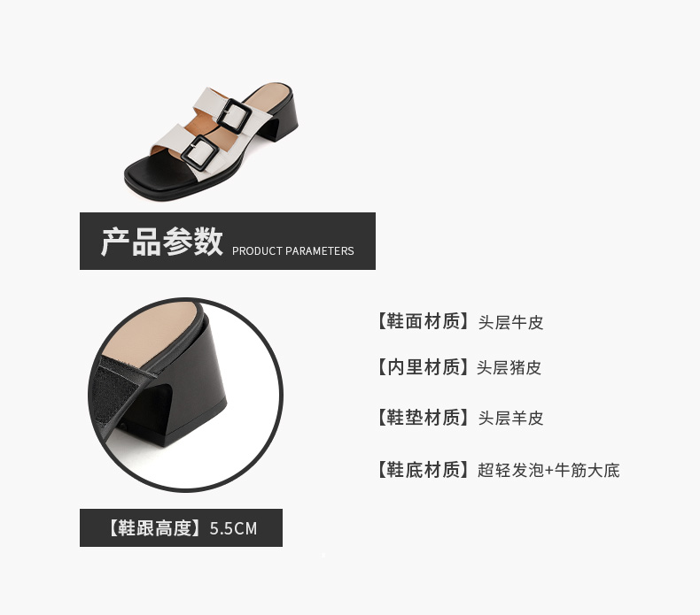舒适百搭,里外全头层皮粗跟超轻发泡底质感拉满凉拖PS1377
