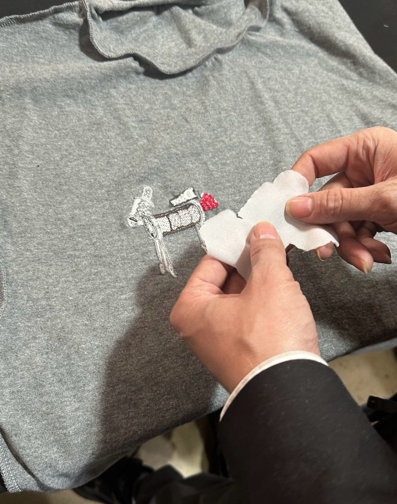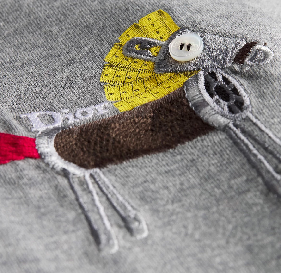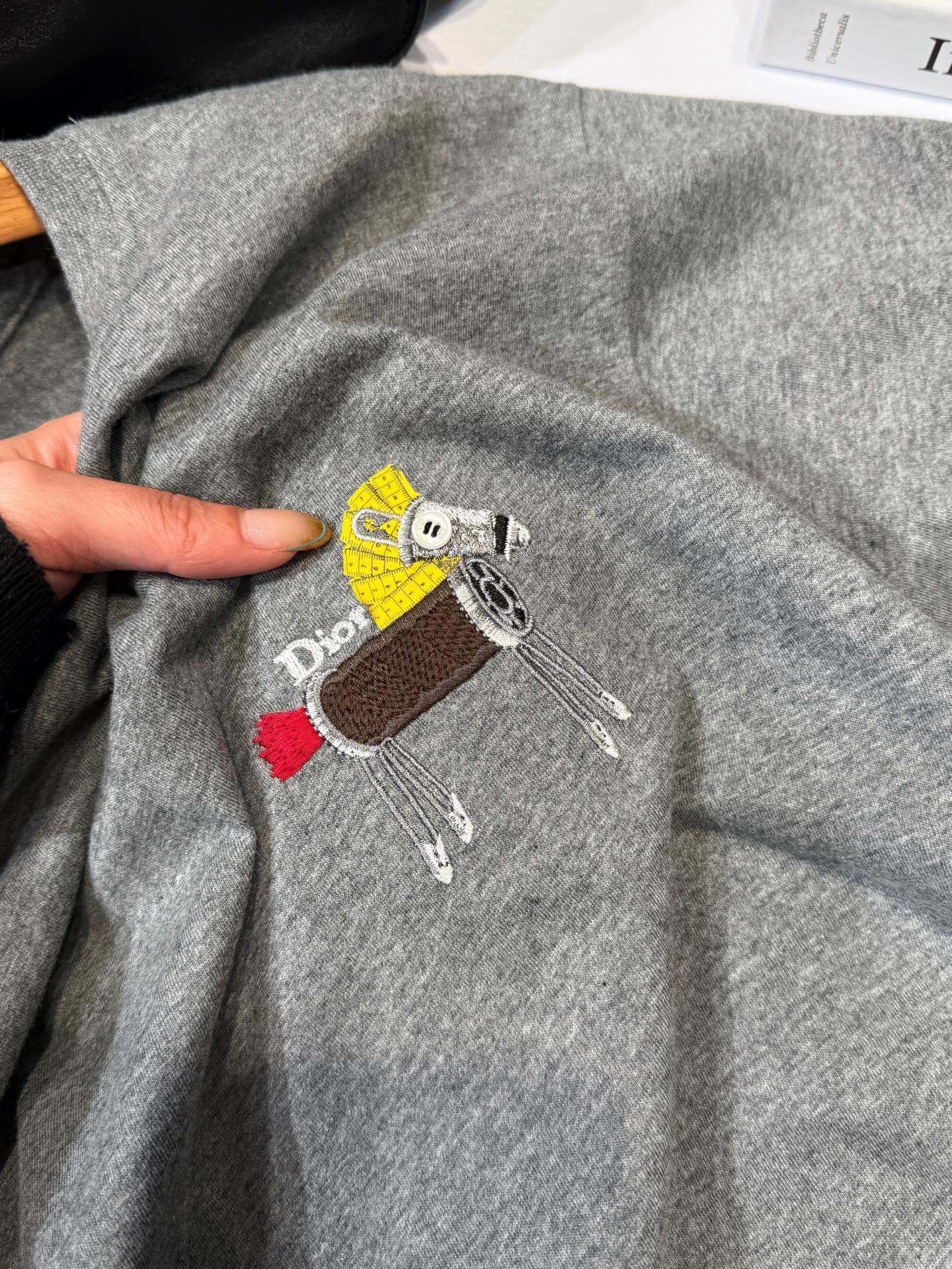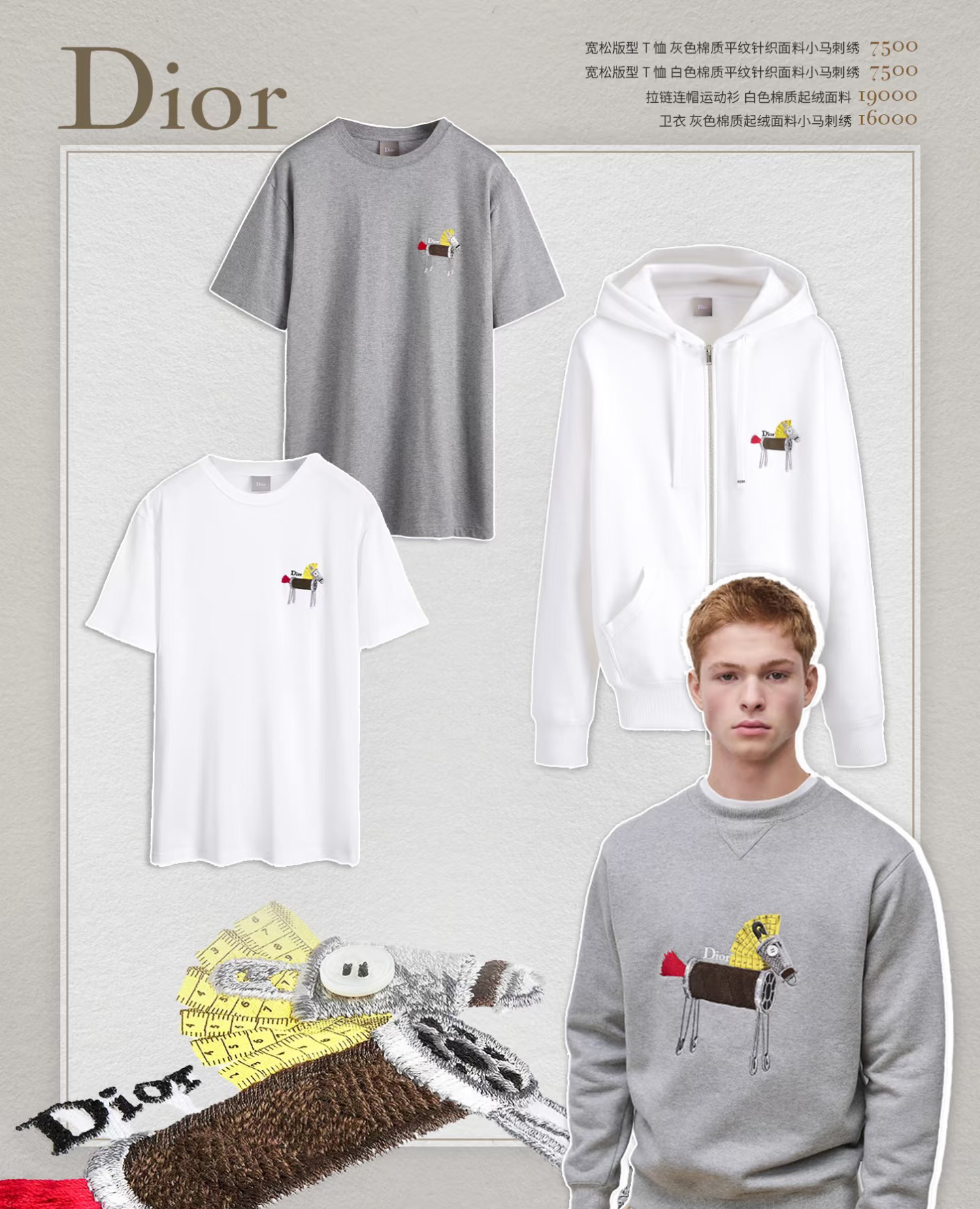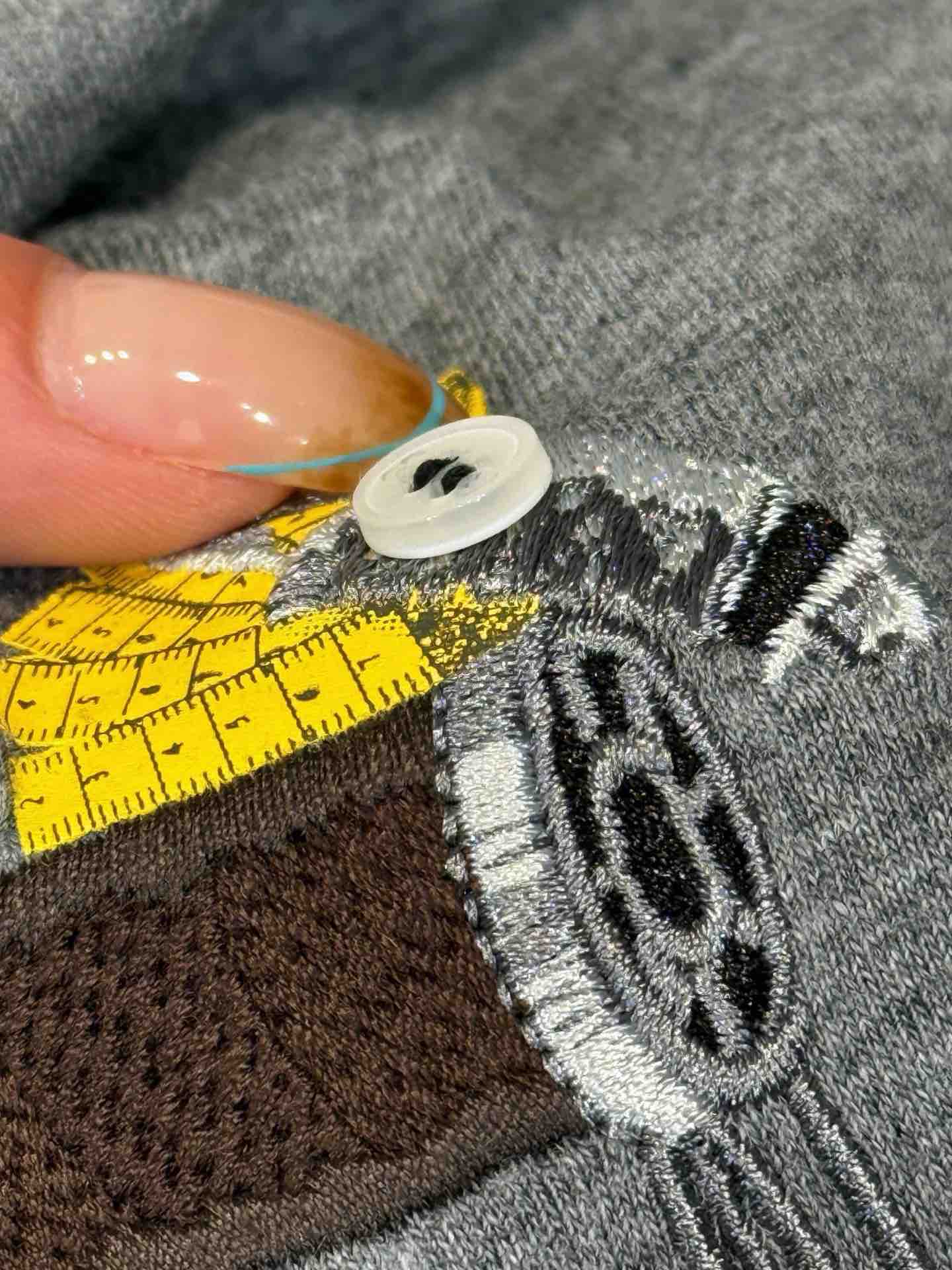全部是进口的高精精梳纱,双纱双色织出来的麻灰色很有辨识度 包括刺绣都是机台都是大几十万具备极高的精准度和丰富的针法