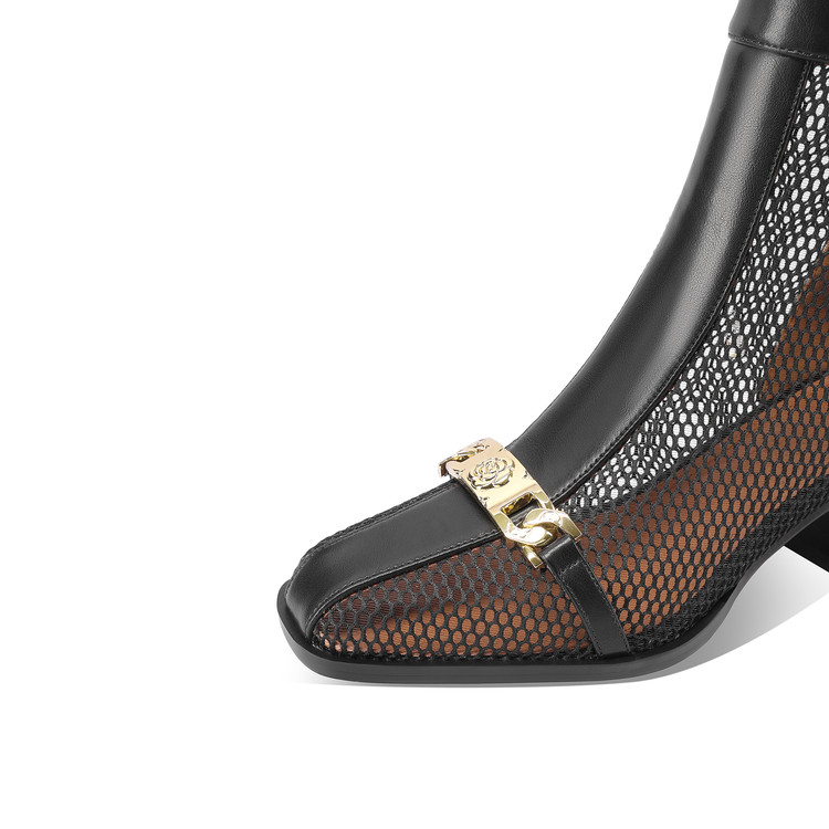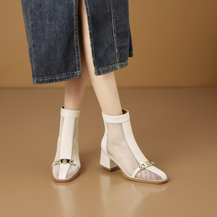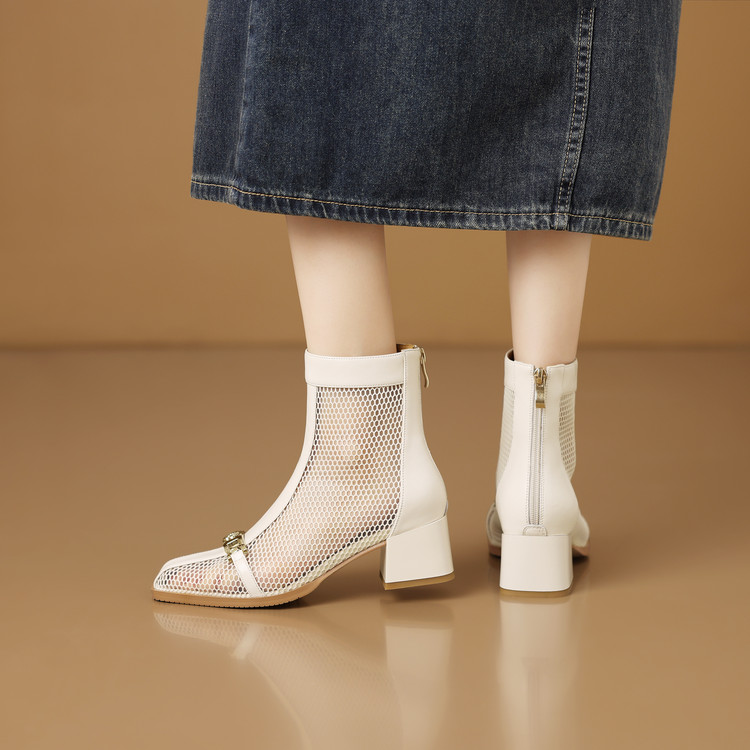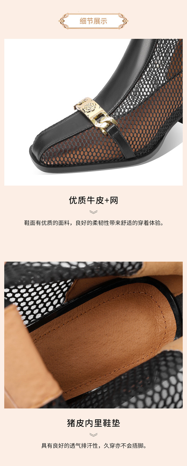 【货 号】H3604【鞋面材质】头层牛皮+纱网【垫脚-里皮】猪皮里【鞋底材料】耐磨牛筋底【跟 高】5cm(烤漆跟)【颜 色】黑色 米白色【尺 码】33-43(大小定制不退换)