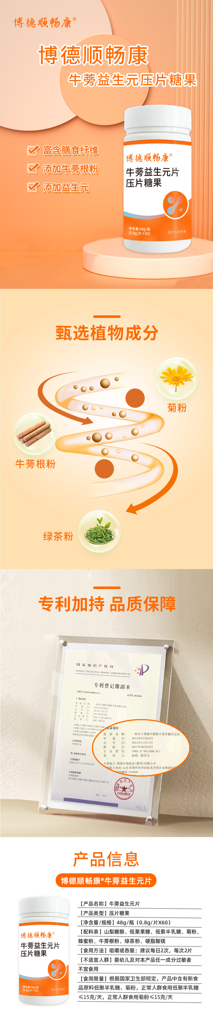 博德顺畅康牛蒡益生元片 0.8g*60粒/