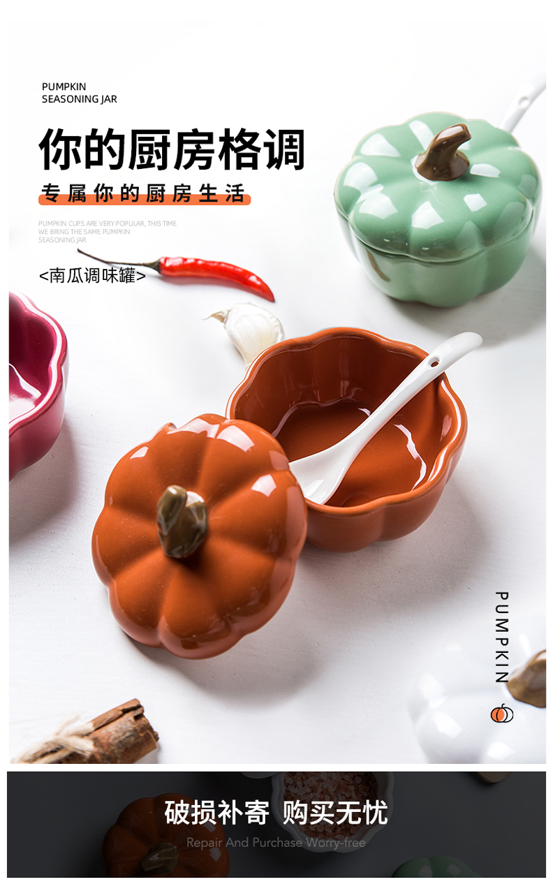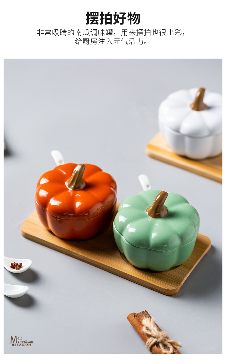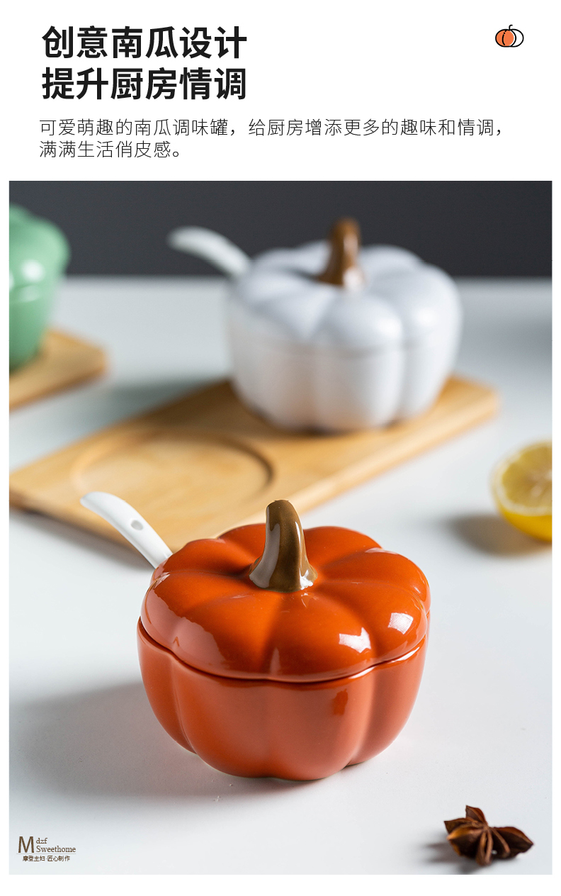 摩登主妇南瓜调料盒个性陶瓷创意罐子可爱盐罐组合套装厨房组合装
