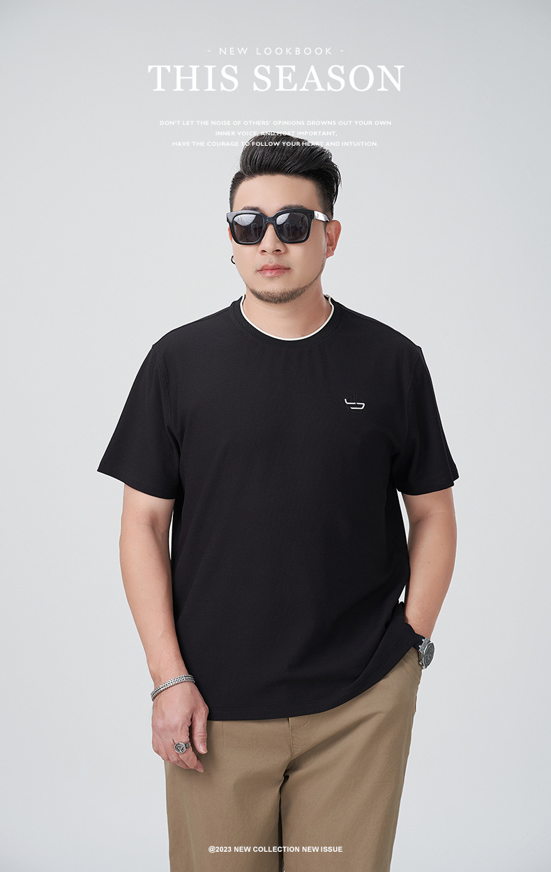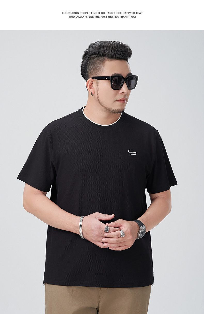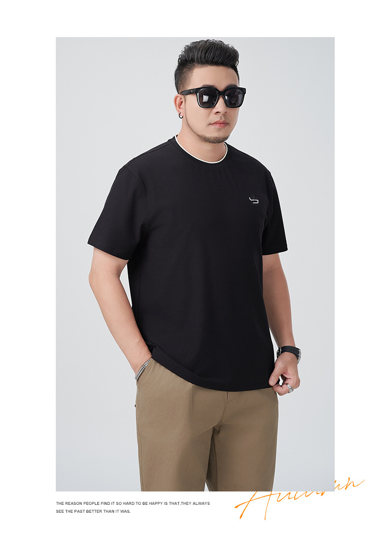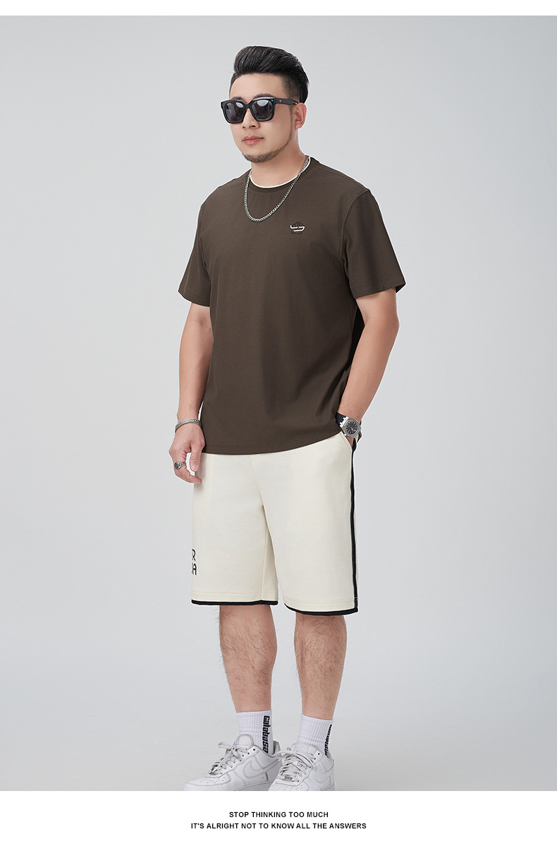 【DMH】大依优型大码短袖T恤重磅圆领版型男士宽松纯色夏季体恤日系上衣胖子潮流